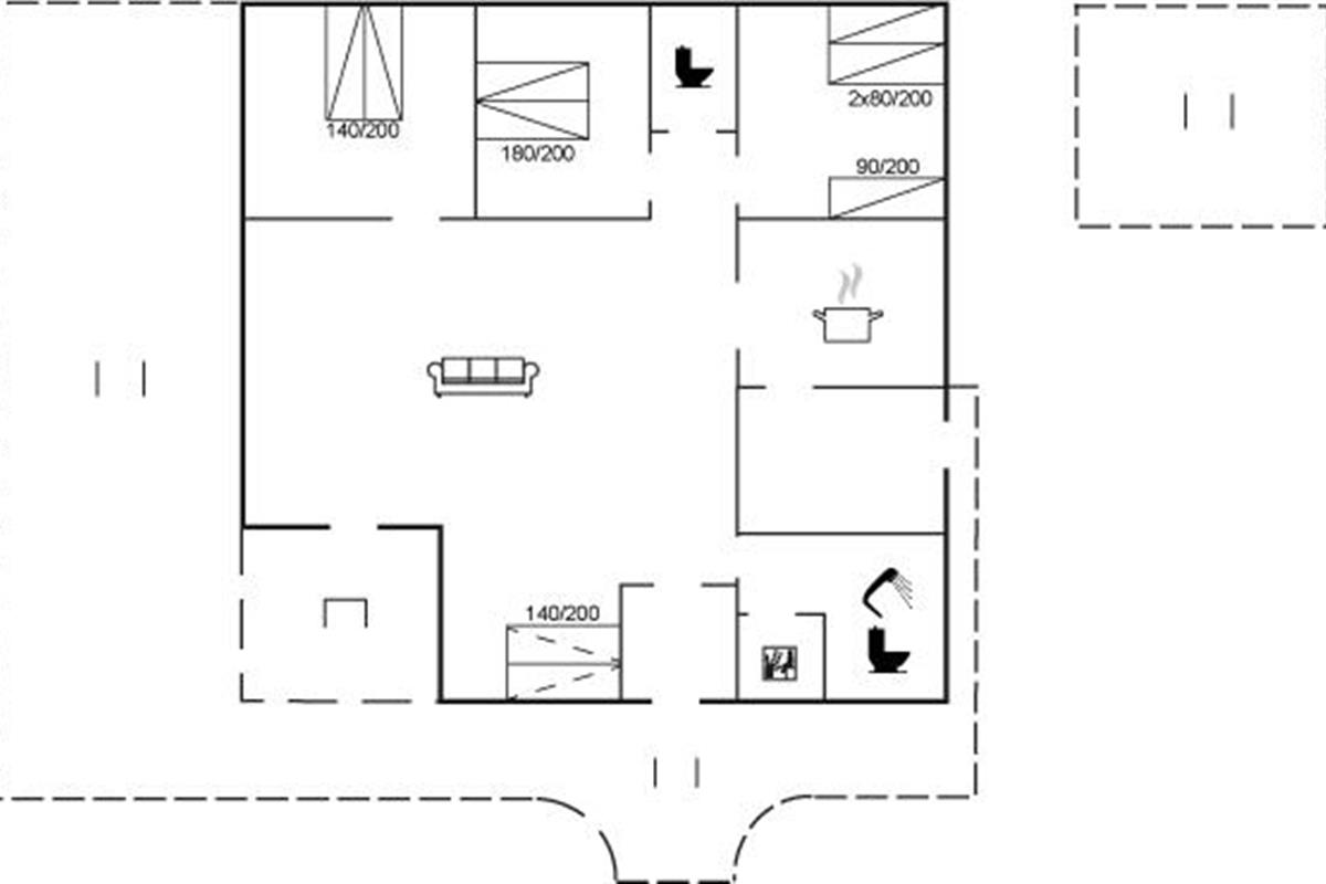 De vakantiewoning is gelegen op een 1279 m² groot natuural grond. Afstand tot de zee 1200 m. Dichtstbijzijnde winkel 2800 m. Er is een golfbaan op een afstand van 5000 m. Bij de vakantiewoning hoort 70 m² terras. Daarnaast is er een 10 m² groot overdekt terras. Schommel. Zandbak. Parkeerplaats bij het huis.