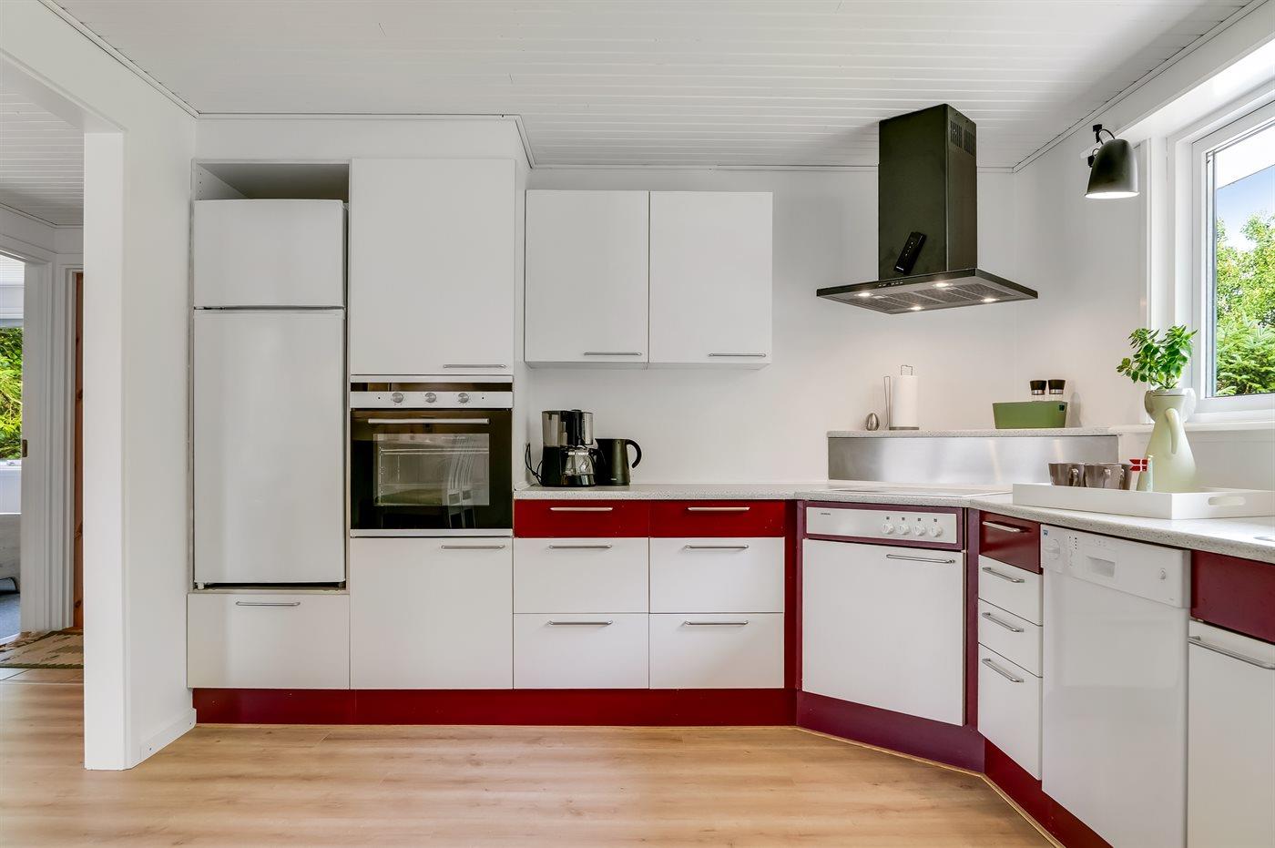 De keuken is uitgerust met koelkast Er zijn 4 keramische kookplaten, heteluchtoven, magnetron en vaatwasser.