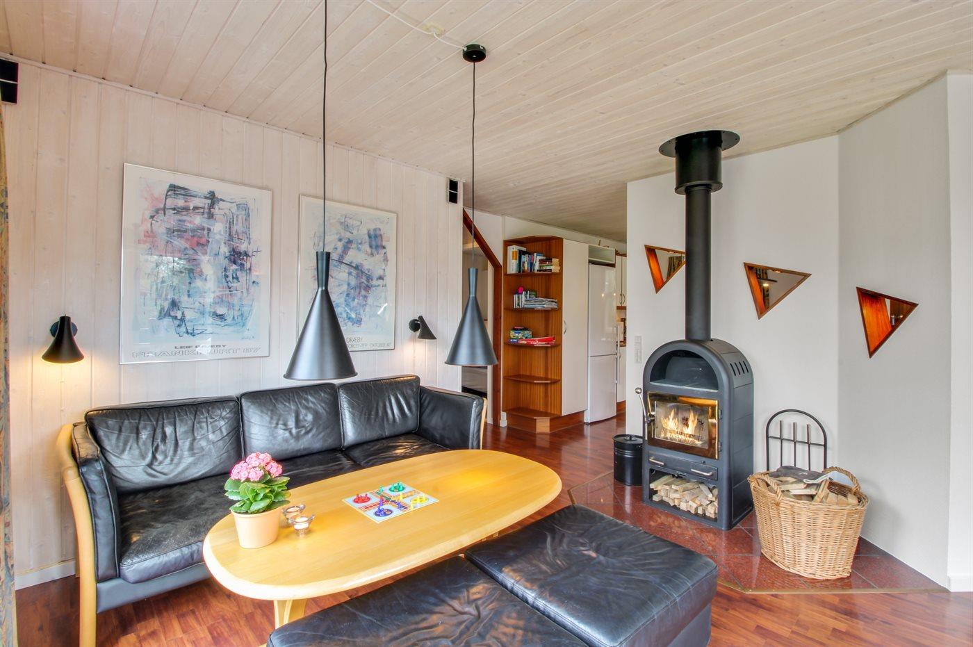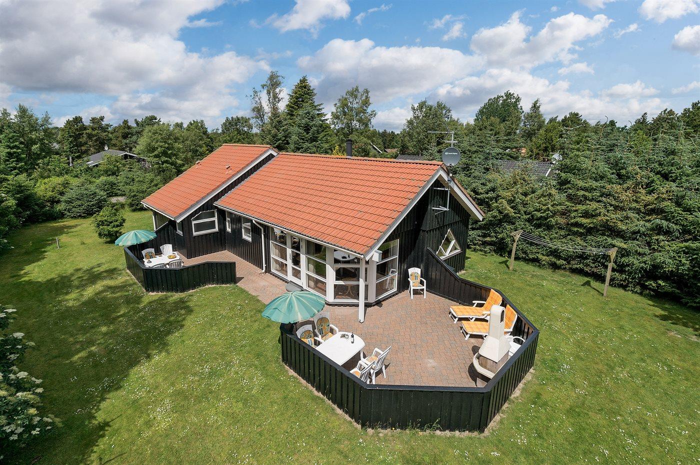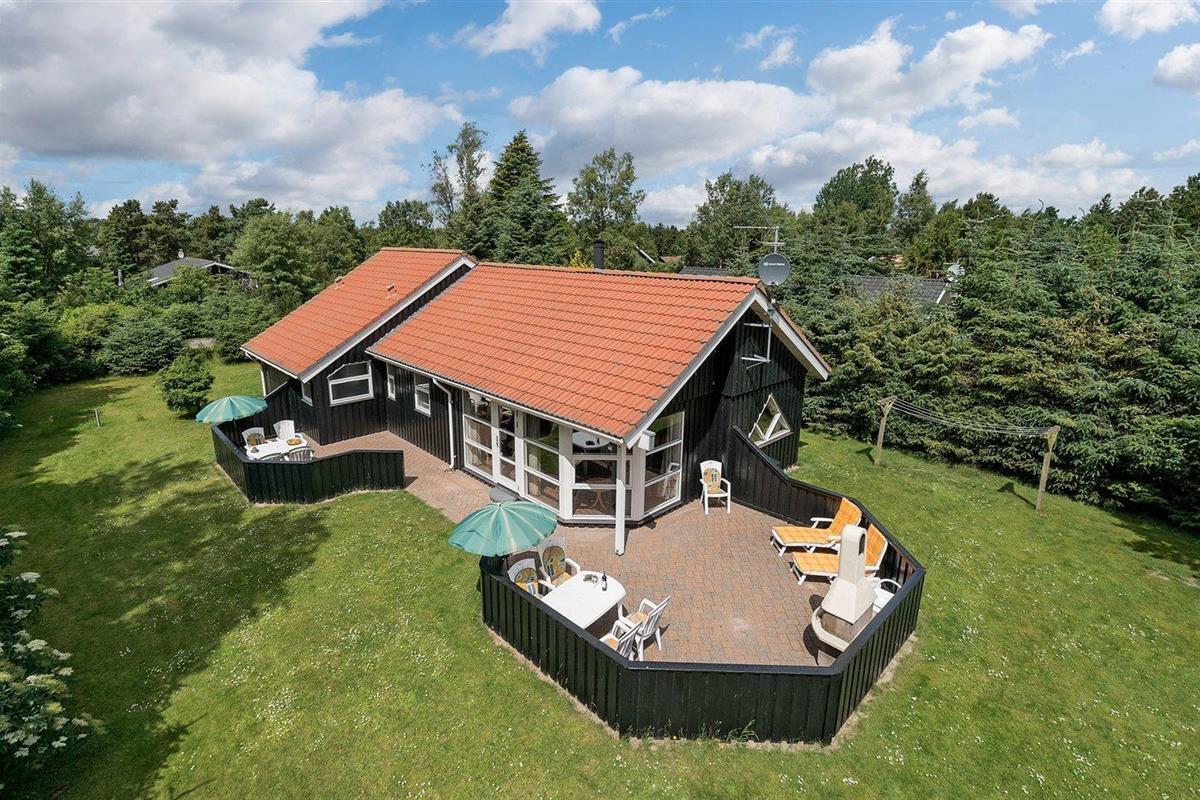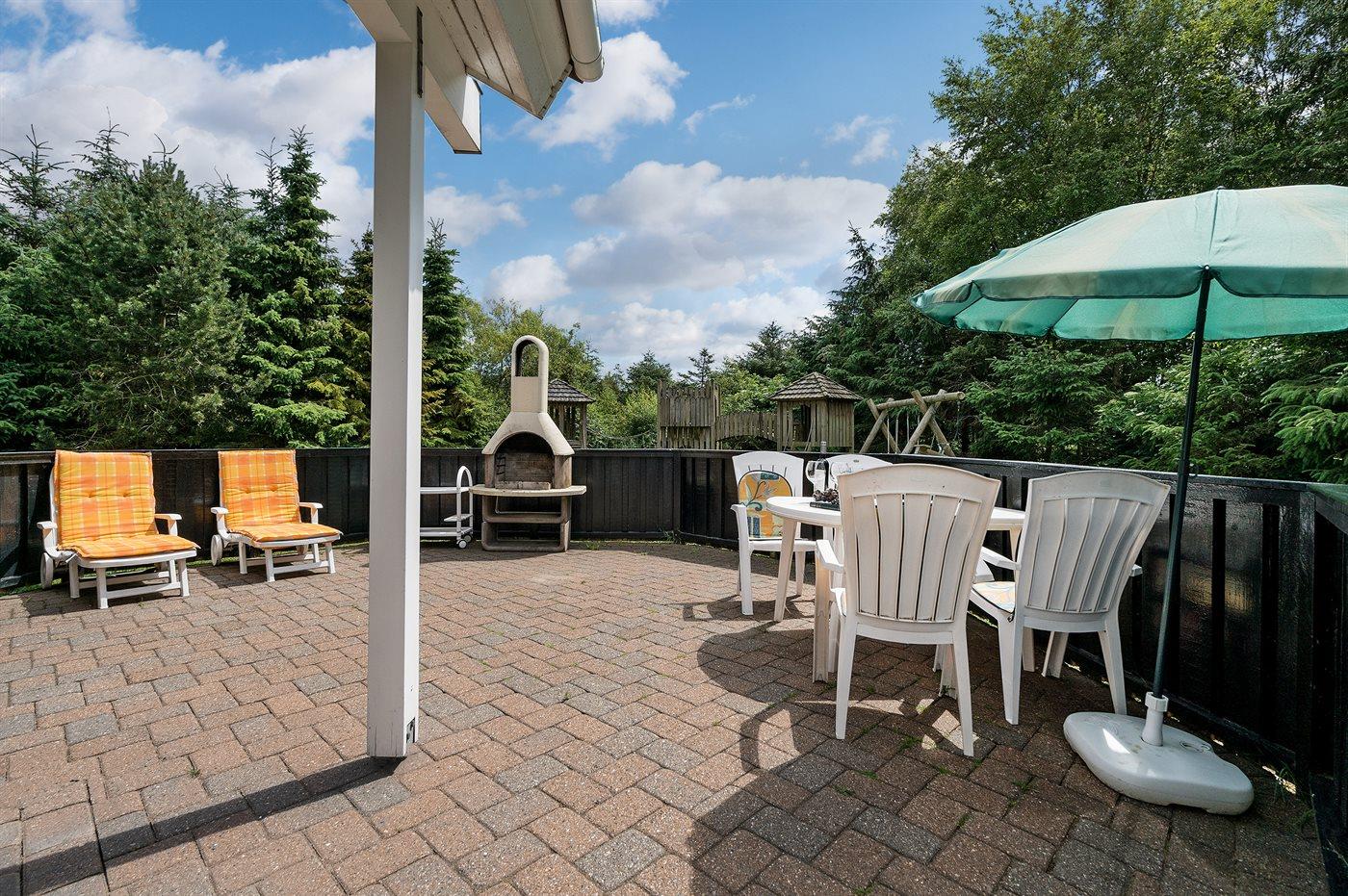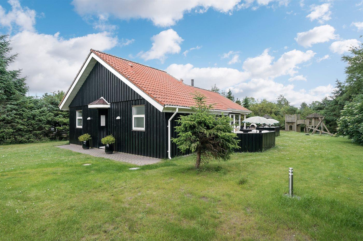De vakantiewoning is gelegen op een 1300 m² groot aangelegde tuin. Afstand tot de zee 300 m. Afstand tot de fjord 7000 m. Dichtstbijzijnde winkel 200 m. Er is een golfbaan op een afstand van 5000 m. Bij de vakantiewoning hoort 80 m² terras. Schommel. Zandbak. Speelhuisje. Glijbaan. Wipwap. Barbecue. Parkeerplaats bij het huis.