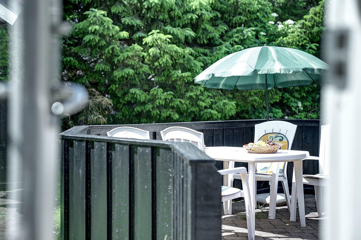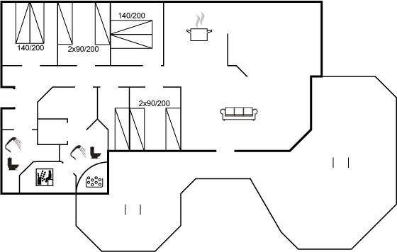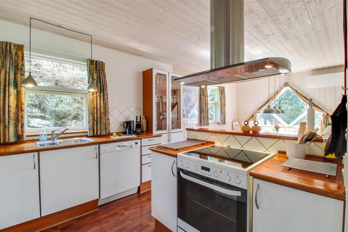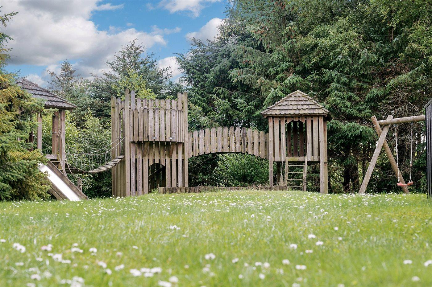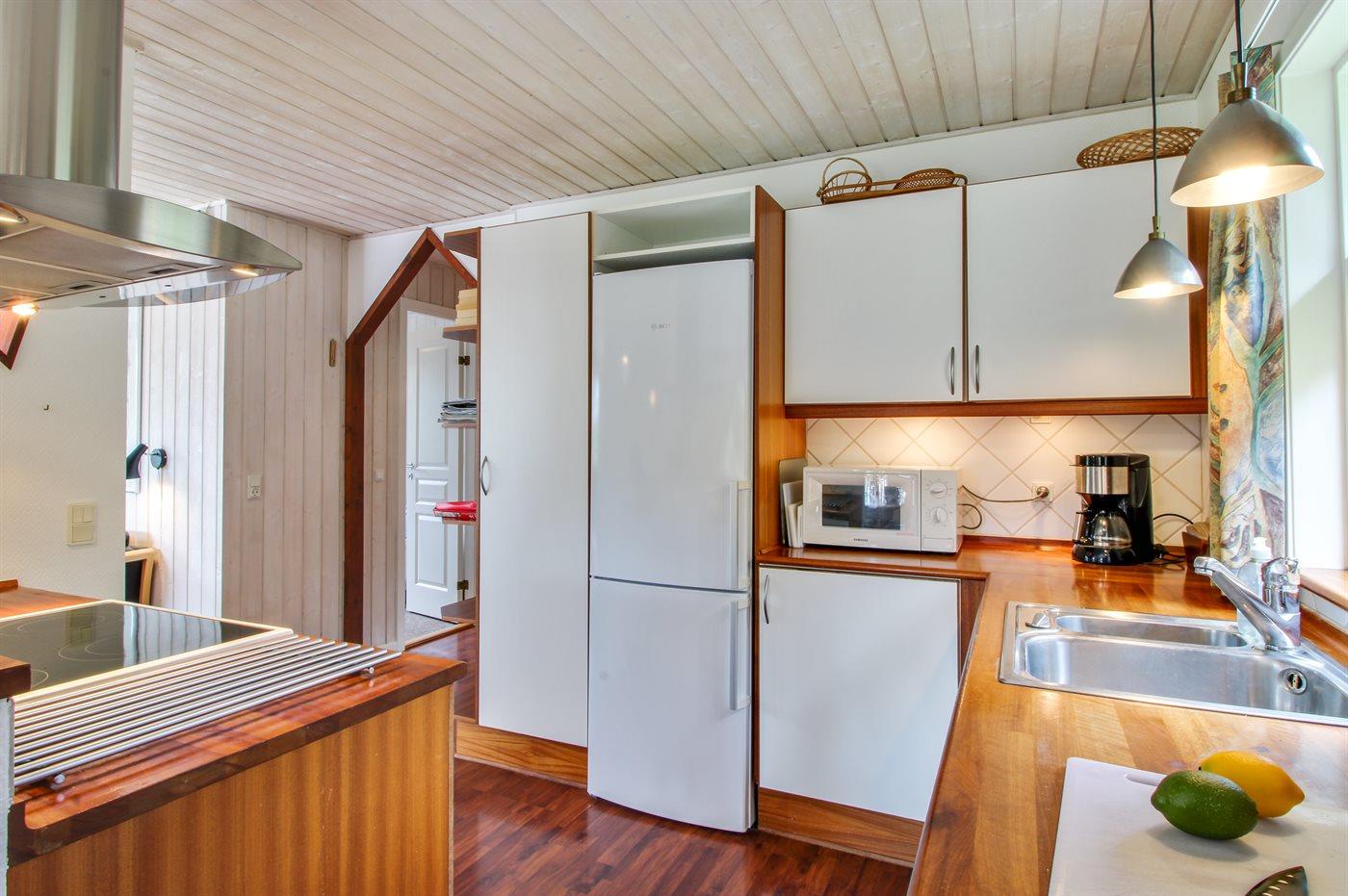 De vakantiewoning is gelegen op een 1300 m² groot aangelegde tuin. Afstand tot de zee 300 m. Afstand tot de fjord 7000 m. Dichtstbijzijnde winkel 200 m. Er is een golfbaan op een afstand van 5000 m. Bij de vakantiewoning hoort 80 m² terras. Schommel. Zandbak. Speelhuisje. Glijbaan. Wipwap. Barbecue. Parkeerplaats bij het huis.