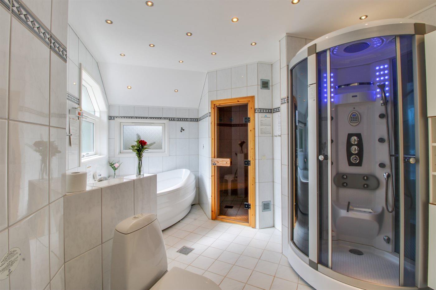 Er is 2 badkamers met douchehok en 2 toiletten. Er is vloerverwarming in 2 van de badkamers. De sauna biedt de gelegenheid tot ontspanning.