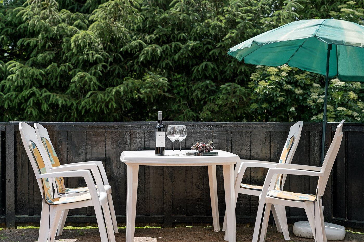 Het binnenbubbelbad (vulwater) biedt ontspanning aan 3 personen.
