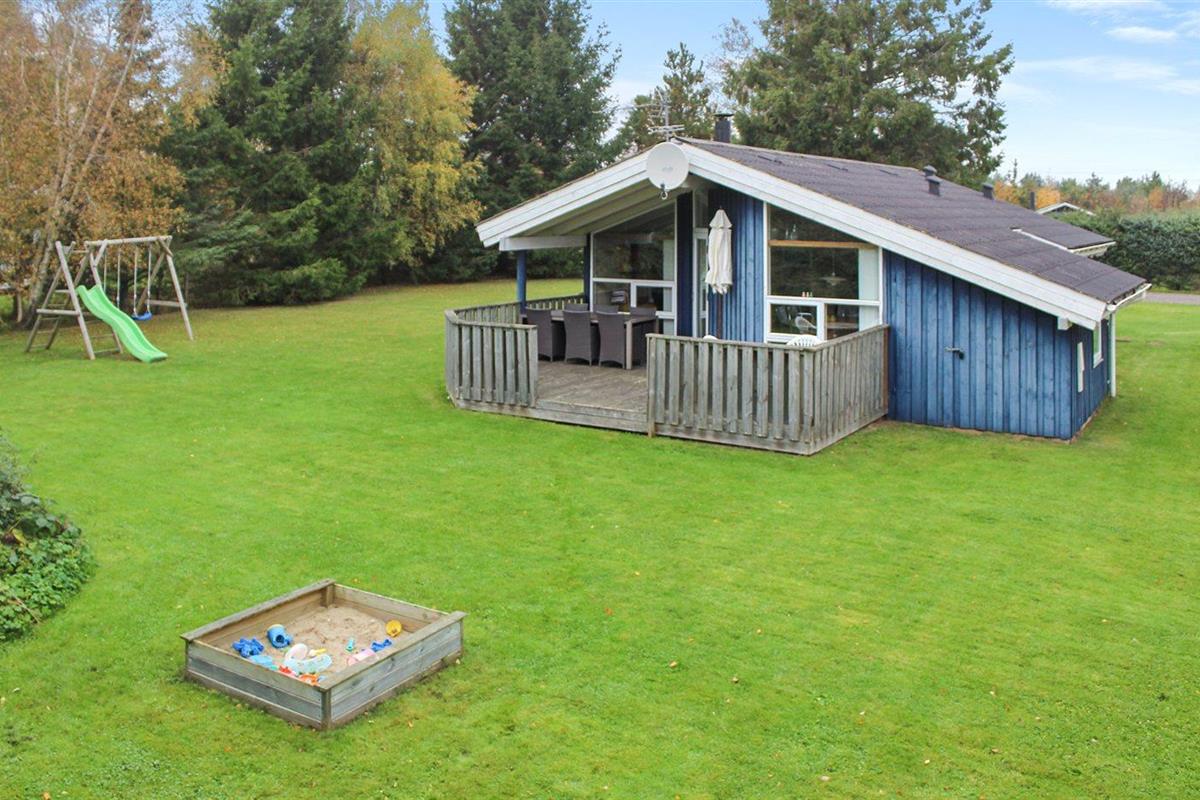 De vakantiewoning is gelegen op een 1400 m² groot natuural grond. Afstand tot de zee 800 m. Dichtstbijzijnde winkel 500 m. Bij de vakantiewoning hoort 18 m² terras. Daarnaast is er een 6 m² groot overdekt terras. Gereedschapsruimte. Schommel. Zandbak. Parkeerplaats bij het huis.