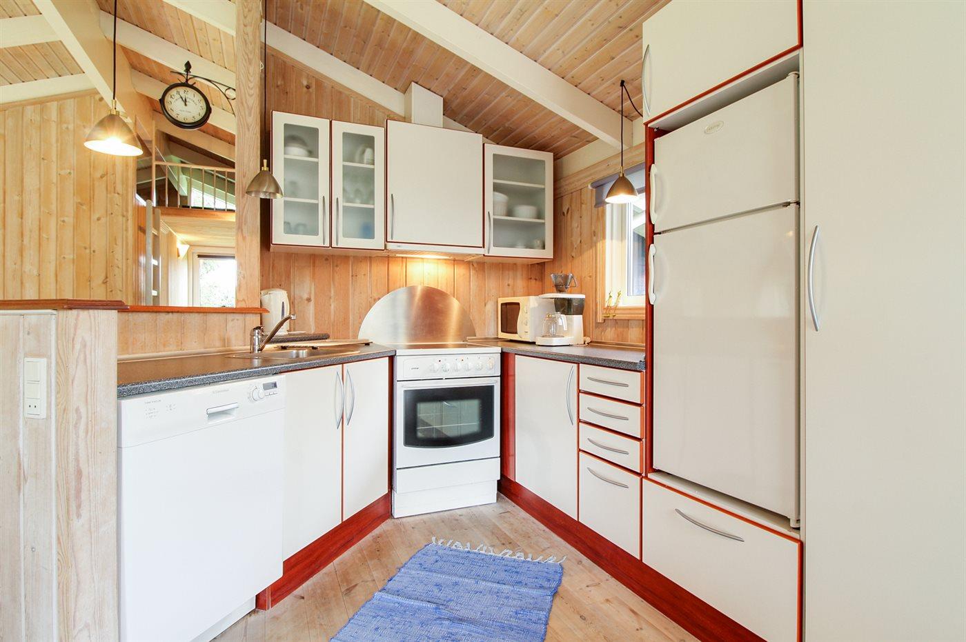 De keuken is uitgerust met koelkast Er zijn 4 keramische kookplaten, bakoven, magnetron en vaatwasser.