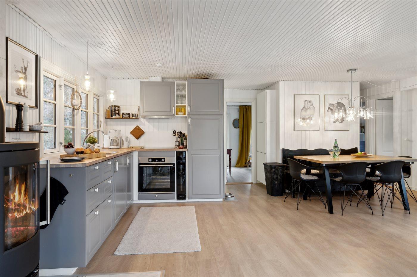 De keuken is uitgerust met koelkast Er is 4 inductiekookplaten, heteluchtoven, magnetron.