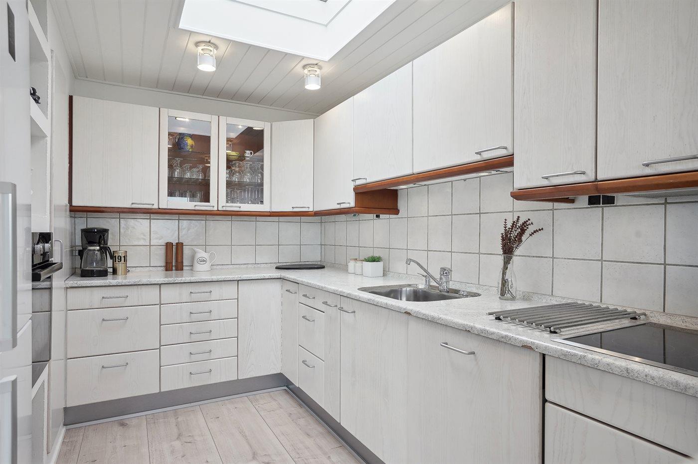 De keuken is uitgerust met koelkast Er zijn 4 keramische kookplaten, heteluchtoven, magnetron en vaatwasser.