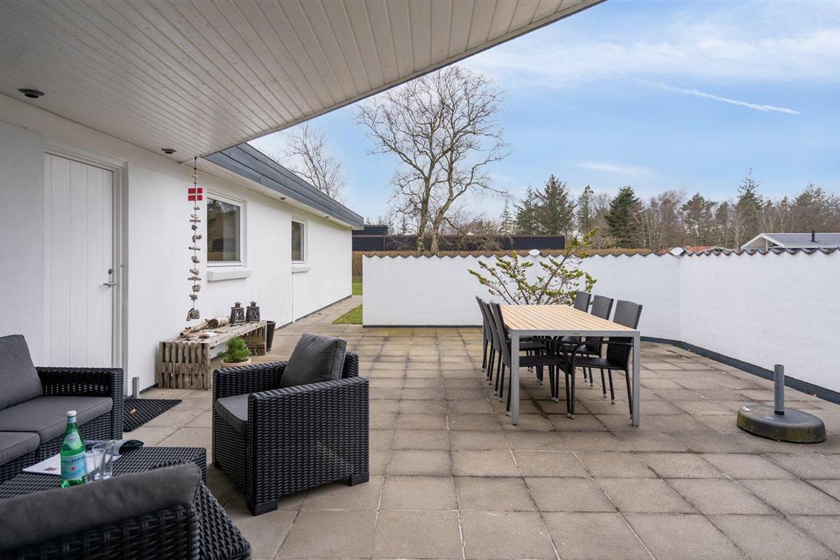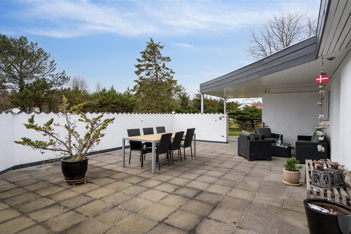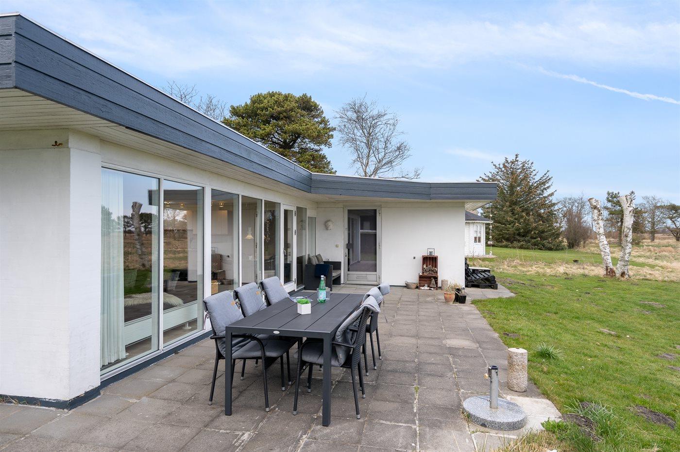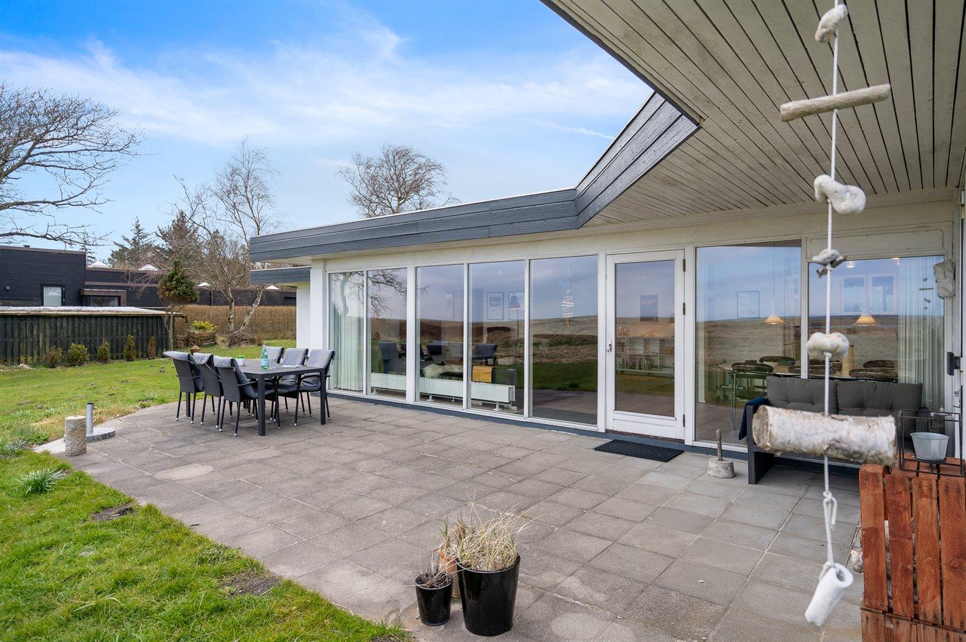 De vakantiewoning is gelegen op een 4960 m² groot aangelegde tuin. Afstand tot de zee 125 m. Dichtstbijzijnde winkel 800 m. Er is een golfbaan op een afstand van 7400 m. Bij de vakantiewoning hoort 70 m² terras. Gereedschapsruimte. Schommel. Zandbak. Barbecue. Parkeerplaats bij het huis.