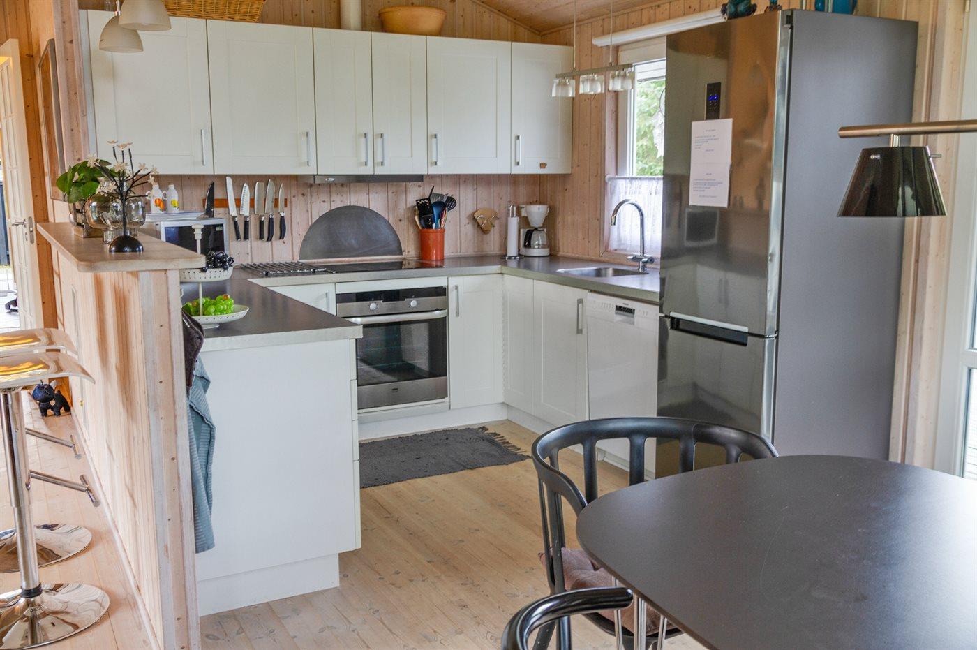 De keuken is uitgerust met koelkast Er zijn 4 keramische kookplaten, heteluchtoven, magnetron en vaatwasser.