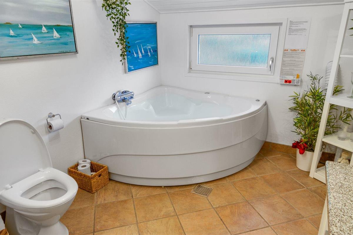 Het binnenbubbelbad (vulwater) biedt ontspanning aan 2 personen.