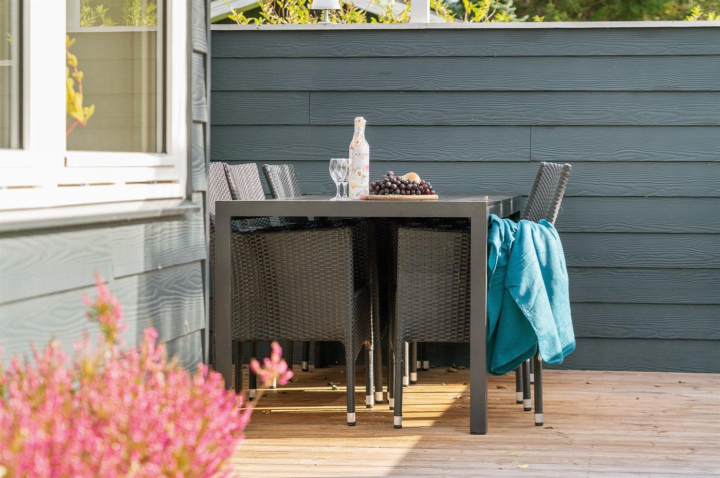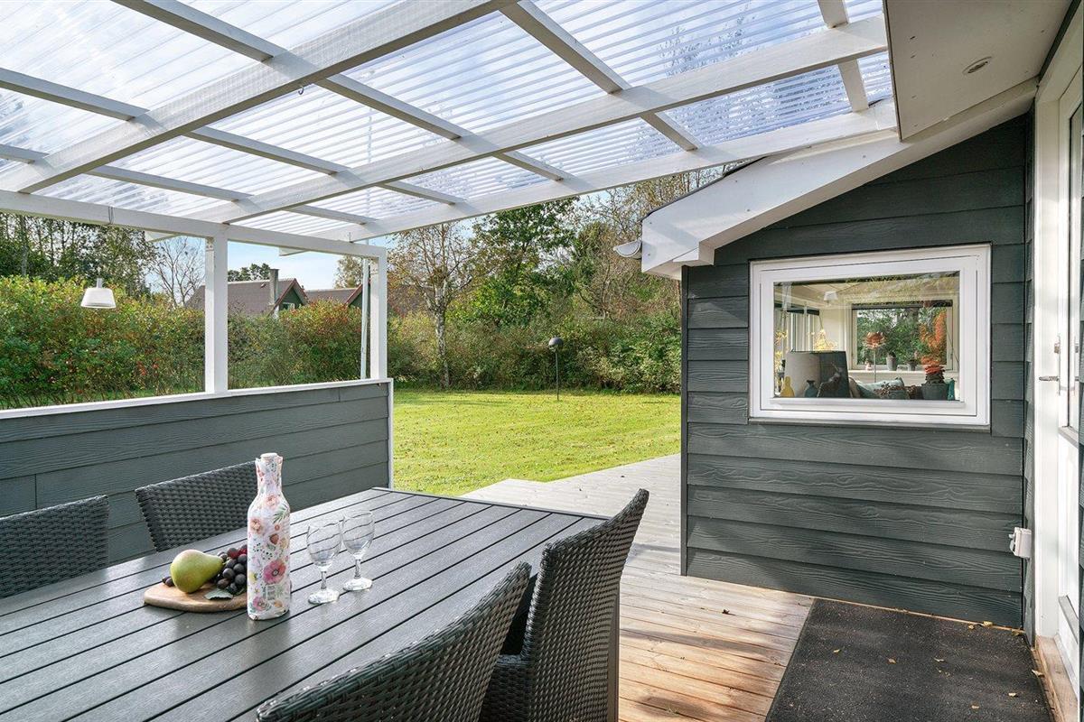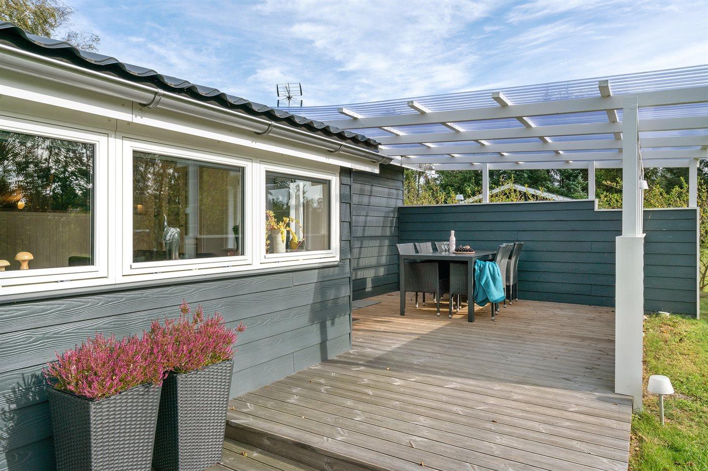 De vakantiewoning is gelegen op een 1255 m² groot natuural grond. Afstand tot de zee 800 m. Dichtstbijzijnde winkel 2000 m. Bij de vakantiewoning hoort 80 m² terras. Daarnaast is er een 25 m² groot overdekt terras. Gereedschapsruimte. Parkeerplaats bij het huis.