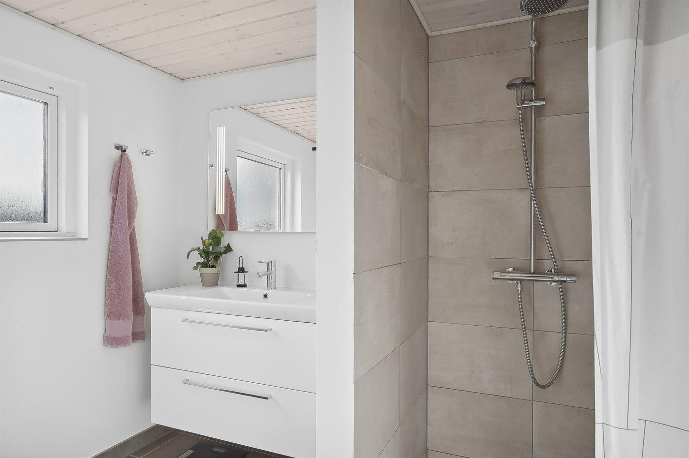 Er is 1 badkamer met douchehok en 2 toiletten, waarvan 1 gastentoilet. Er is vloerverwarming in 1 badkamer. Er is vloerverwarming in het gastentoilet.
