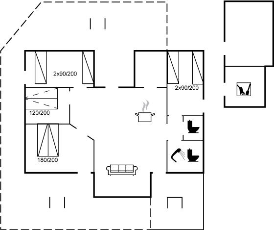 Er zijn in totaal 4 slaapkamers. De slaapplaatsen zijn als volgt verdeeld: 2 slaapplaatsen in tweepersoonsbed. 4 slaapplaatsen in eenpersoonsbedden. 2 slaapplaatsen in slaapbanken (tweepersoons).