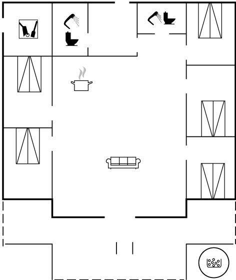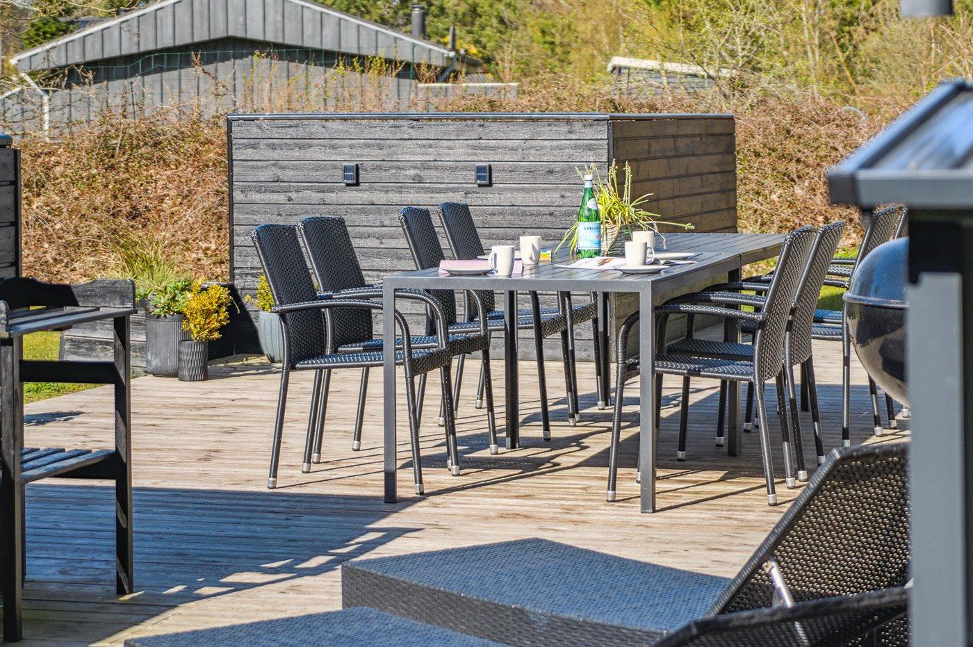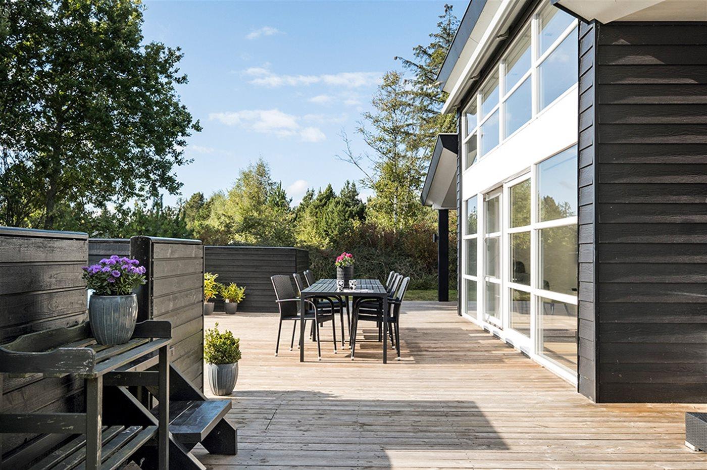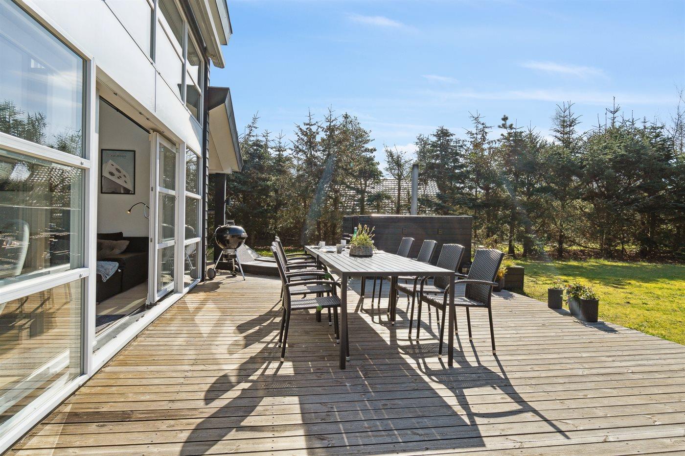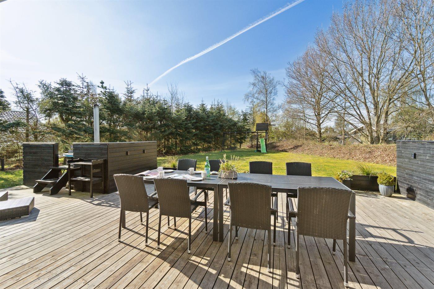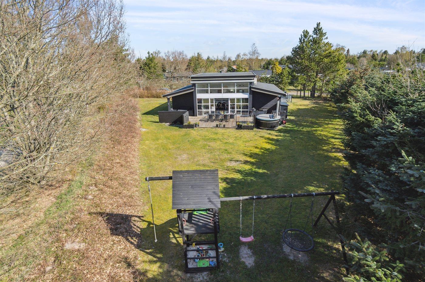 De vakantiewoning is gelegen op een 1248 m² groot aangelegde tuin. Afstand tot de zee 1100 m. Dichtstbijzijnde winkel 3600 m. Er is een golfbaan op een afstand van 6400 m. Bij de vakantiewoning hoort 48 m² terras. Daarnaast is er een 18 m² groot overdekt terras. Gereedschapsruimte. Schommel. Zandbak. Speeltoren. Glijbaan. Er is een gasbarbecue (gratis gas). Parkeerplaats bij het huis.