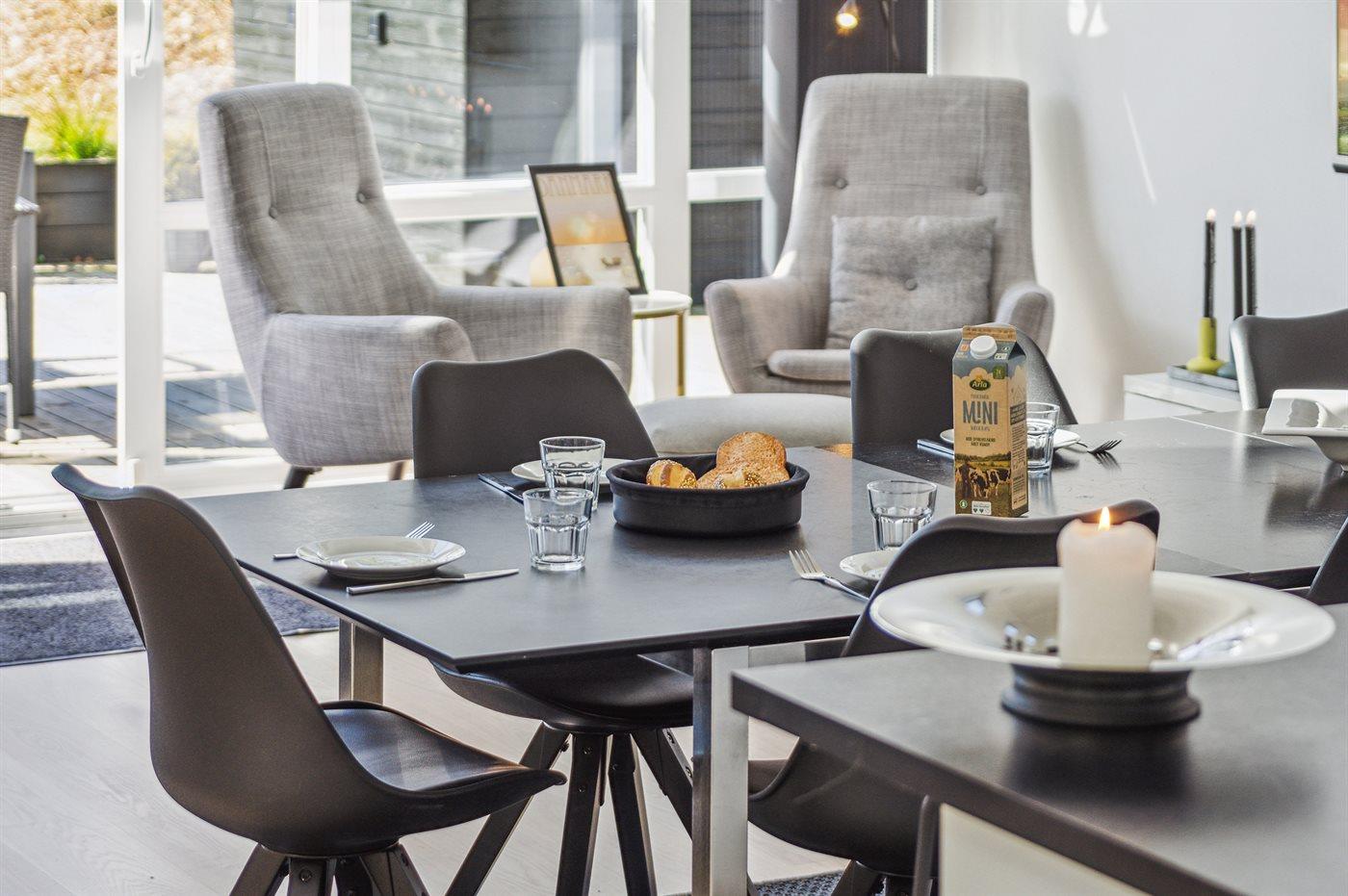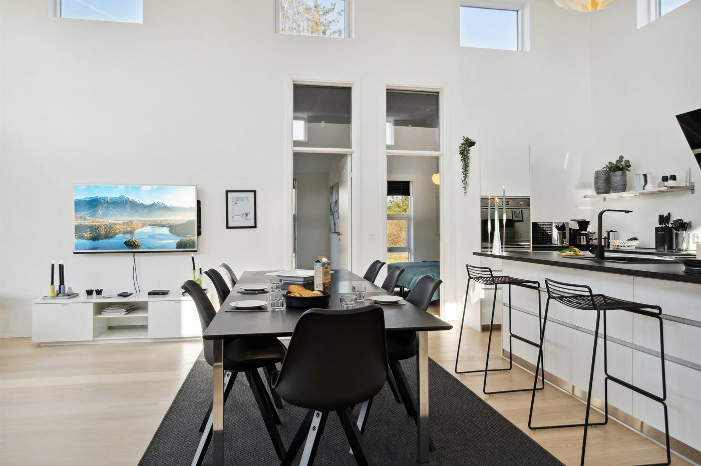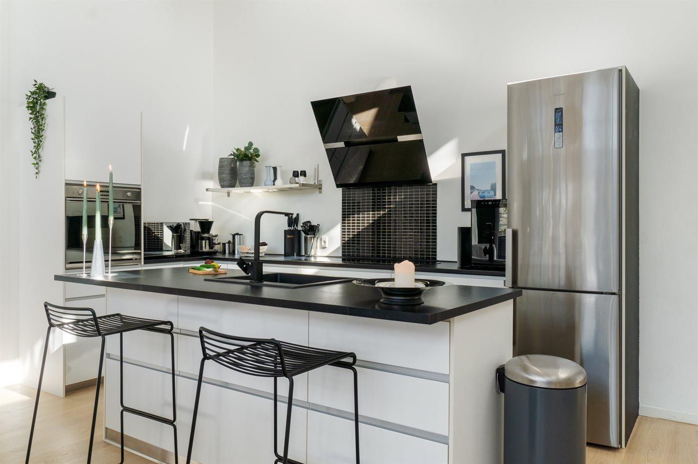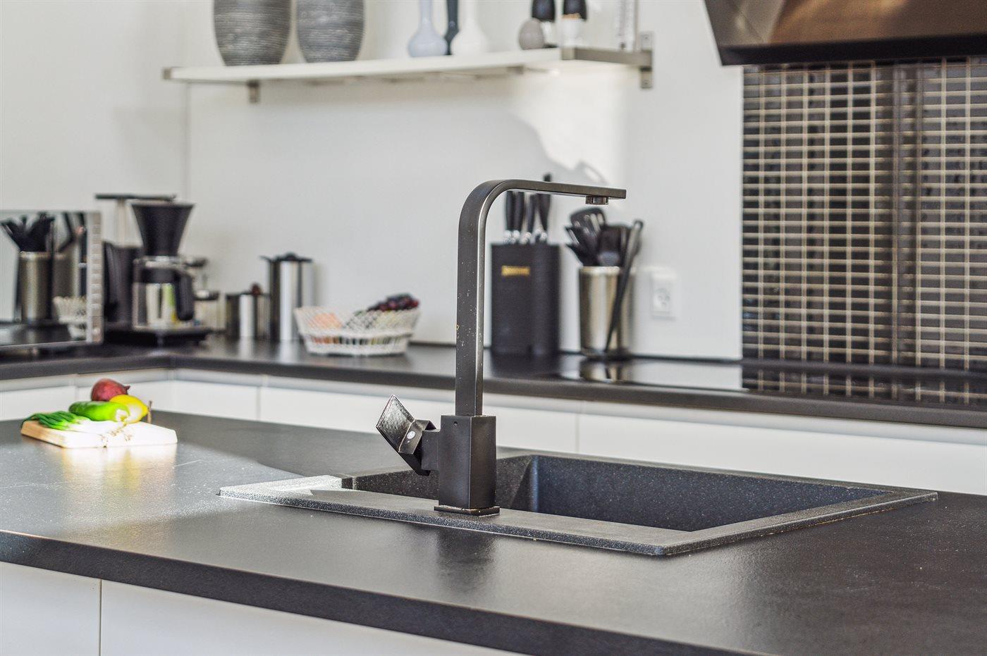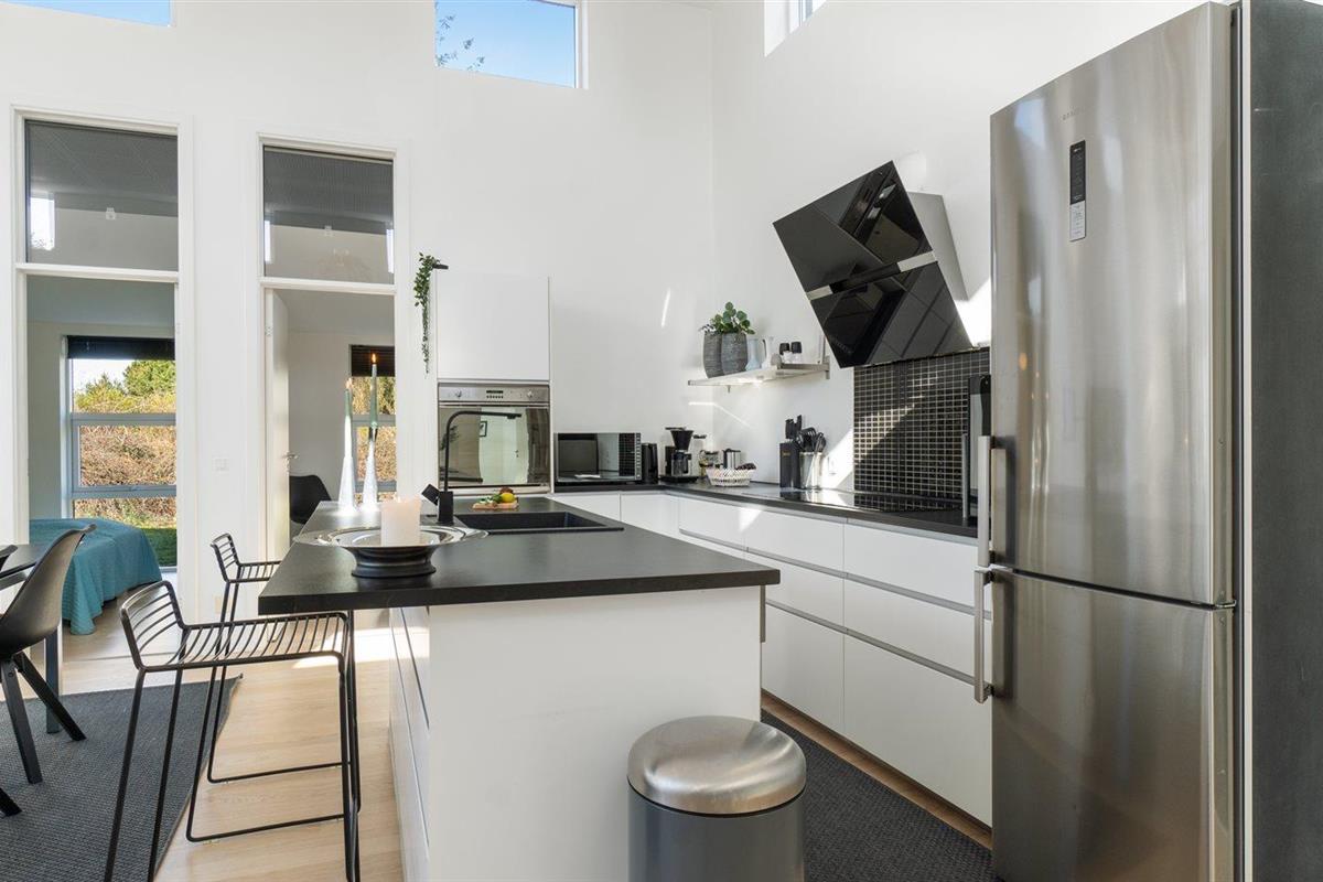 De keuken is uitgerust met koelkast Er is 4 inductiekookplaten, heteluchtoven, magnetron en vaatwasser.