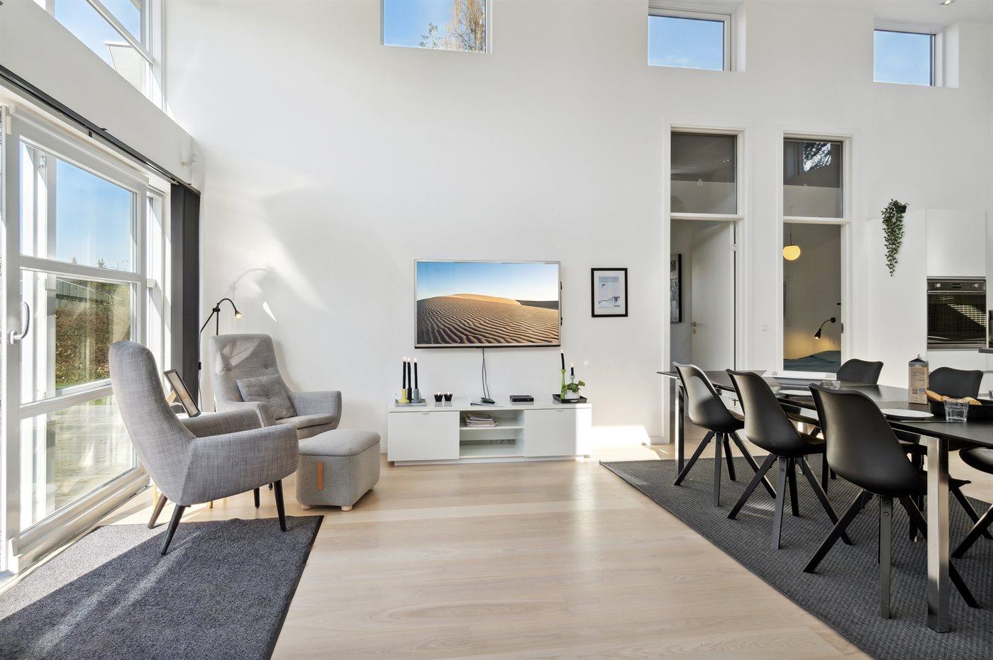 In de vakantiewoning is aanwezig 2 televisies. 1 Apple TV. 1-3 deense zenders. 1-3 duitse zenders. Draadloos internet.