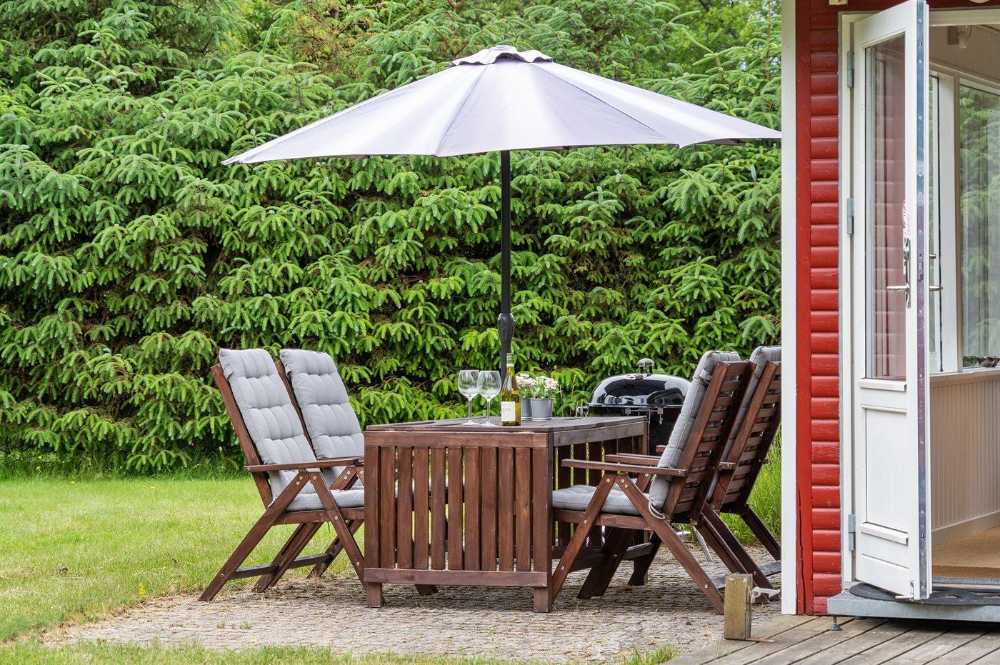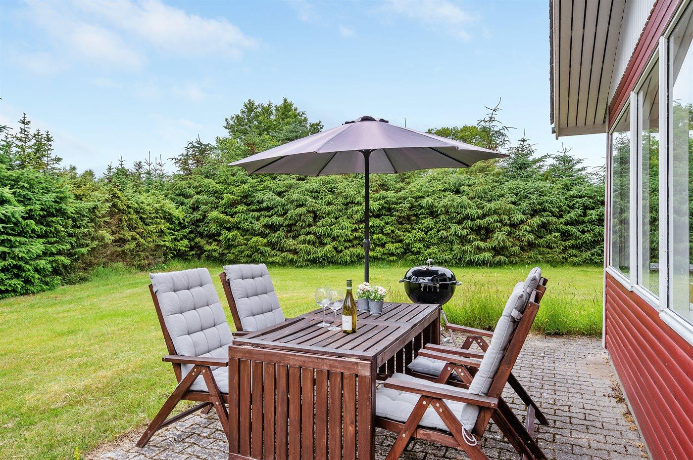 De vakantiewoning is gelegen op een 1251 m² groot aangelegde tuin. Afstand tot de zee 300 m. Dichtstbijzijnde winkel 1500 m. Er is een golfbaan op een afstand van 6500 m. Bij de vakantiewoning hoort 50 m² terras. Schommel. Zandbak. Voetbaldoel. Buitendouche. Barbecue. Parkeerplaats bij het huis.