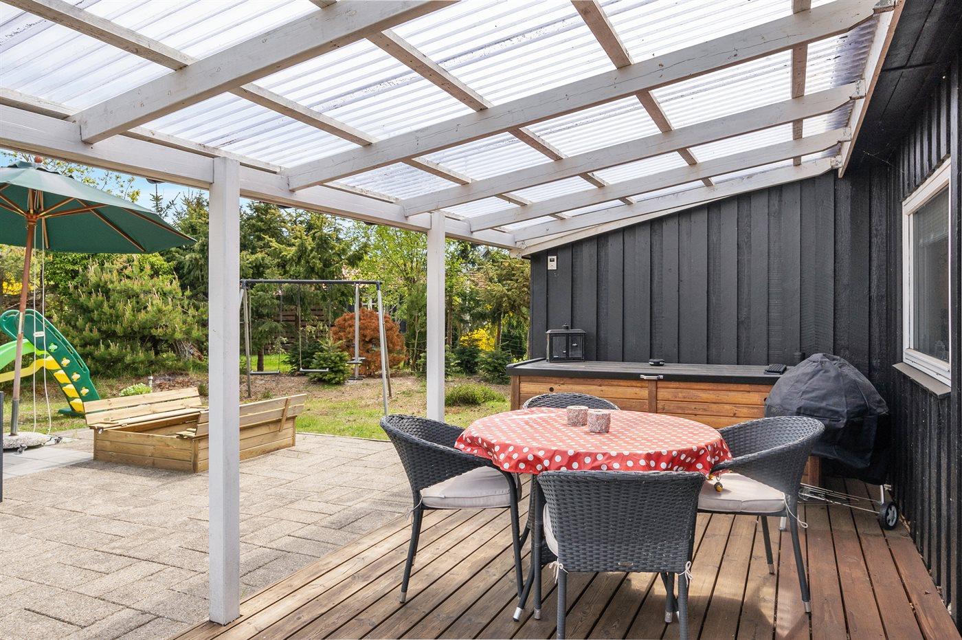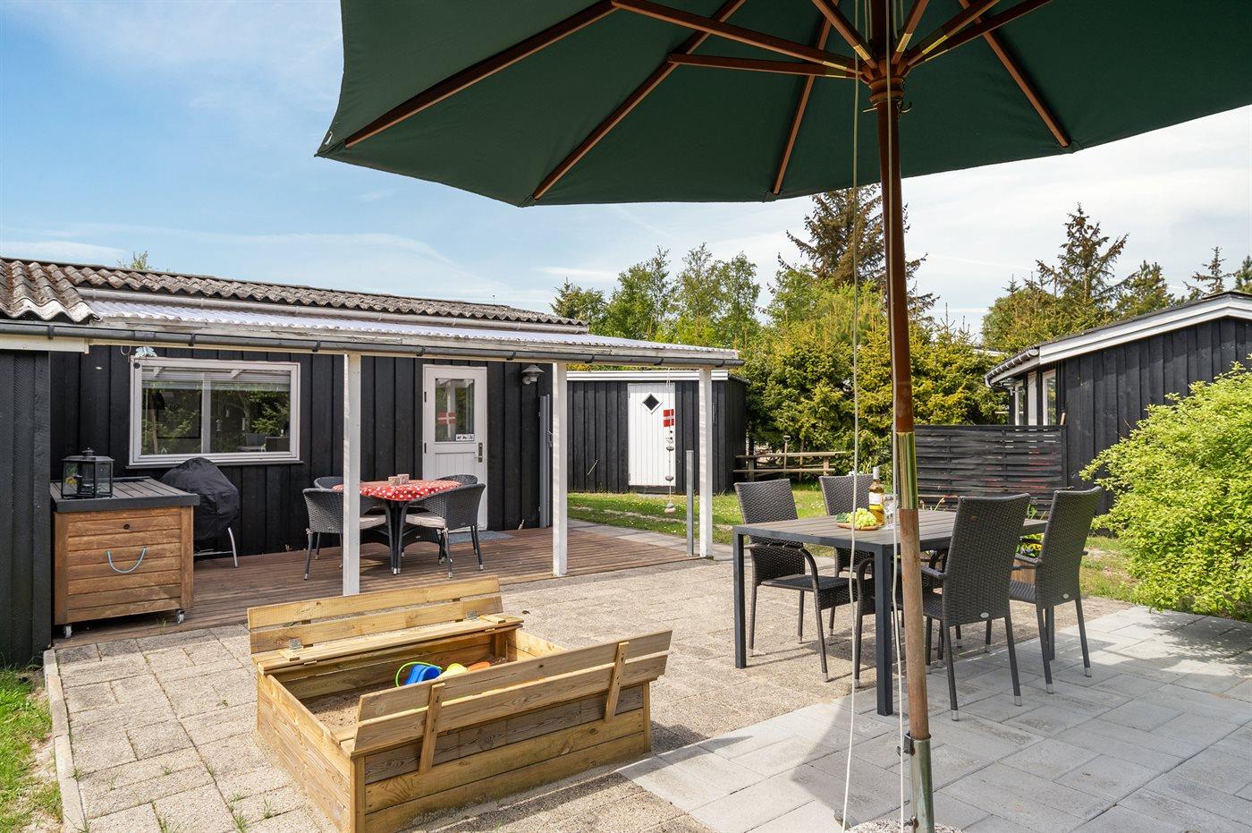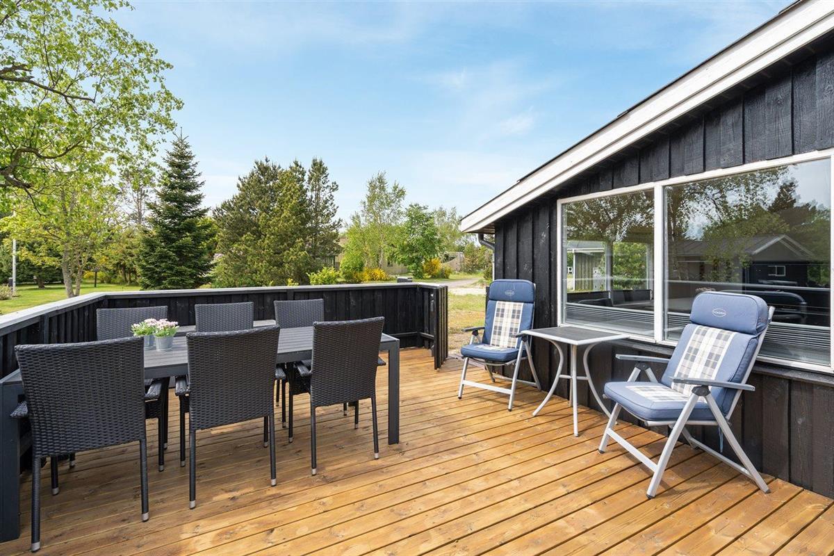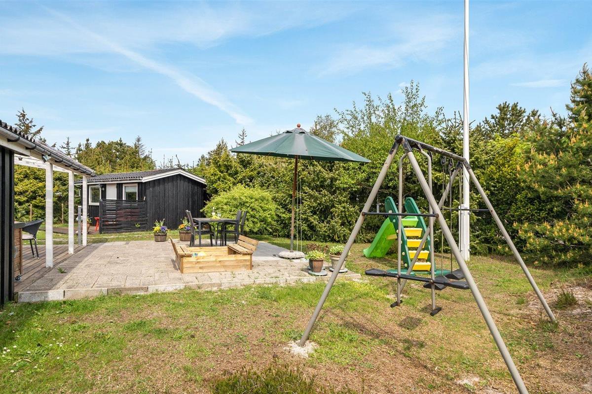 De vakantiewoning is gelegen op een 737 m² groot natuural grond. De grond is omheind. Afstand tot de zee 300 m. Dichtstbijzijnde winkel 3200 m. Er is een golfbaan op een afstand van 5500 m. Bij de vakantiewoning hoort 30 m² terras. Daarnaast is er een 14 m² groot overdekt terras. Schommel. Glijbaan. Parkeerplaats bij het huis.