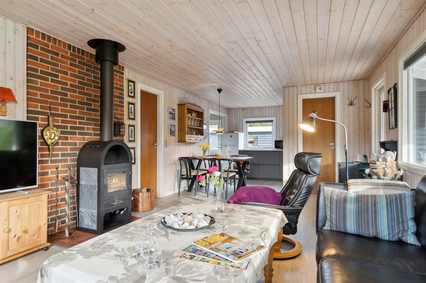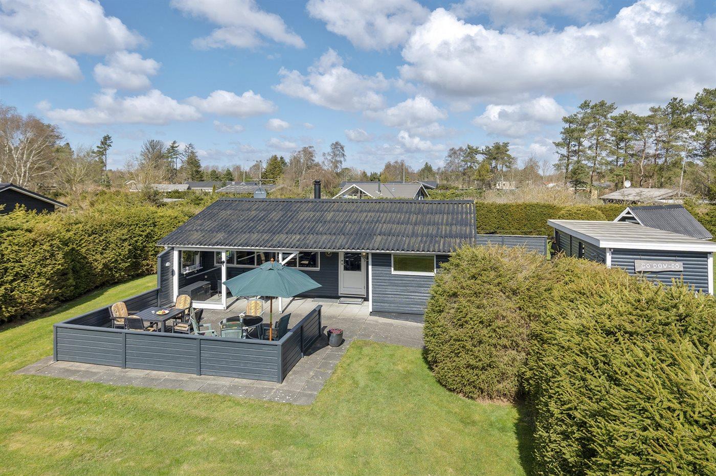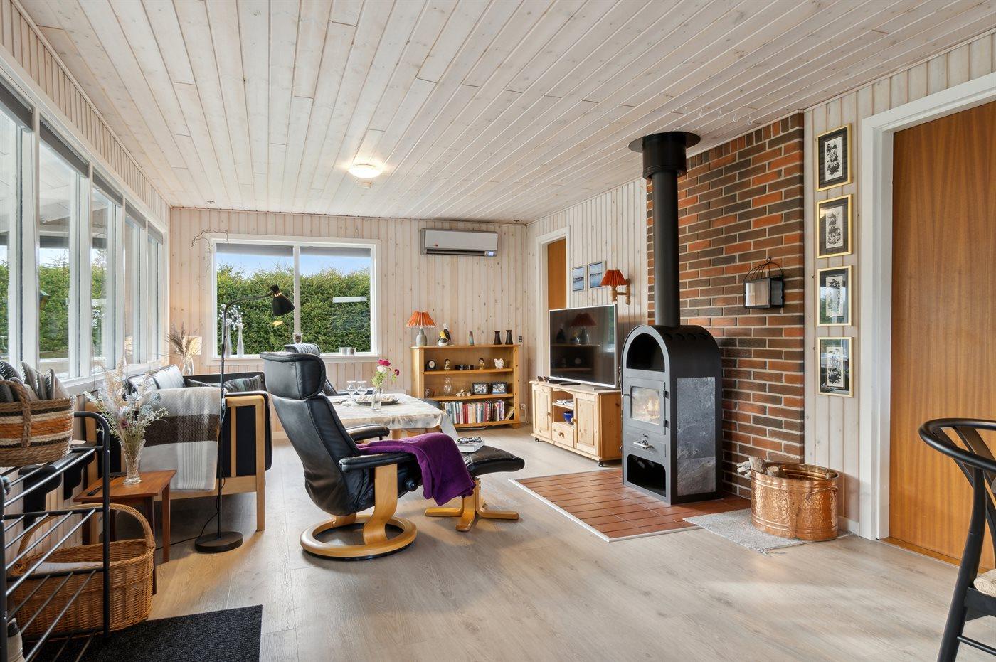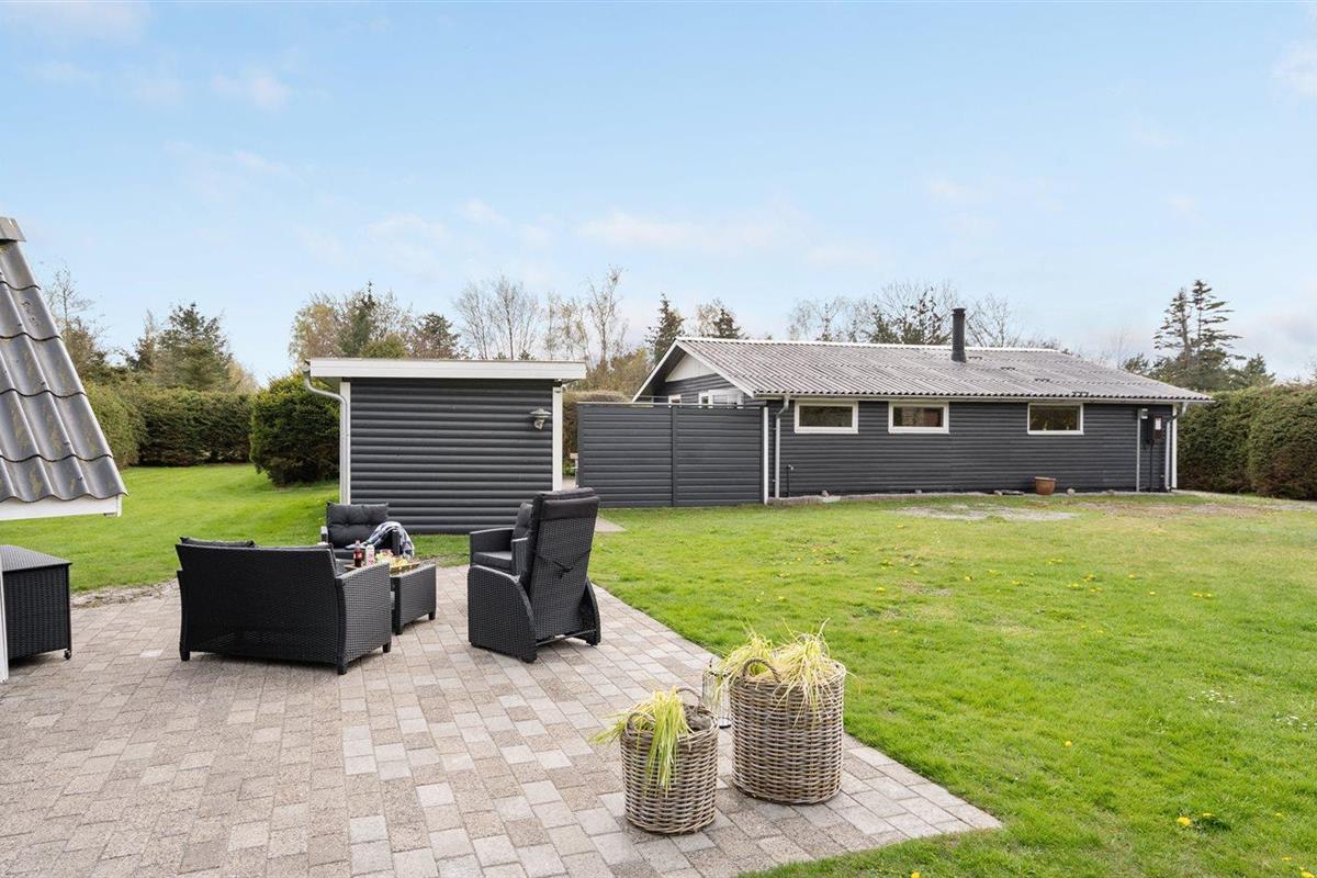 Modern vakantiehuis met warmtepomp, houtkachel en omheind terras op 1500 m van zee in Hals, Denemarken.