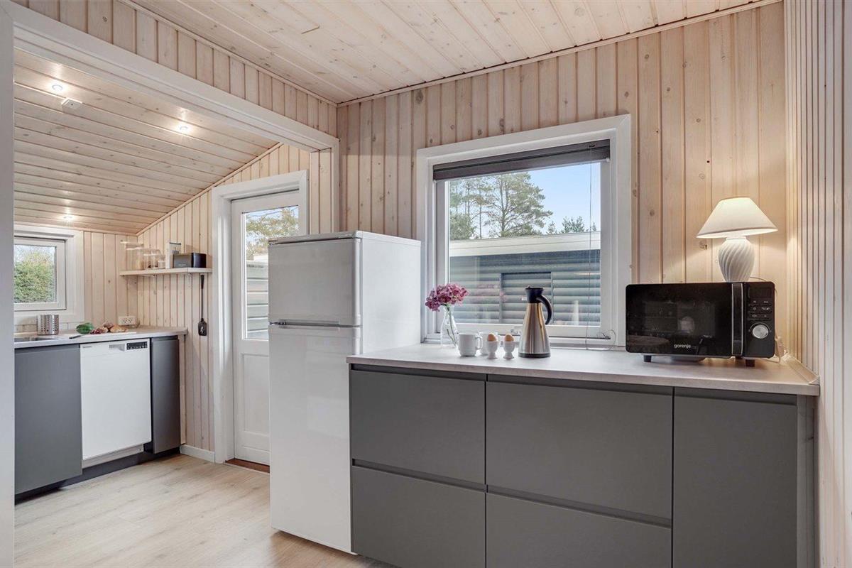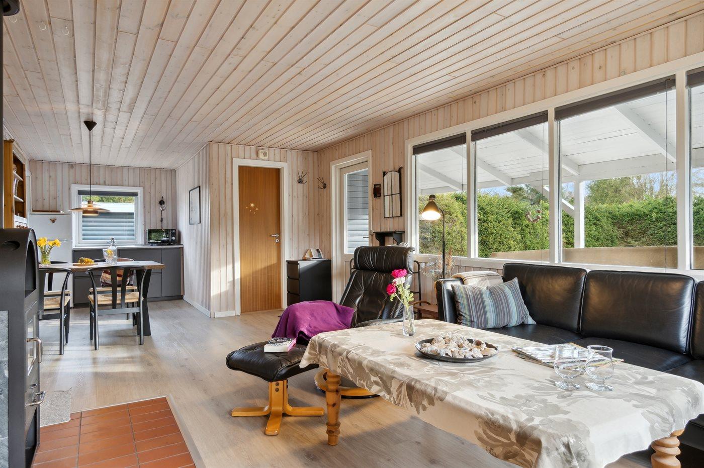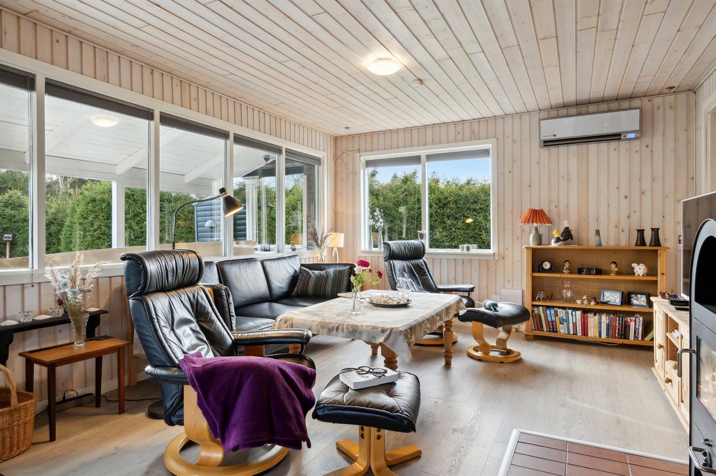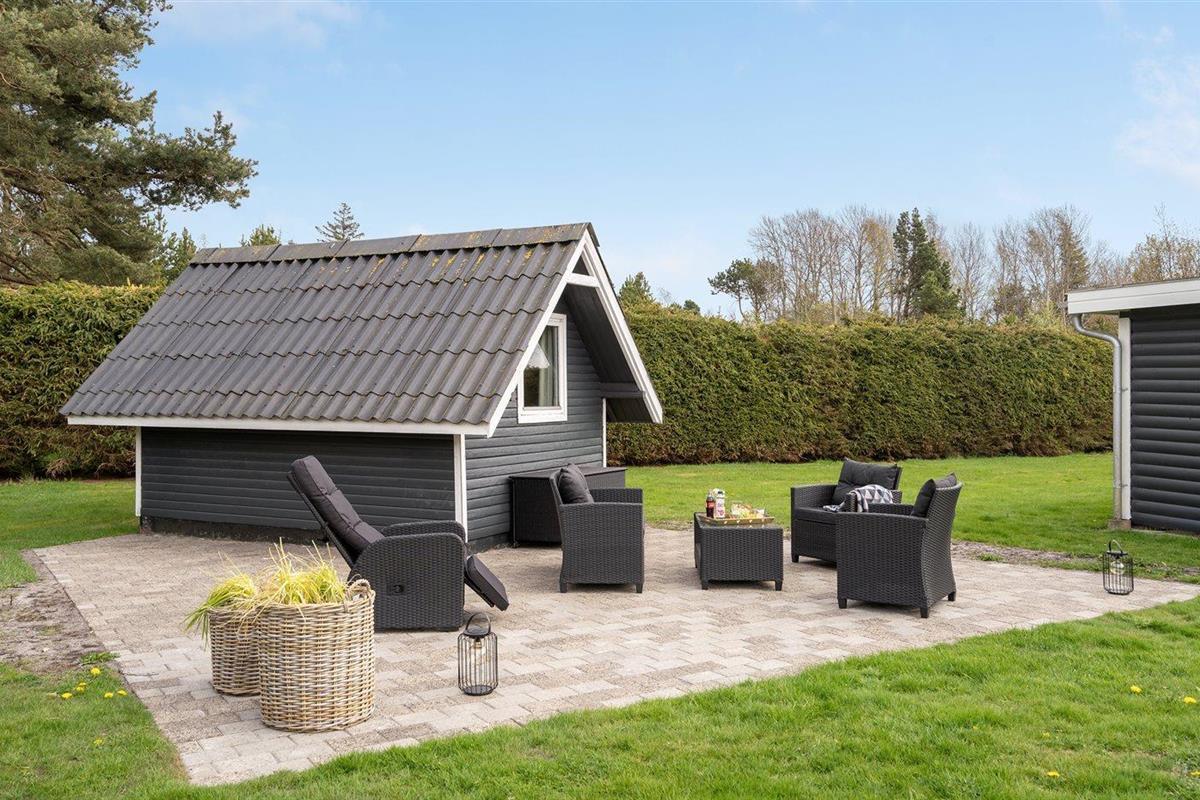 Modern vakantiehuis met warmtepomp, houtkachel en omheind terras op 1500 m van zee in Hals, Denemarken.
