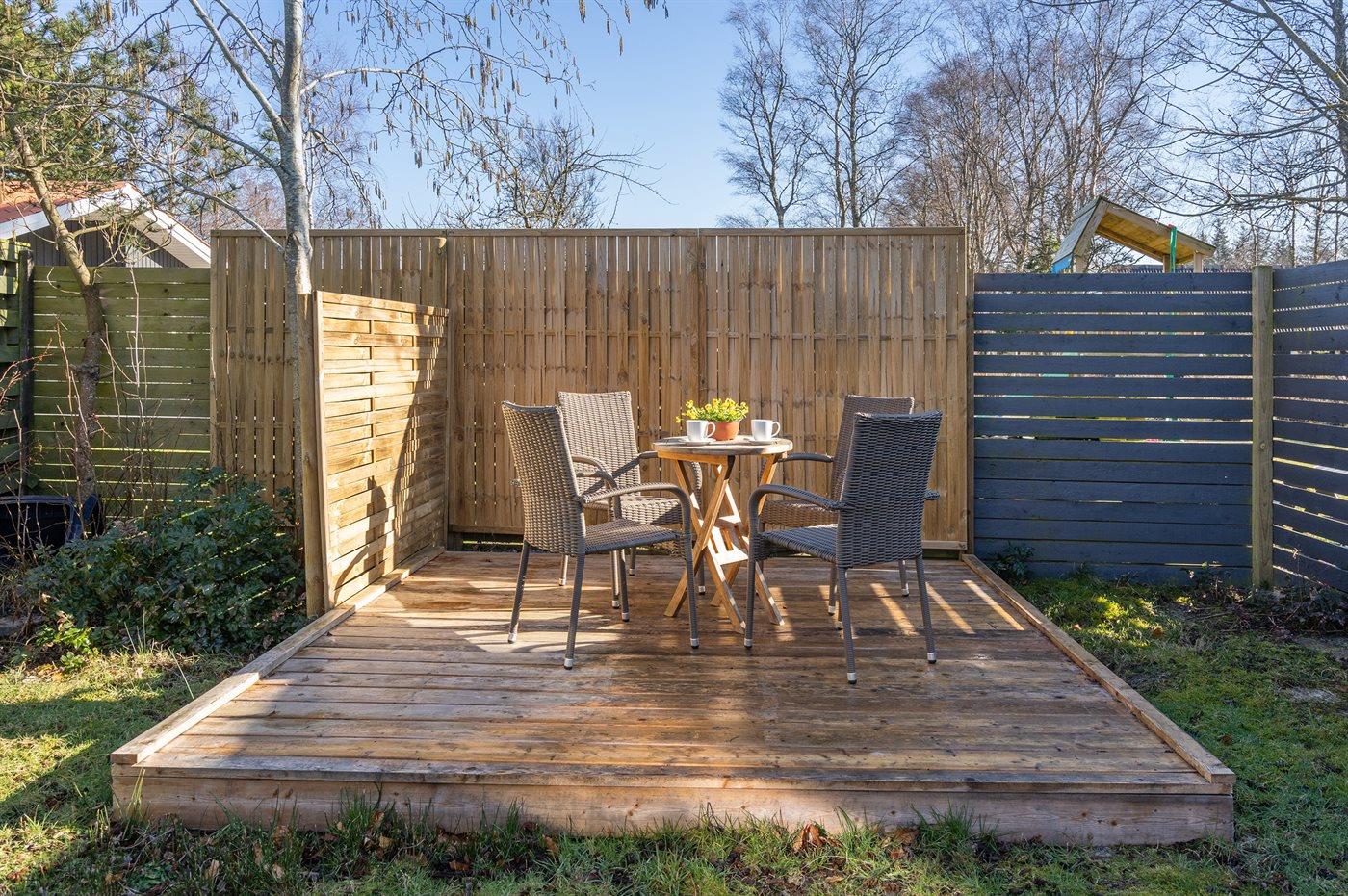 De vakantiewoning is gelegen op een 1250 m² groot natuural grond. De grond is omheind. Afstand tot de zee 450 m. Dichtstbijzijnde winkel 2000 m. Er is een golfbaan op een afstand van 2000 m. Bij de vakantiewoning hoort 20 m² terras. Daarnaast is er een 4 m² groot overdekt terras. Tevens heeft u de beschikking over een serre. Gereedschapsruimte.Petanque. Afstand tot speelplaats 2000 m. Barbecue. Carport ter beschikking. Parkeerplaats bij het huis.