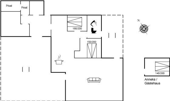 De vakantiewoning is gelegen op een 1035 m² groot natuural grond. Afstand tot de zee 1500 m. Dichtstbijzijnde winkel 2500 m. Er is een golfbaan op een afstand van 6000 m. Bij de vakantiewoning hoort terras en beschut terras. Bij de vakantiewoning hoort terras. Barbecue. Parkeerplaats bij het huis.