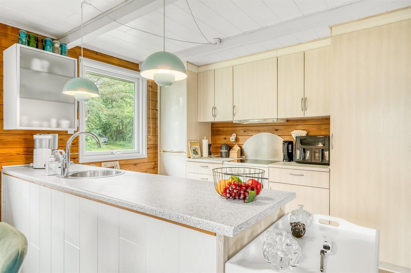 De keuken is uitgerust met koelkast Er is 4 inductiekookplaten, mini-oven, heteluchtoven.