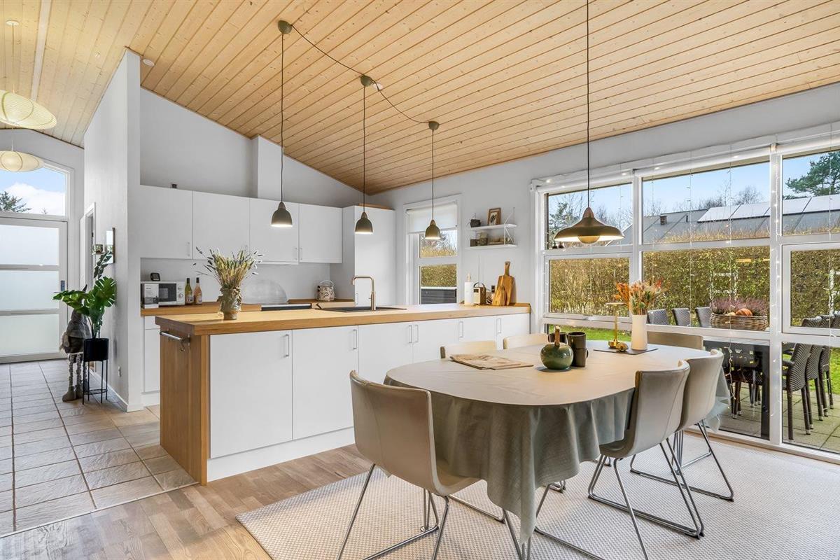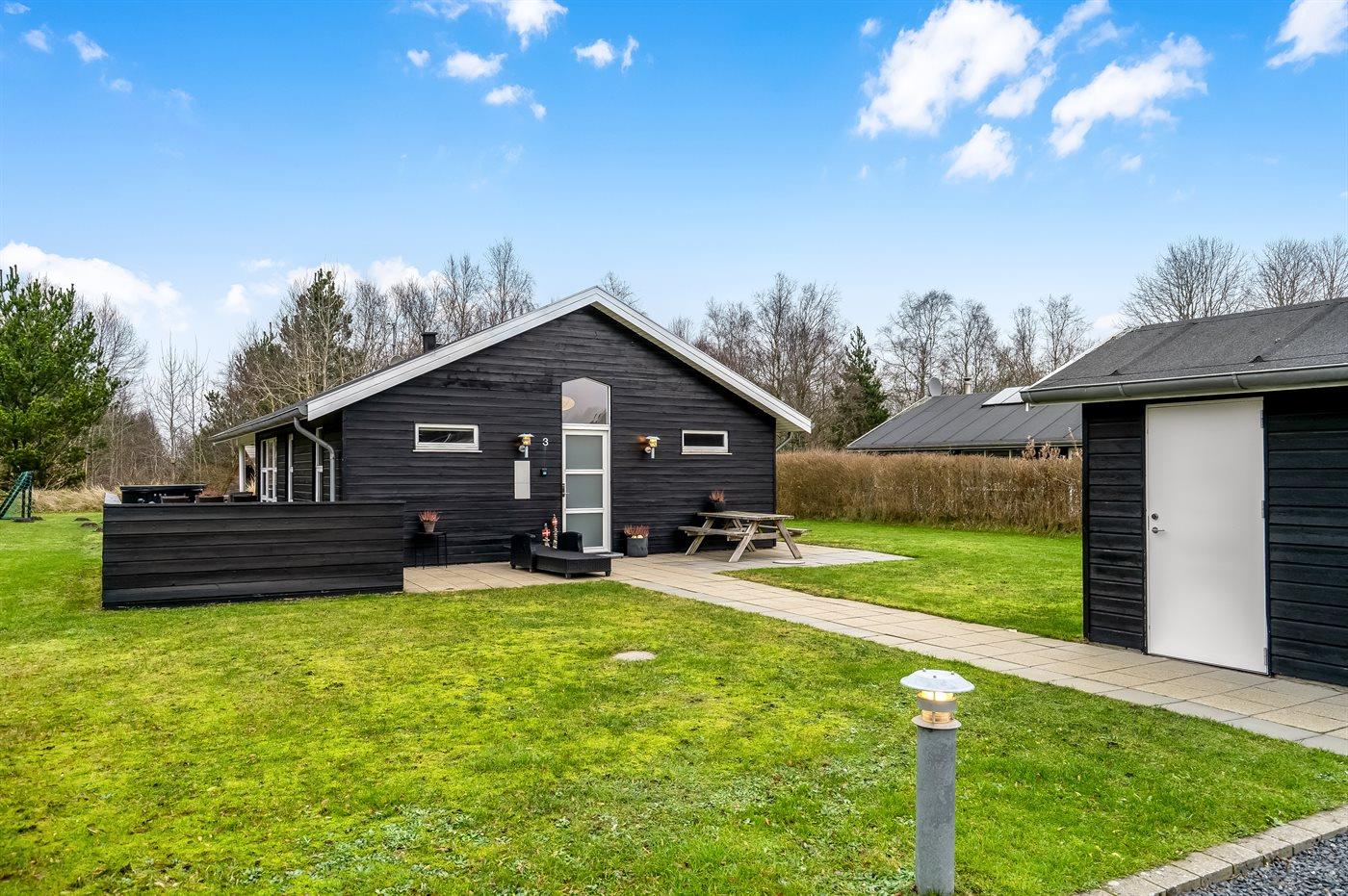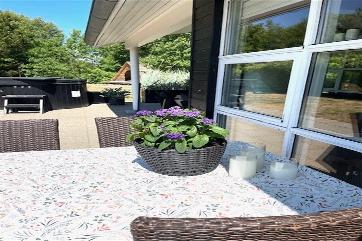 De vakantiewoning is gelegen op een 1050 m² groot aangelegde tuin. Afstand tot de zee 1900 m. Dichtstbijzijnde winkel 1600 m. Bij de vakantiewoning hoort terras. Daarnaast is er een overdekt terras. Zandbak. Voetbaldoel.Vuurplaats. Shelter. Barbecue. Parkeerplaats bij het huis.