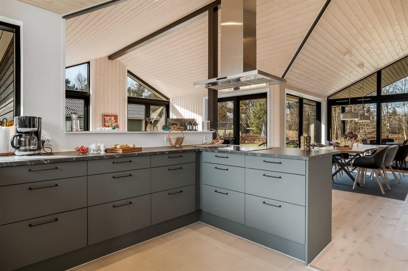 De keuken is uitgerust met koelkast Er is 4 inductiekookplaten, heteluchtoven, magnetron en vaatwasser.