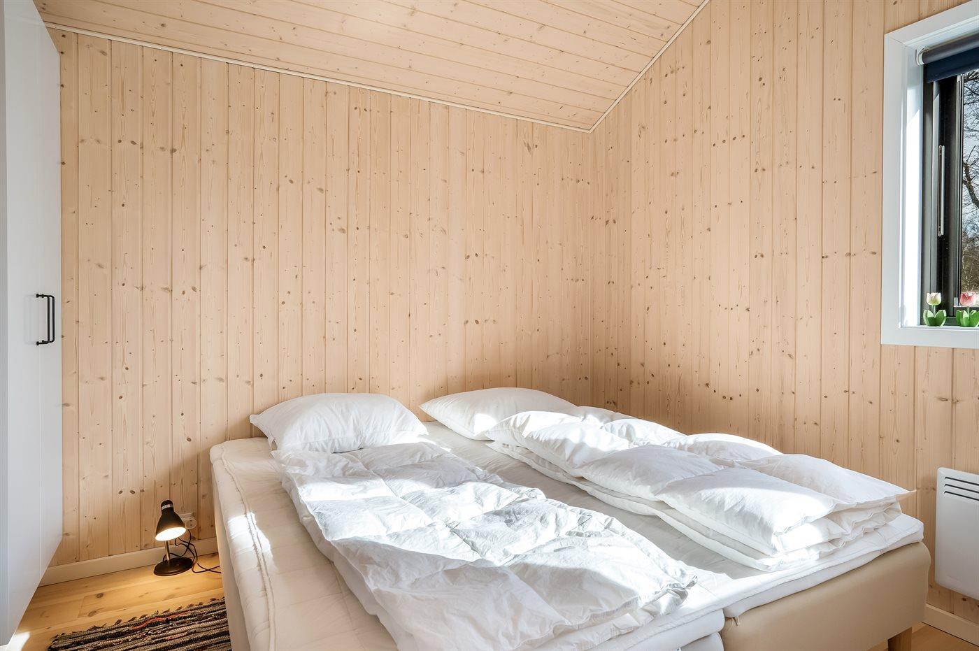 4 slaapplaatsen in tweepersoonsbedden. 2 slaapplaatsen in stapelbed. Verder is kinderbed ter beschikking.