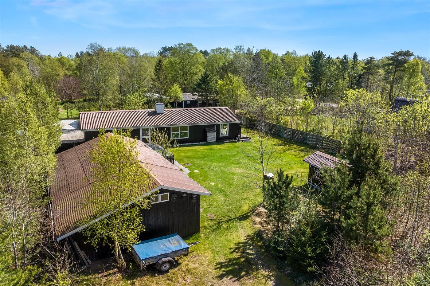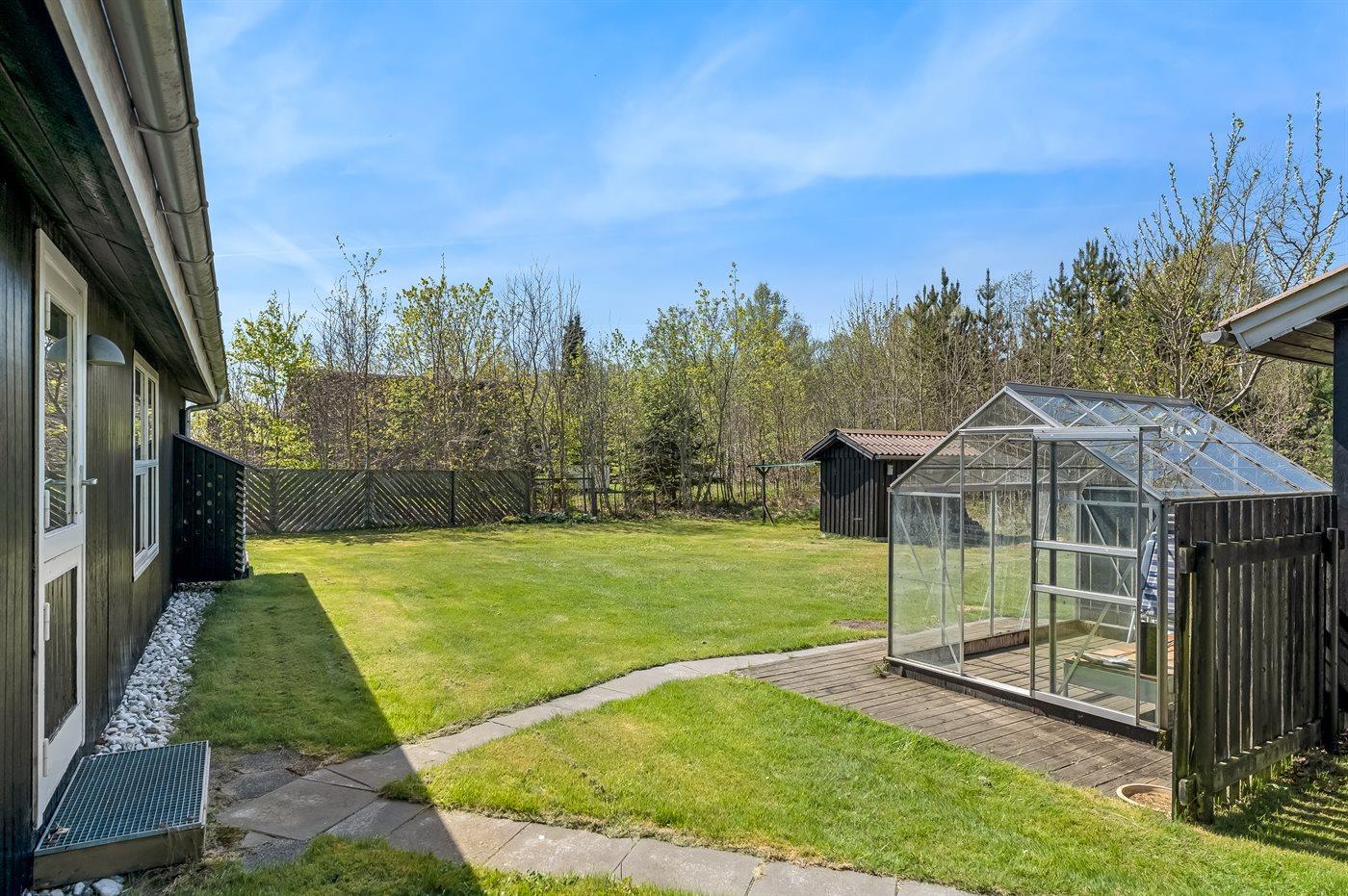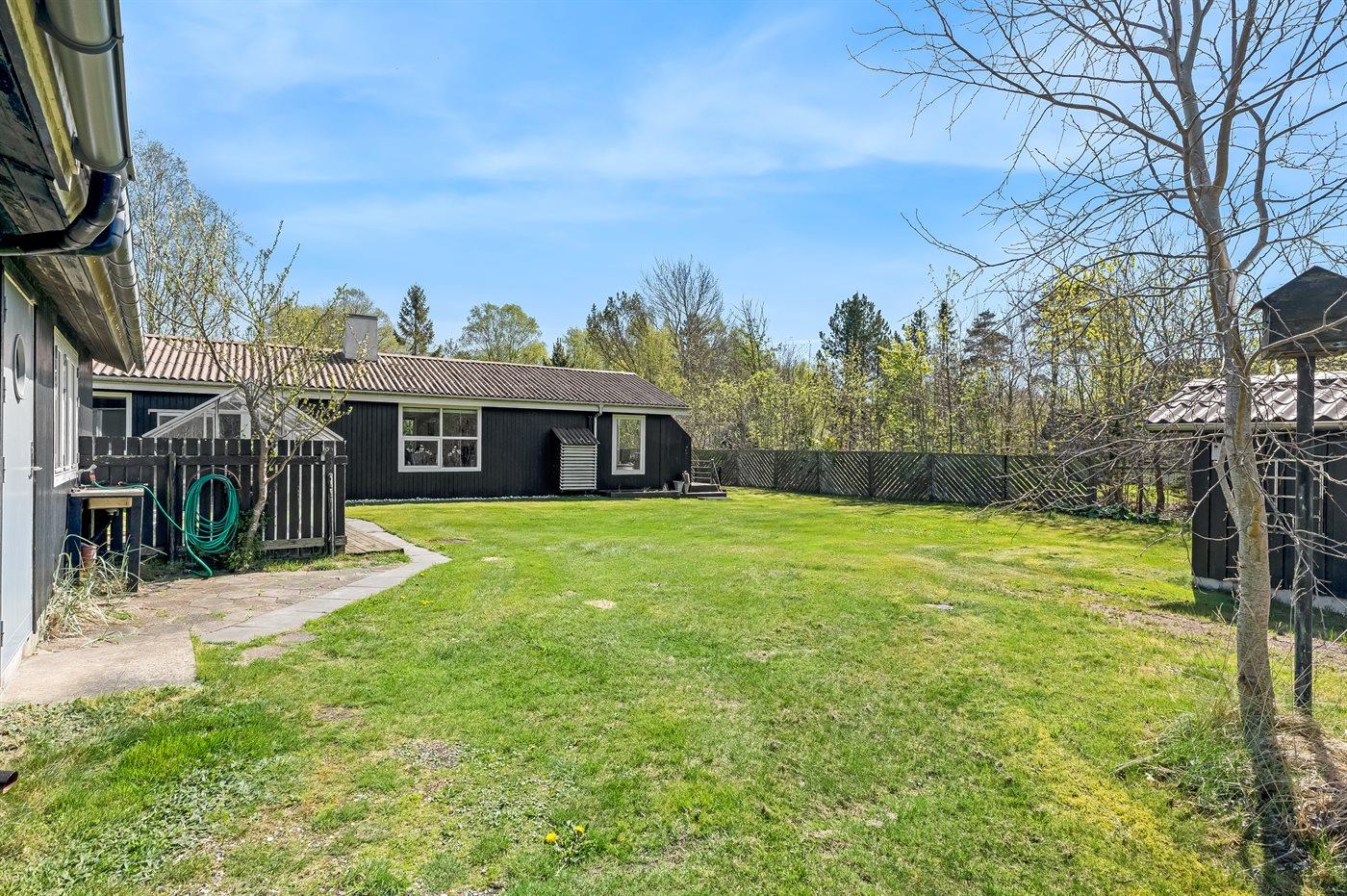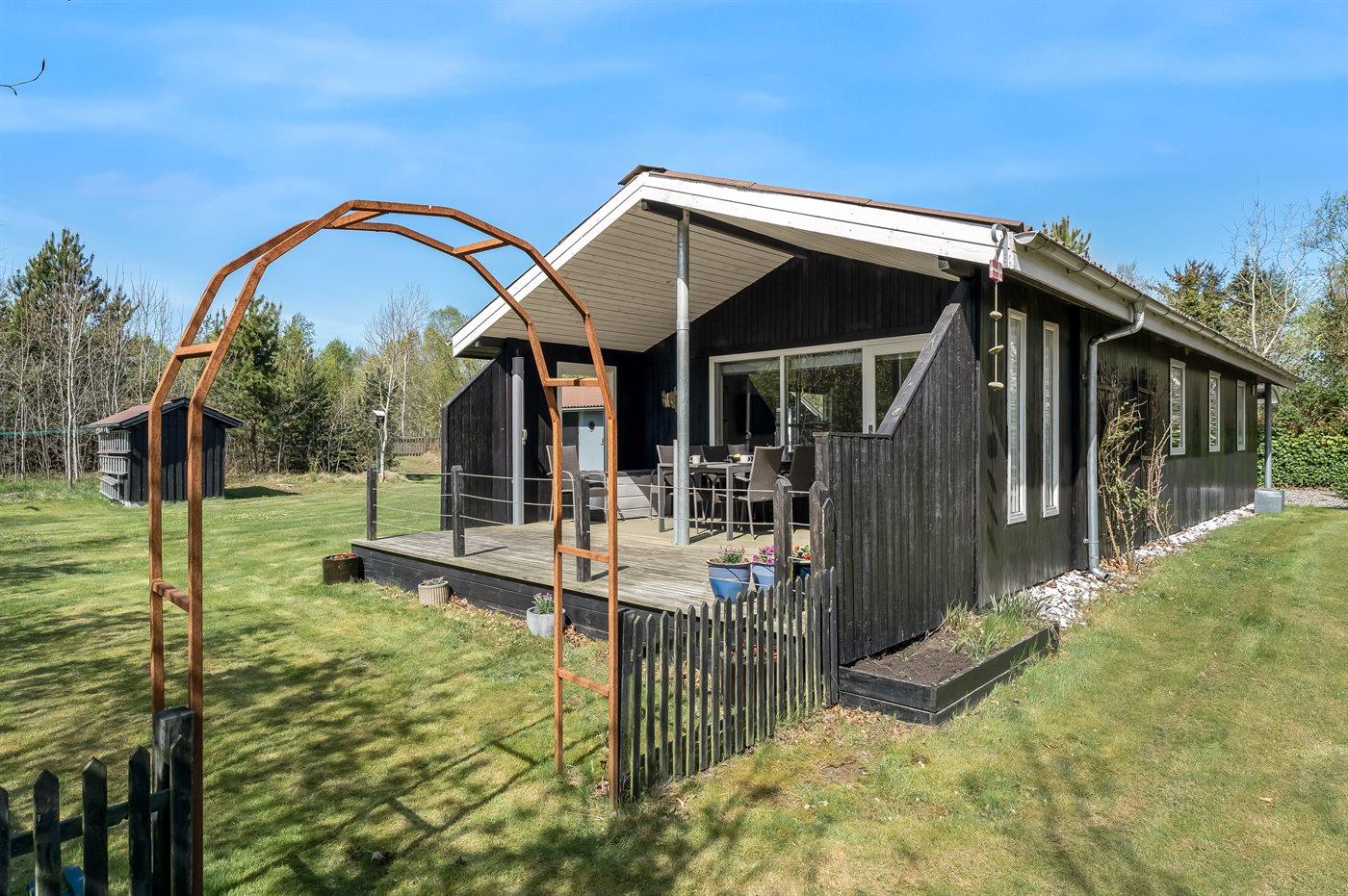 De vakantiewoning is gelegen op een 1085 m² groot natuural grond. De grond is omheind. Afstand tot de zee 2170 m. Afstand tot de fjord 7300 m. Dichtstbijzijnde winkel 1600 m. Er is een golfbaan op een afstand van 5500 m. Bij de vakantiewoning hoort terras. Daarnaast is er een overdekt terras. Barbecue. Parkeerplaats bij het huis.
