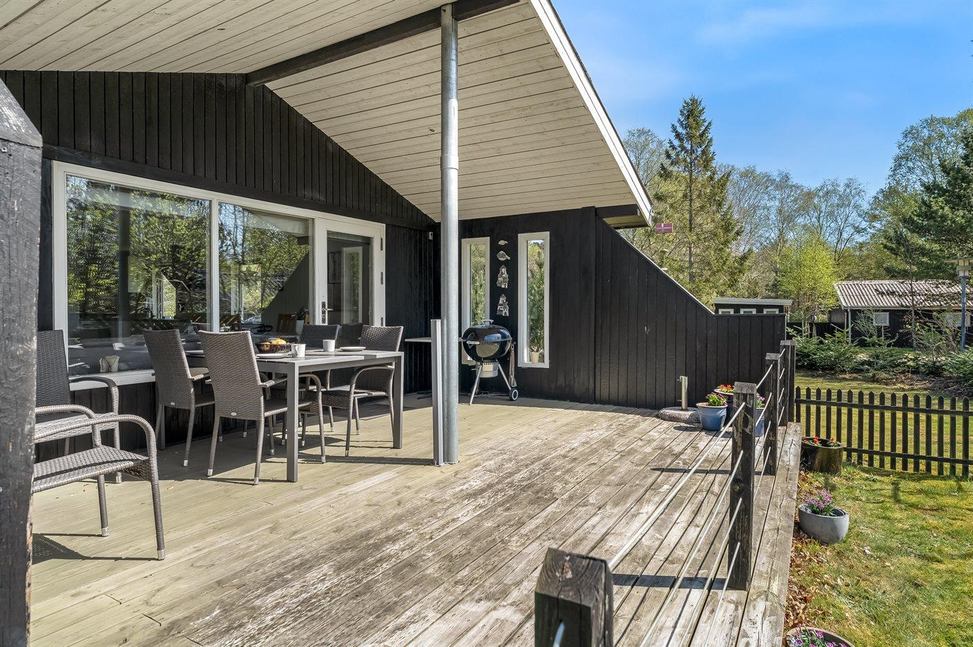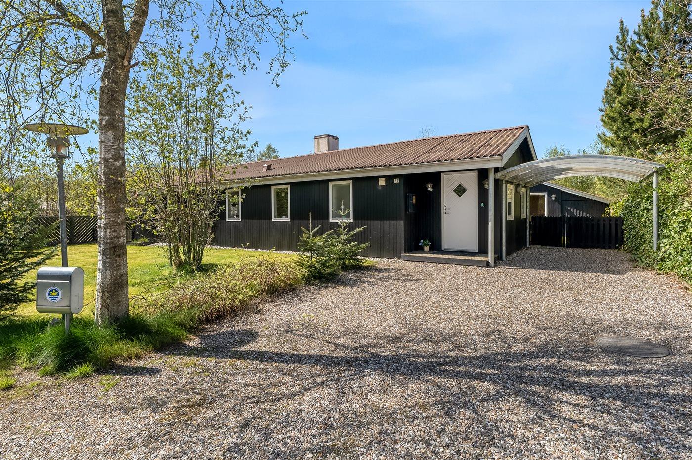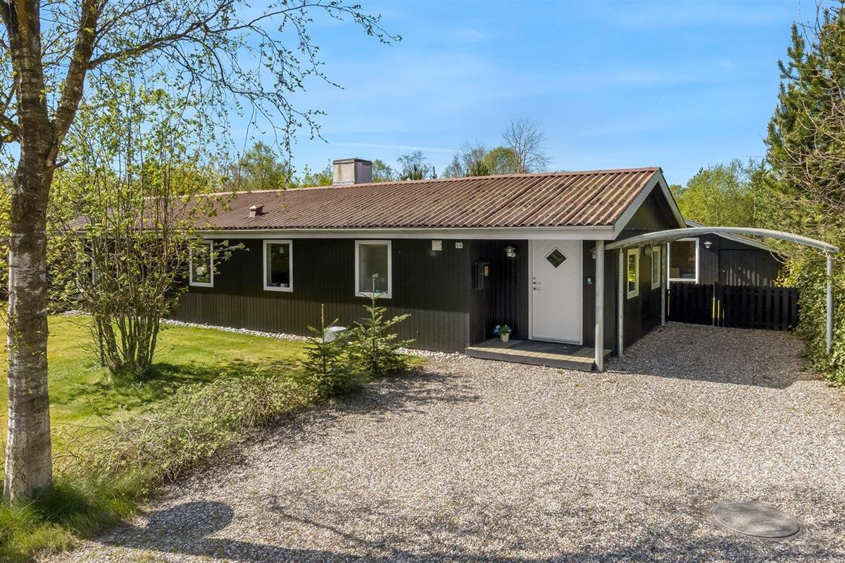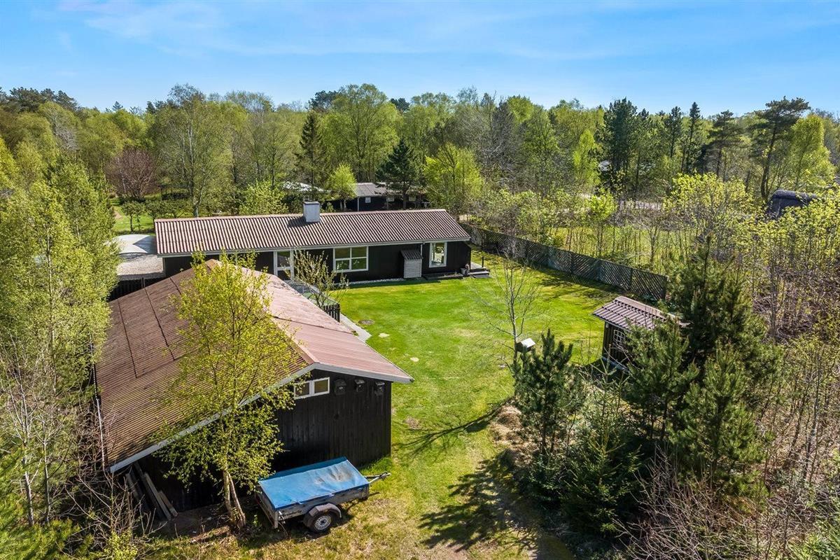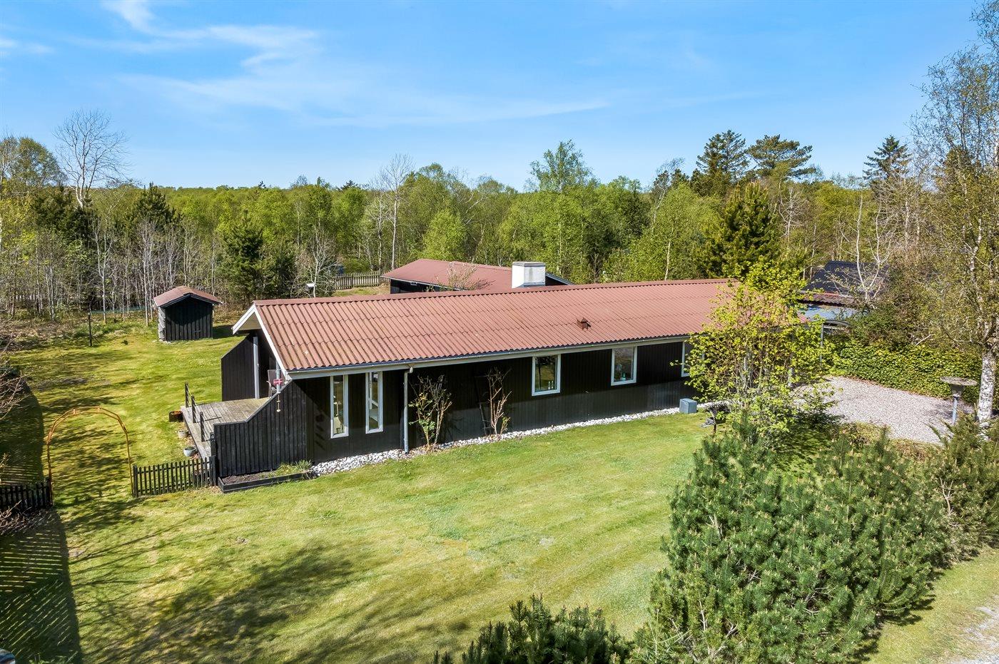 De vakantiewoning is gelegen op een 1085 m² groot natuural grond. De grond is omheind. Afstand tot de zee 2170 m. Afstand tot de fjord 7300 m. Dichtstbijzijnde winkel 1600 m. Er is een golfbaan op een afstand van 5500 m. Bij de vakantiewoning hoort terras. Daarnaast is er een overdekt terras. Barbecue. Parkeerplaats bij het huis.