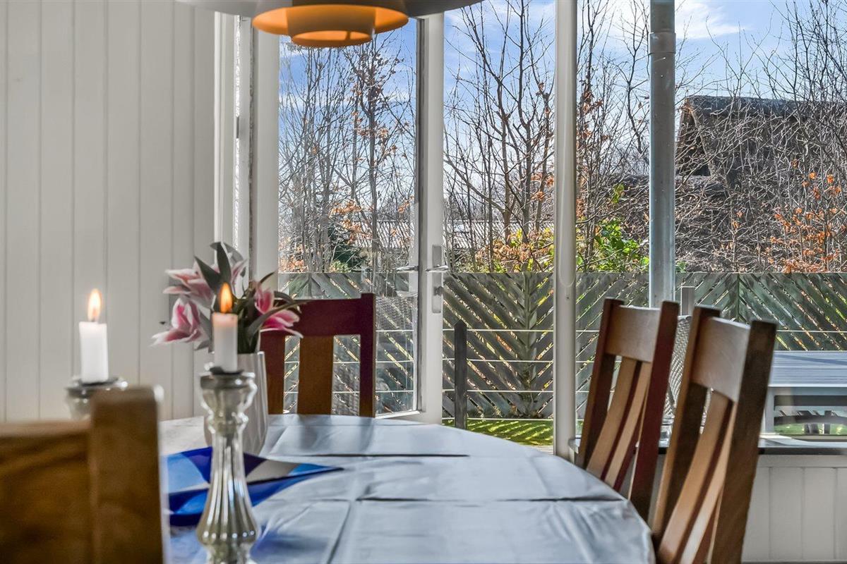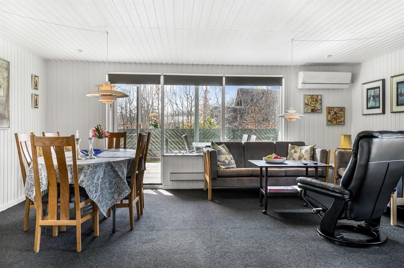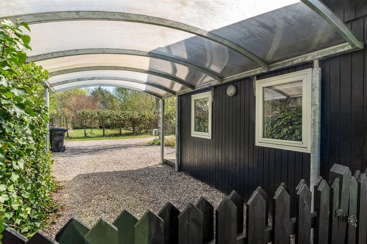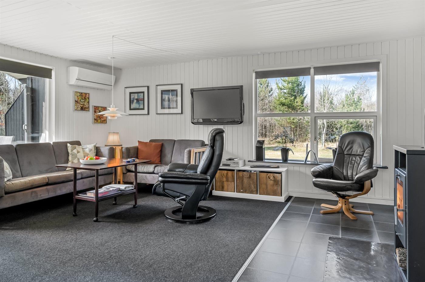 De vakantiewoning is gelegen op een 1085 m² groot natuural grond. De grond is omheind. Afstand tot de zee 2170 m. Afstand tot de fjord 7300 m. Dichtstbijzijnde winkel 1600 m. Er is een golfbaan op een afstand van 5500 m. Bij de vakantiewoning hoort terras. Daarnaast is er een overdekt terras. Barbecue. Parkeerplaats bij het huis.