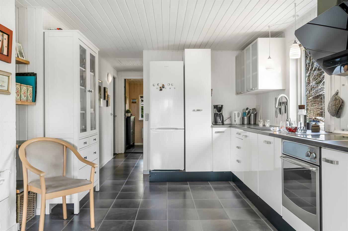 De keuken is uitgerust met koelkast Er zijn 4 keramische kookplaten, heteluchtoven en vaatwasser.