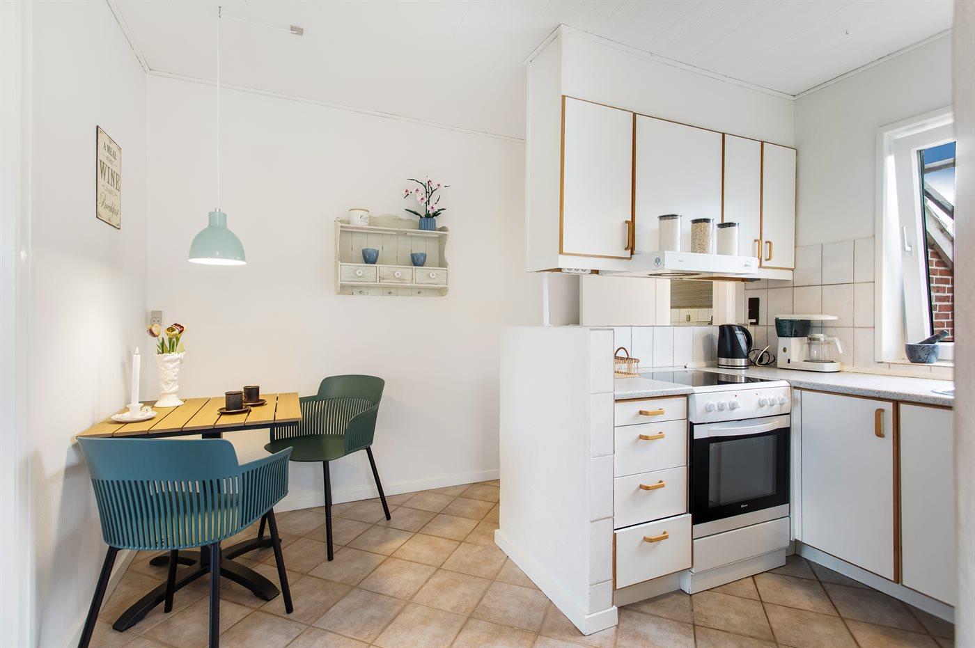 De keuken is uitgerust met koelkast Er zijn 4 keramische kookplaten, heteluchtoven en vaatwasser.