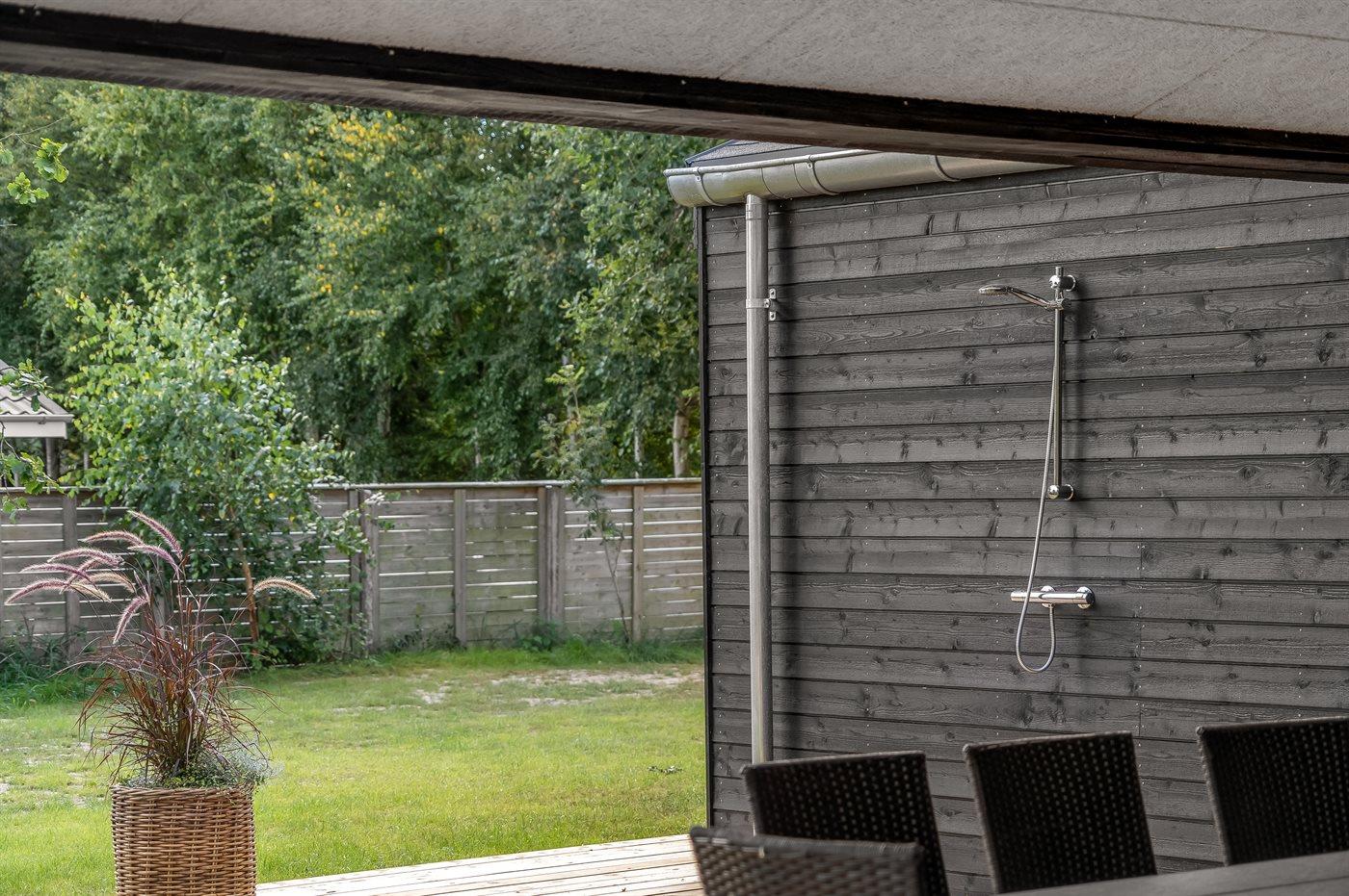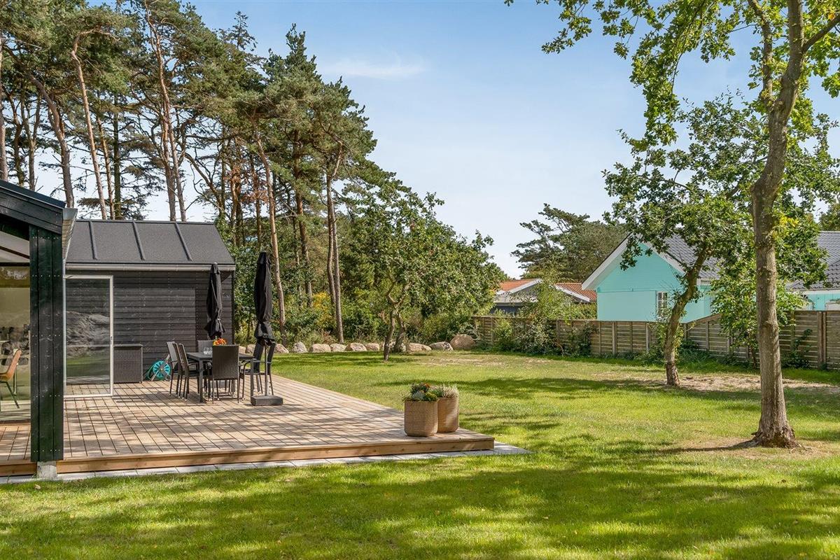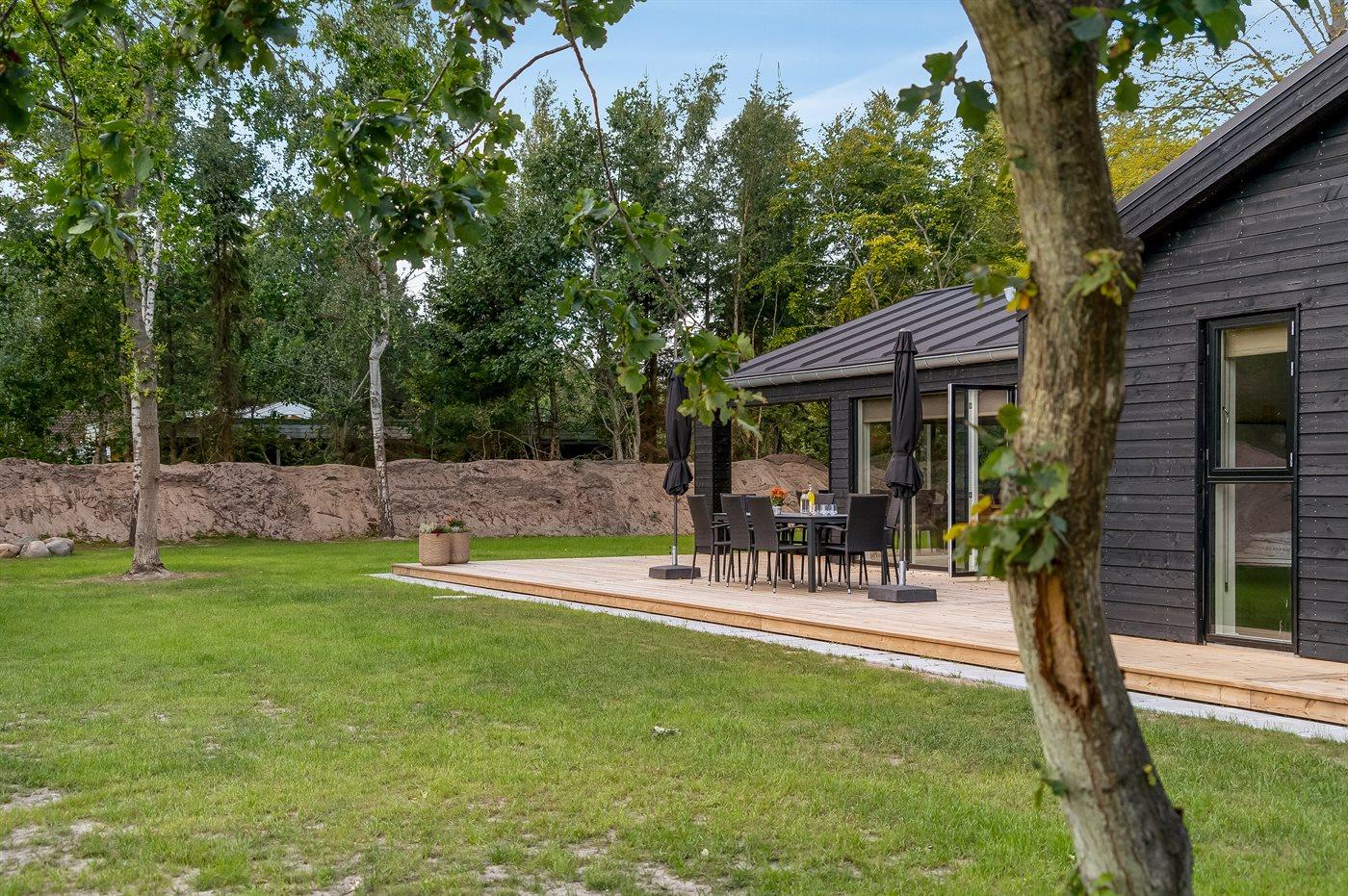 De vakantiewoning is gelegen op een 1561 m² groot natuural grond. Afstand tot de zee 330 m. Afstand tot de fjord 6700 m. Dichtstbijzijnde winkel 1500 m. Er is een golfbaan op een afstand van 5200 m. Bij de vakantiewoning hoort terras. Daarnaast is er een overdekt terras. Buitendouche. Barbecue. Het huis heeft een stopcontact voor het opladen van een elektrische auto. Oplaadstekker type 2. Met 11 kW-laadvermogen. Parkeerplaats bij het huis.