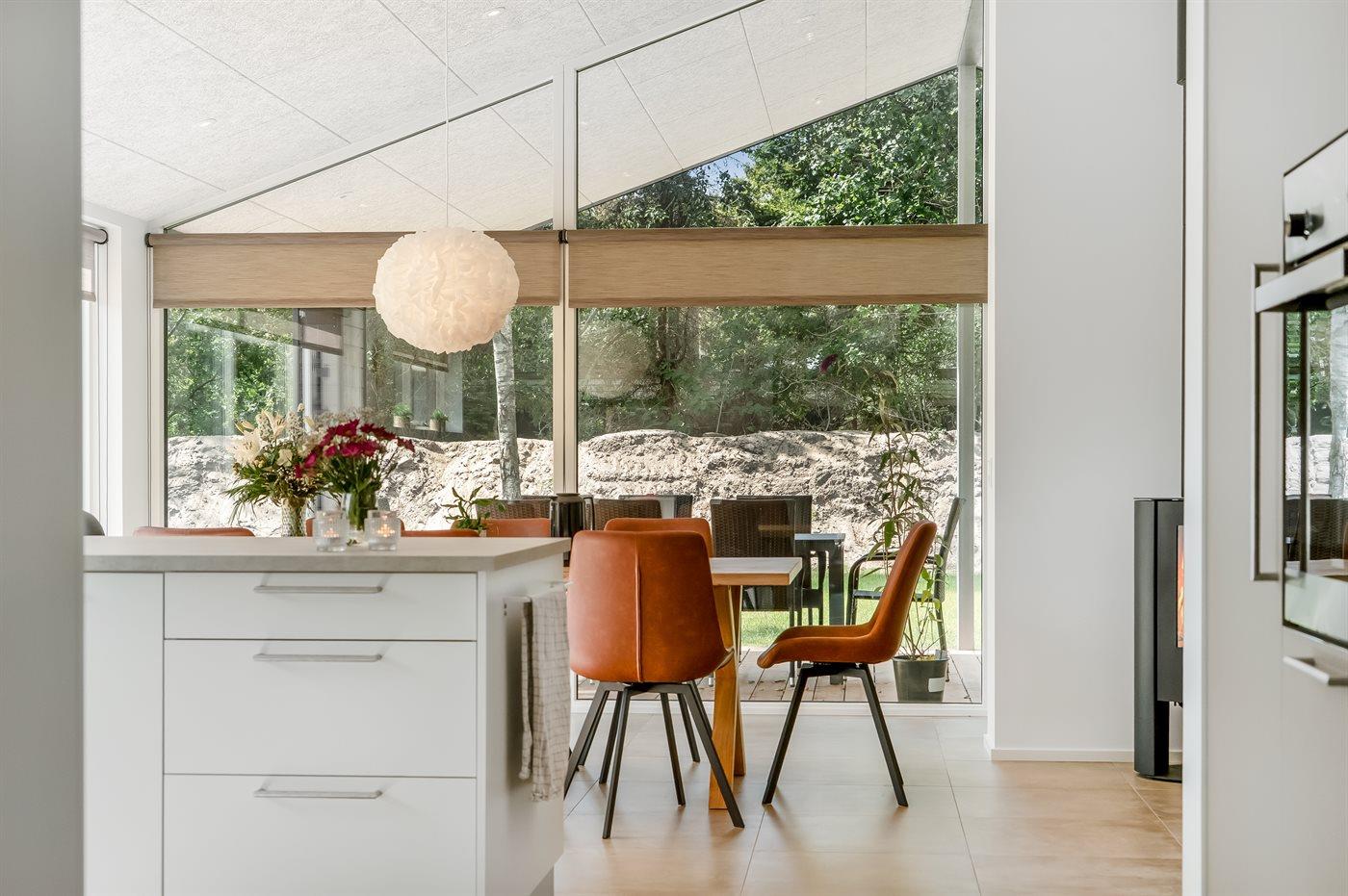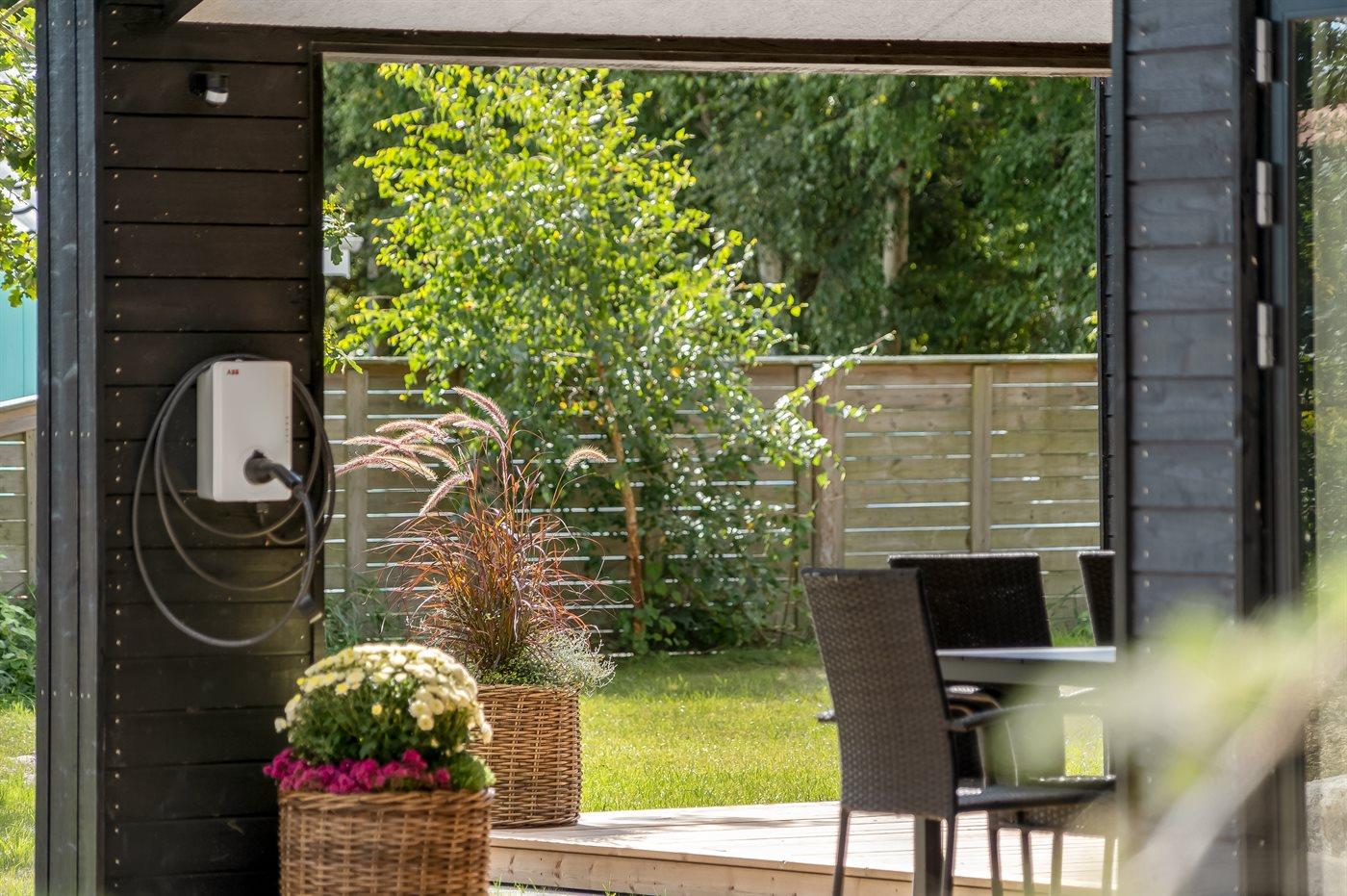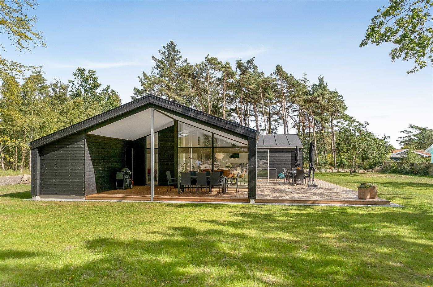 De vakantiewoning is gelegen op een 1561 m² groot natuural grond. Afstand tot de zee 330 m. Afstand tot de fjord 6700 m. Dichtstbijzijnde winkel 1500 m. Er is een golfbaan op een afstand van 5200 m. Bij de vakantiewoning hoort terras. Daarnaast is er een overdekt terras. Buitendouche. Barbecue. Het huis heeft een stopcontact voor het opladen van een elektrische auto. Oplaadstekker type 2. Met 11 kW-laadvermogen. Parkeerplaats bij het huis.