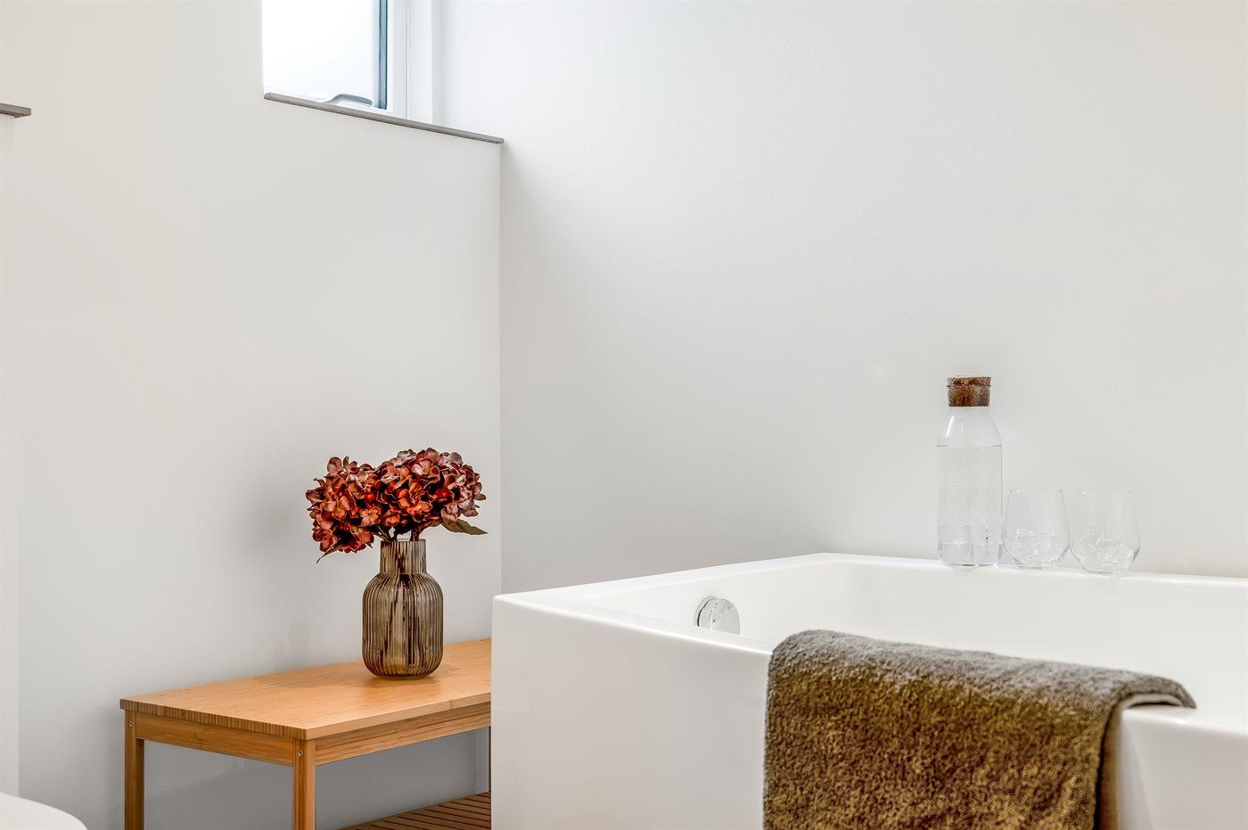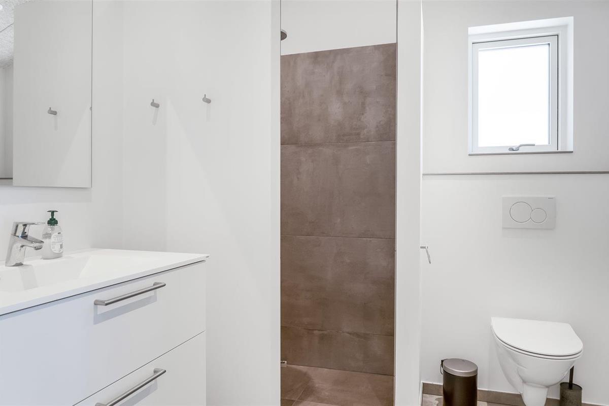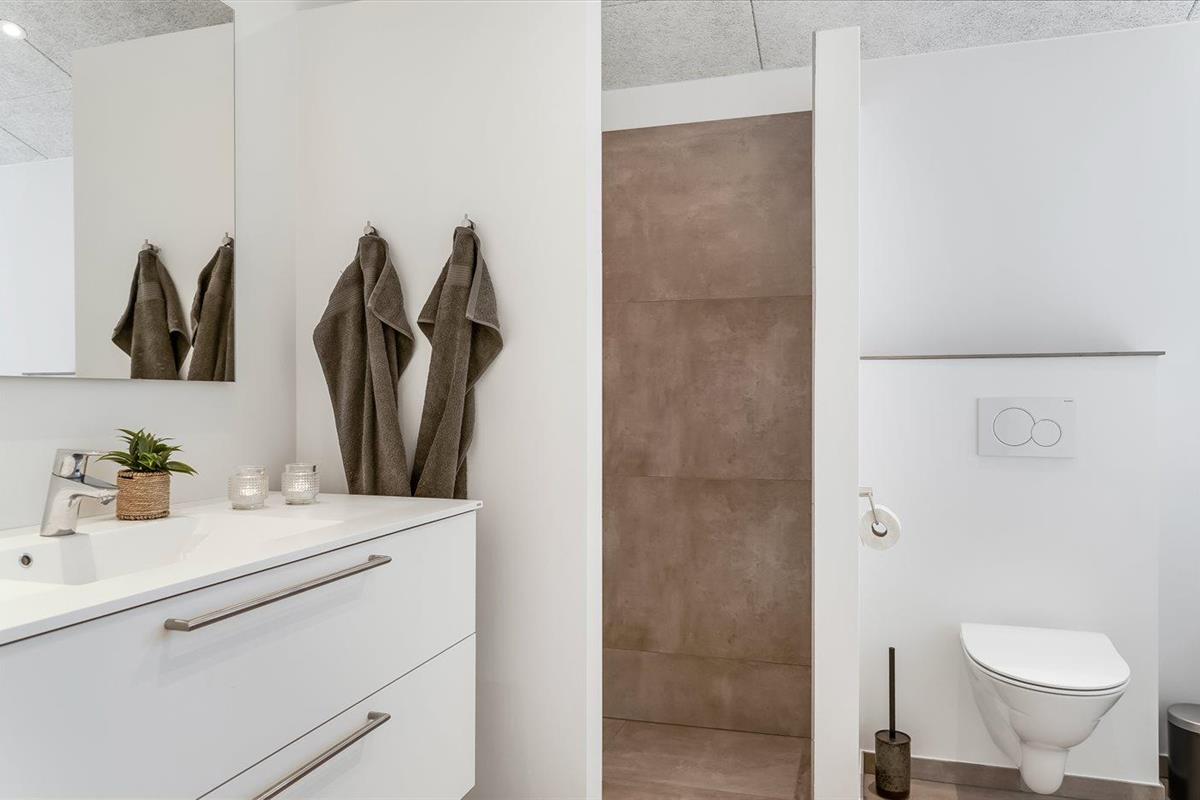 Er is 2 badkamers met douchehok en 2 toiletten. Er is vloerverwarming in 2 van de badkamers.