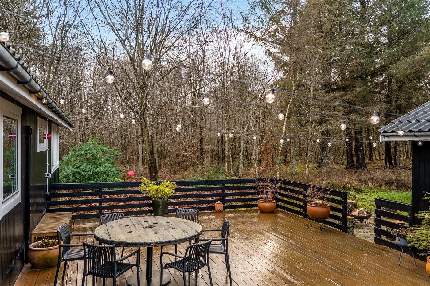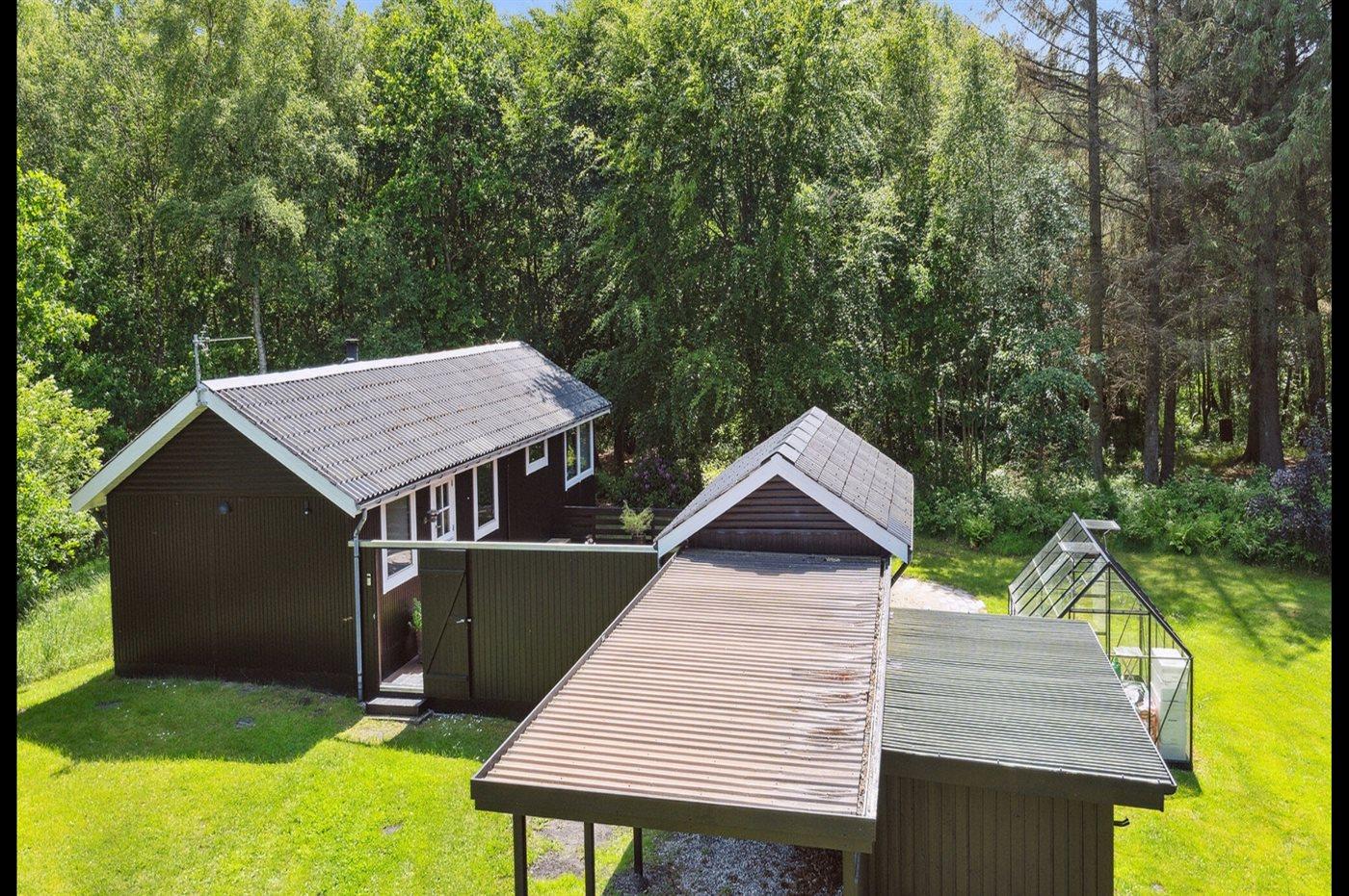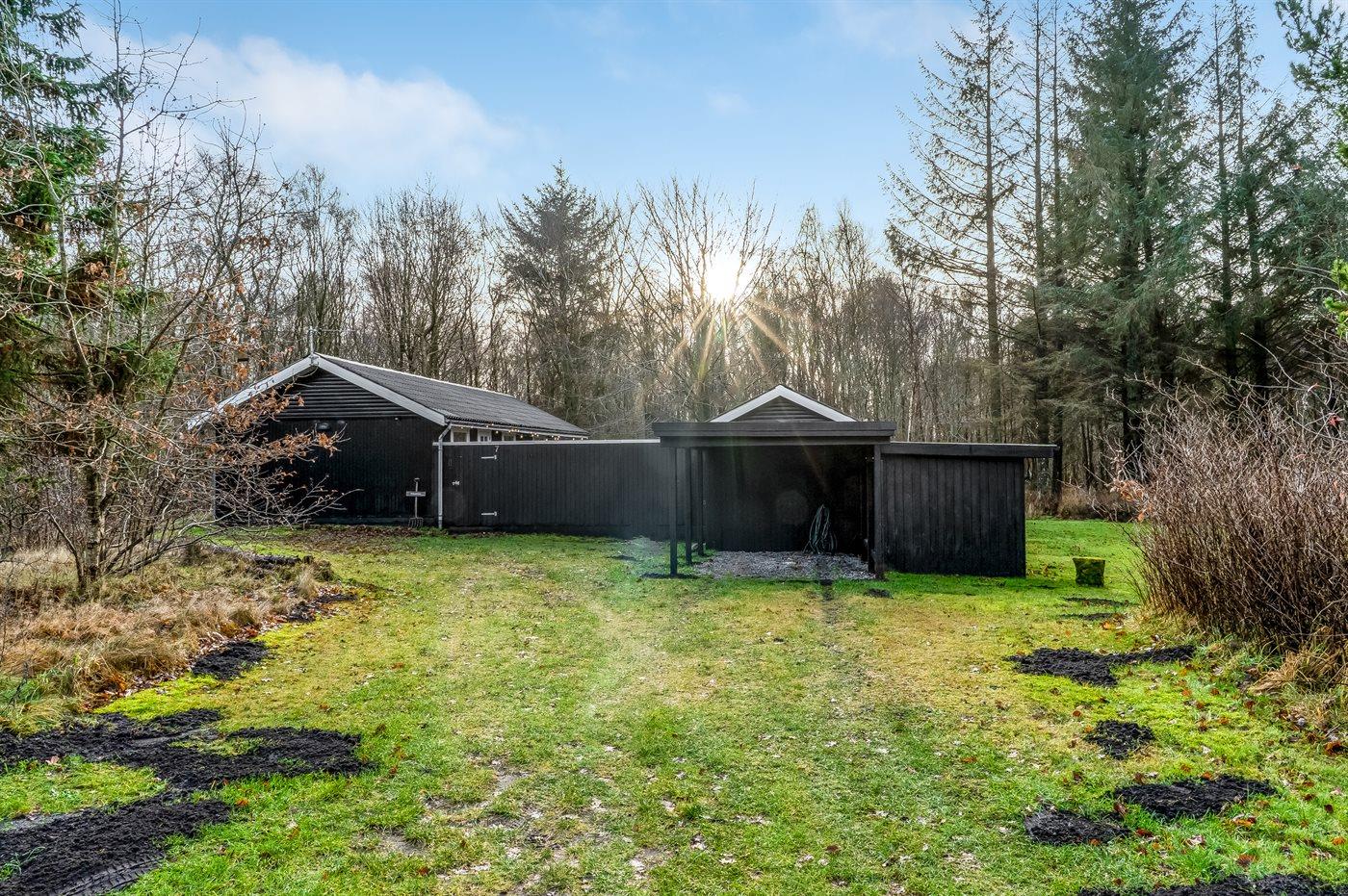 De vakantiewoning is gelegen op een 7500 m² groot natuural grond. Afstand tot de zee 2000 m. Afstand tot de fjord 6740 m. Dichtstbijzijnde winkel 1770 m. Er is een golfbaan op een afstand van 5490 m. Bij de vakantiewoning hoort terras. Gereedschapsruimte.Vuurplaats. Barbecue. Carport ter beschikking. Parkeerplaats bij het huis.