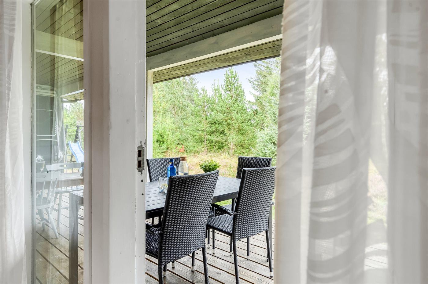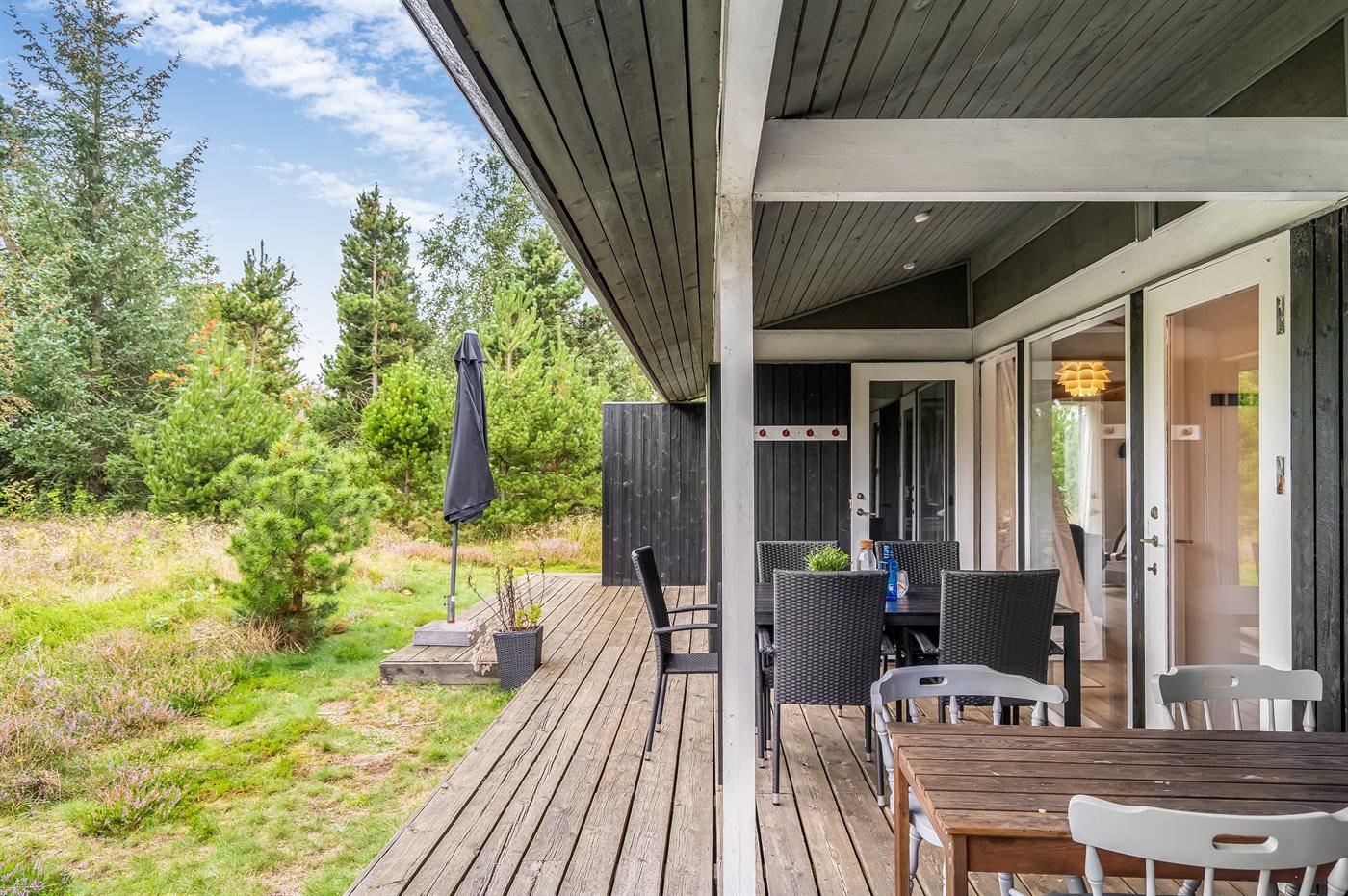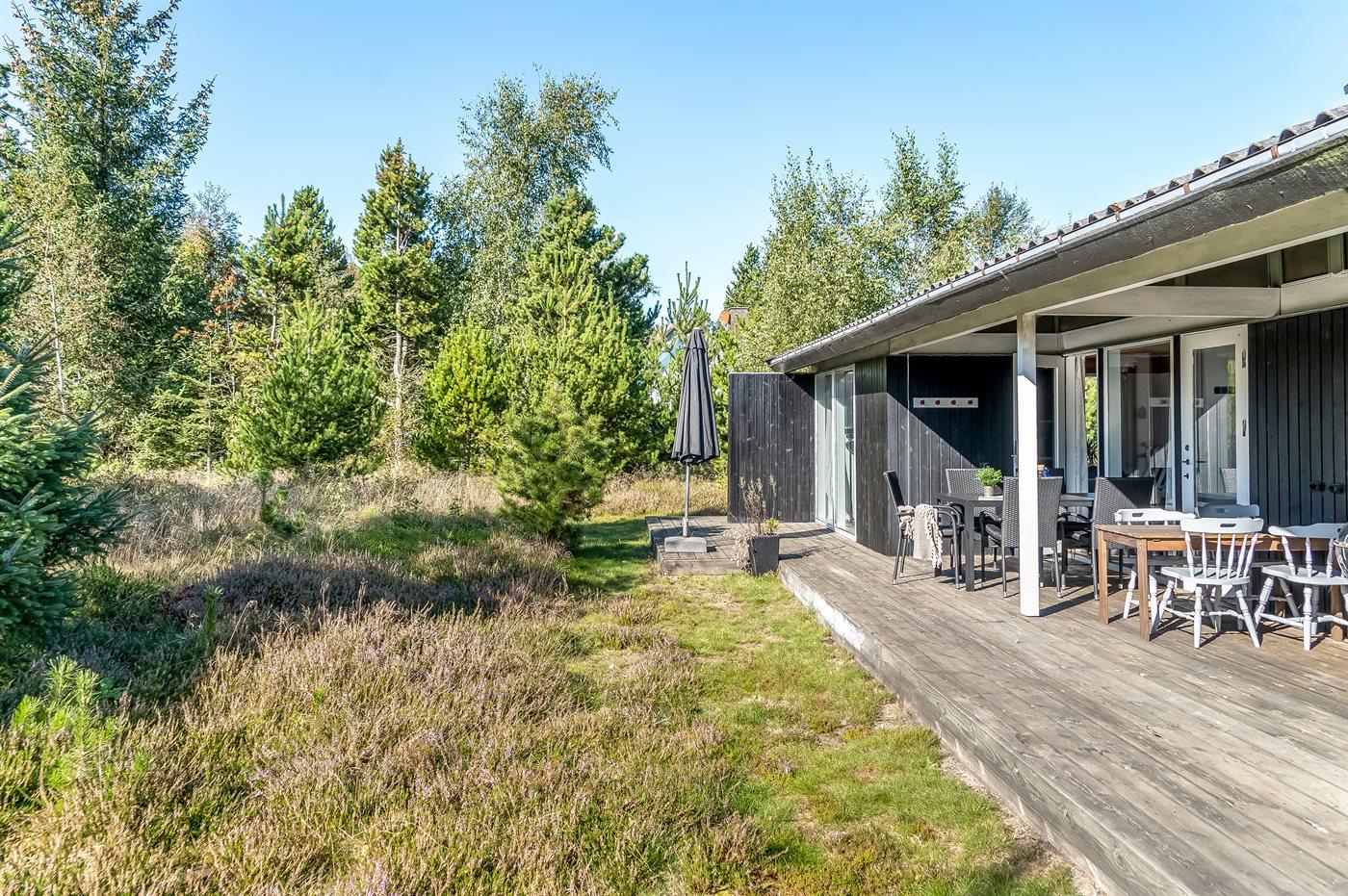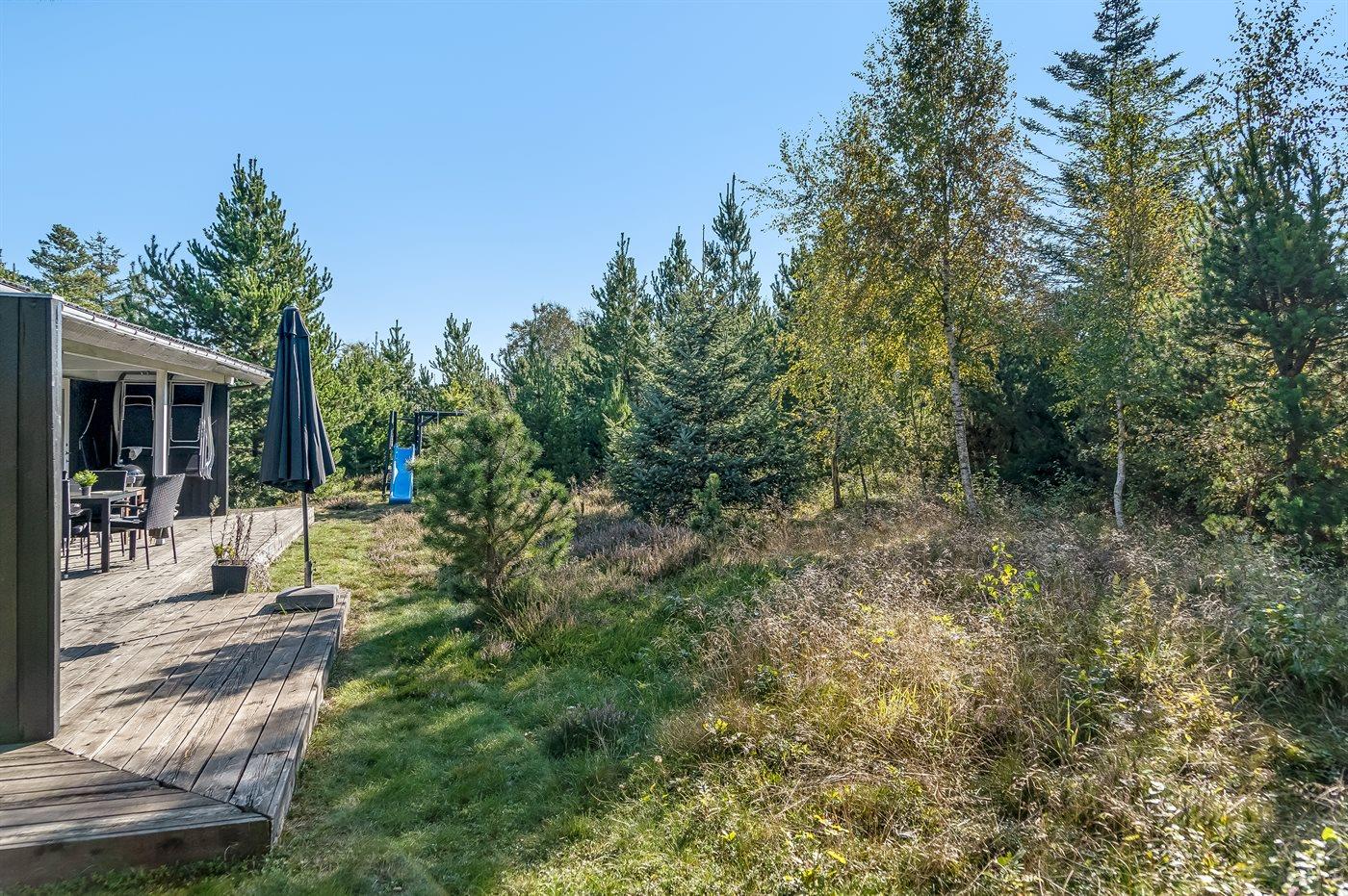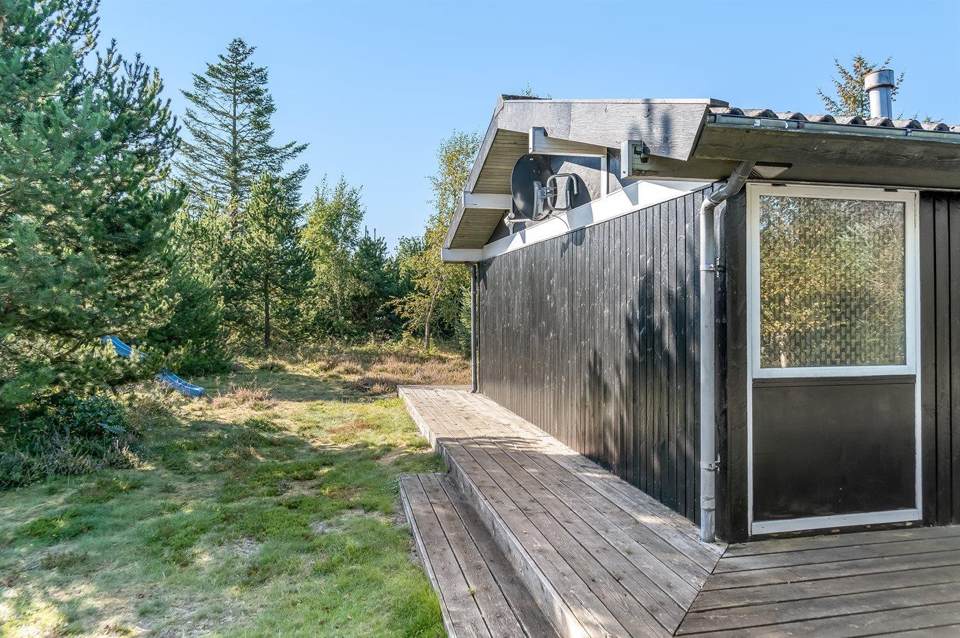 De vakantiewoning is gelegen op een 1050 m² groot natuural grond. De grond is omheind. Afstand tot de zee 200 m. Dichtstbijzijnde winkel 1000 m. Bij de vakantiewoning hoort 34 m² terras. Daarnaast is er een 10 m² groot overdekt terras. Schommel. Parkeerplaats bij het huis.