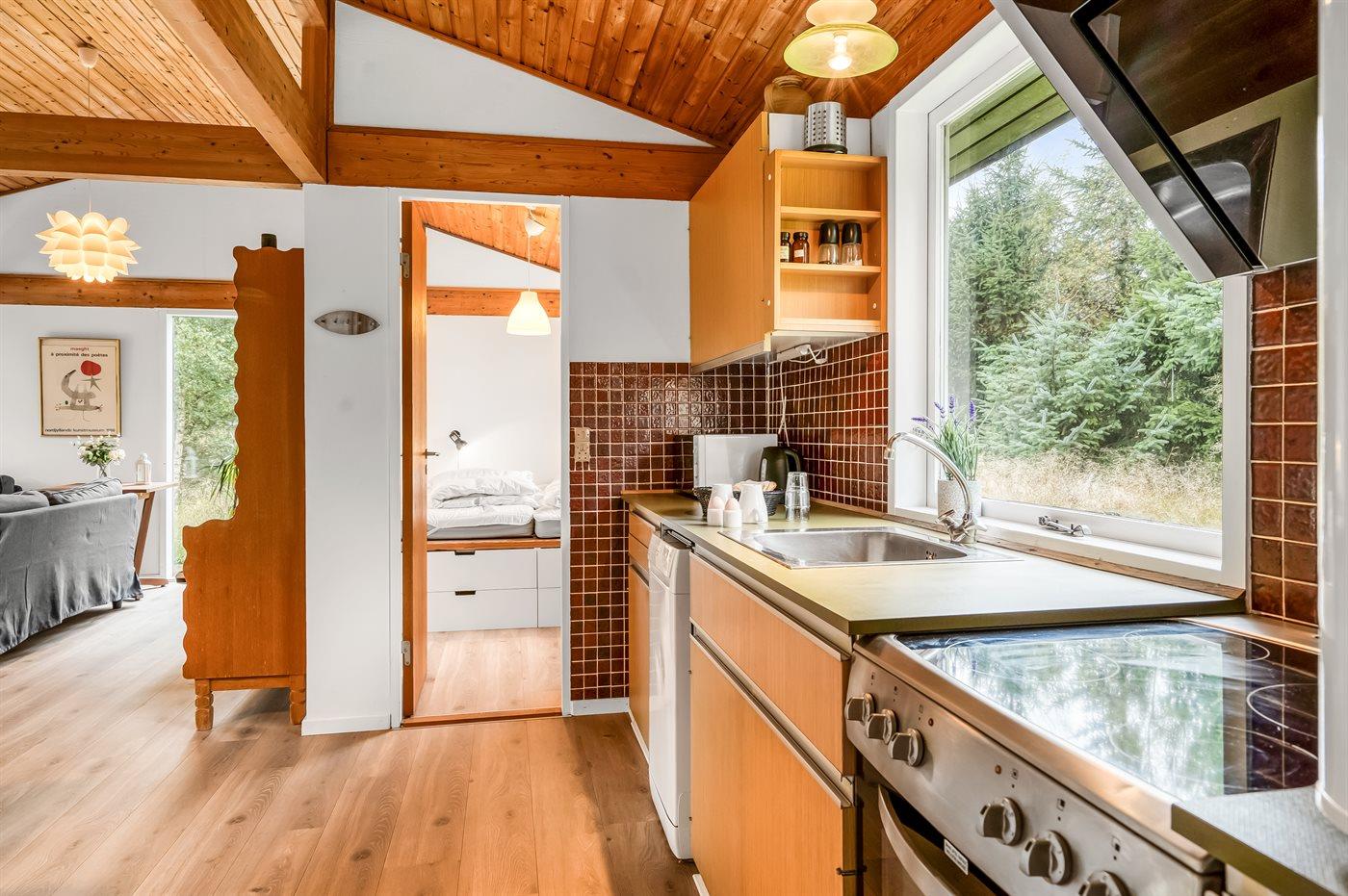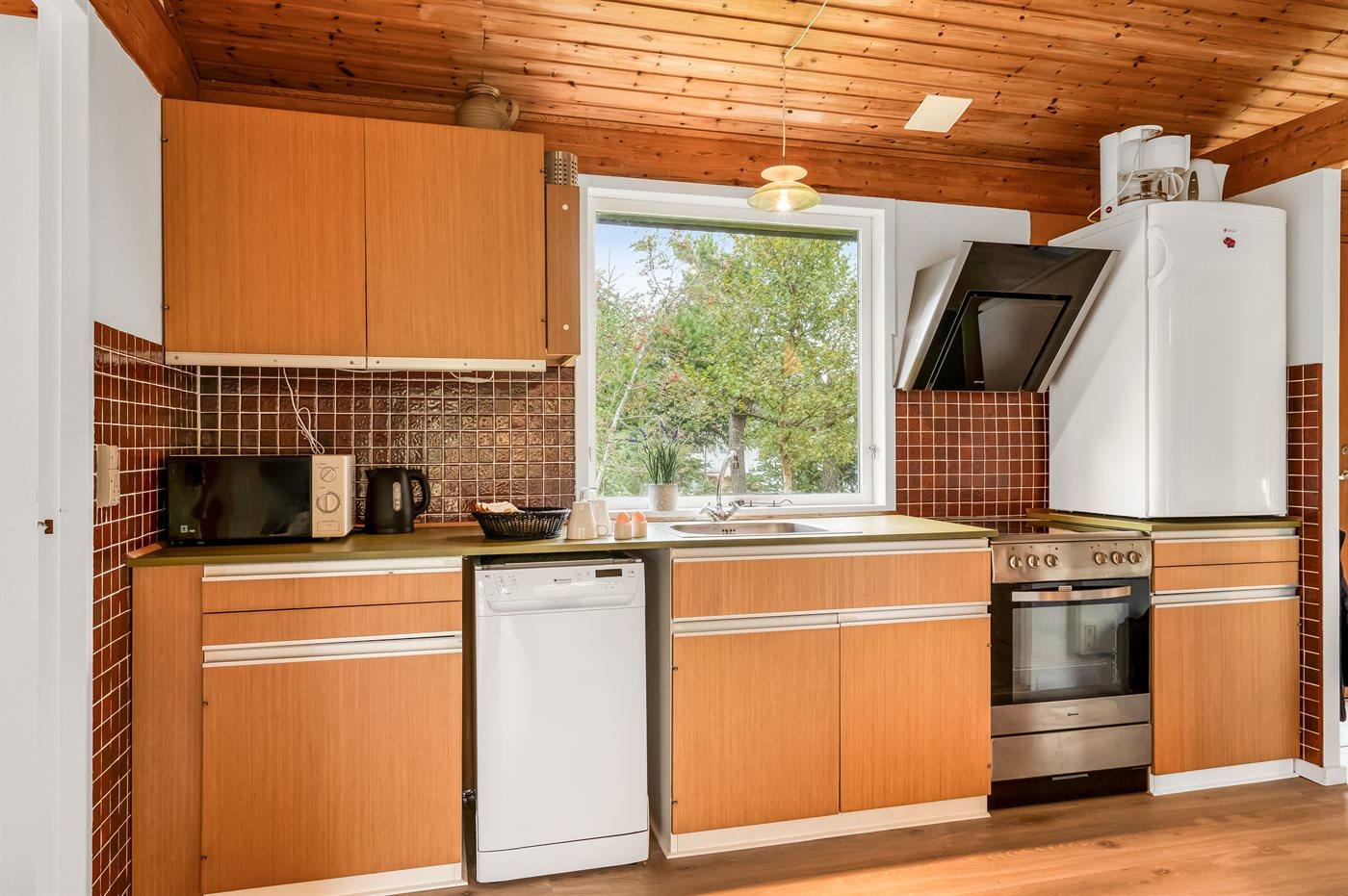 De keuken is uitgerust met koelkast Er zijn 4 keramische kookplaten, heteluchtoven en vaatwasser.