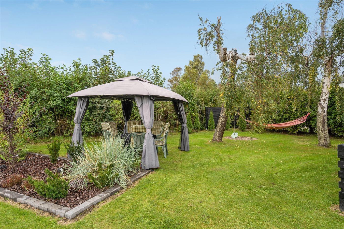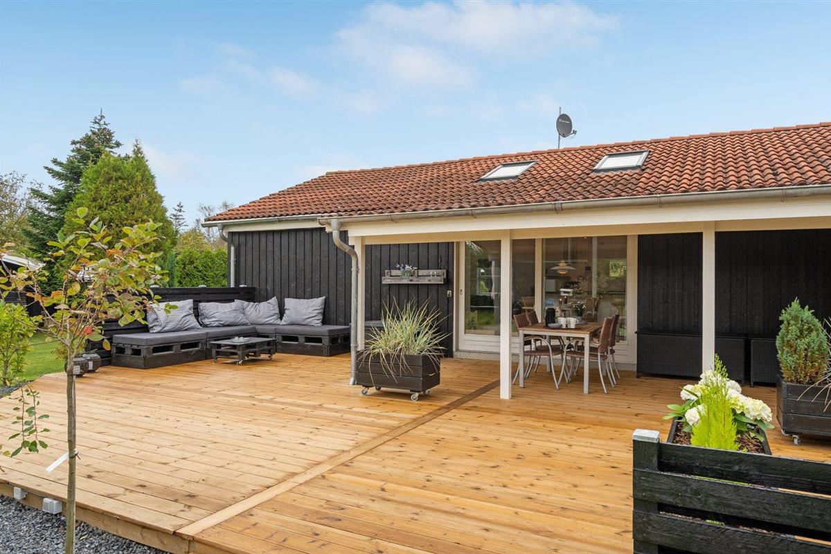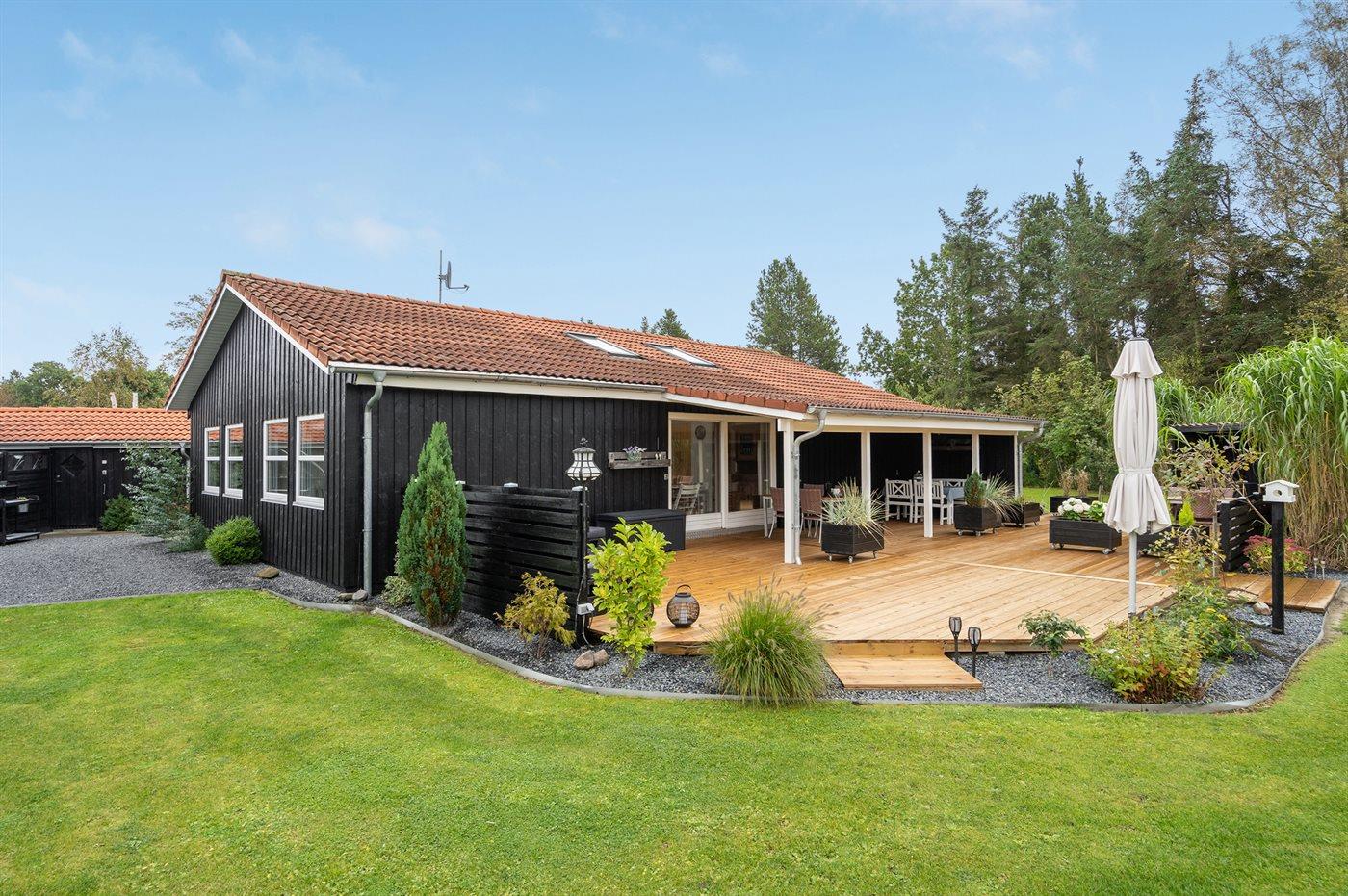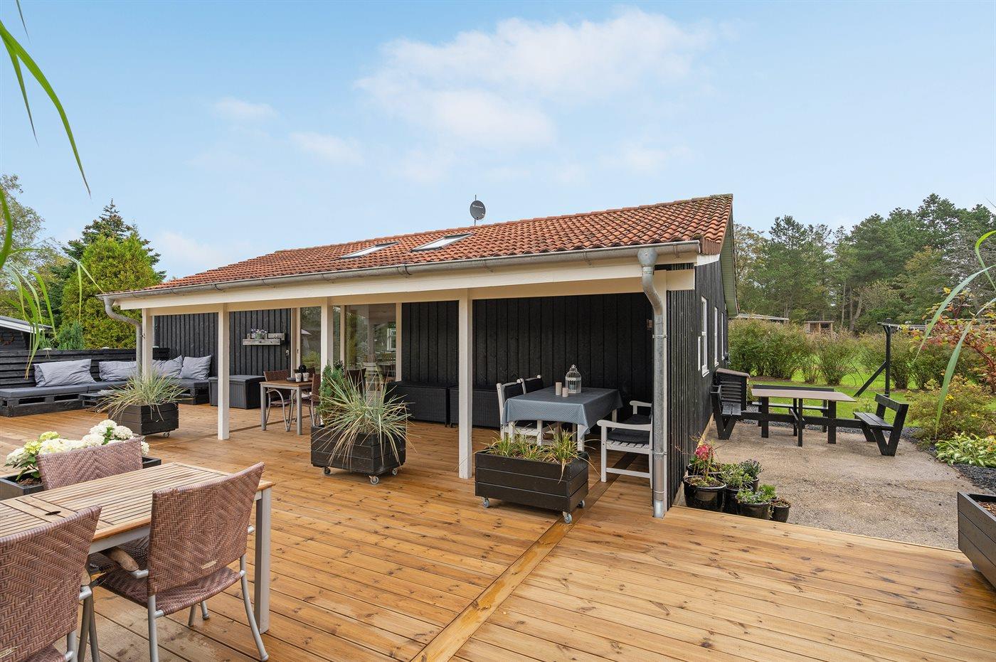 De vakantiewoning is gelegen op een 1380 m² groot aangelegde tuin. De grond is omheind. Afstand tot de zee 400 m. Dichtstbijzijnde winkel 2000 m. Bij de vakantiewoning hoort 105 m² terras. Daarnaast is er een 24 m² groot overdekt terras. Schommel. Zandbak. Speelhuisje. Trampoline. Glijbaan.Vuurplaats. Barbecue. Het huis heeft een stopcontact voor het opladen van een elektrische auto. Met 11 kW-laadvermogen. Parkeerplaats bij het huis.