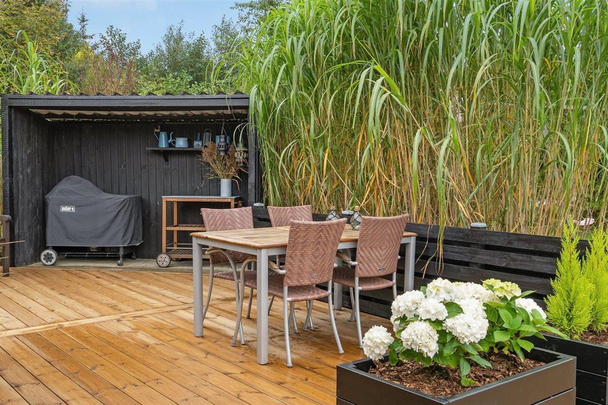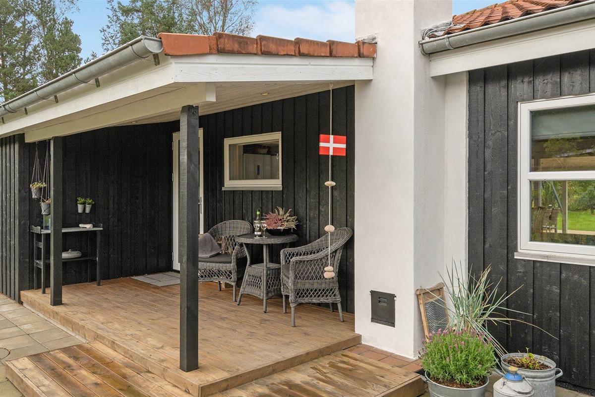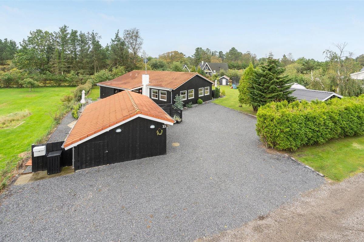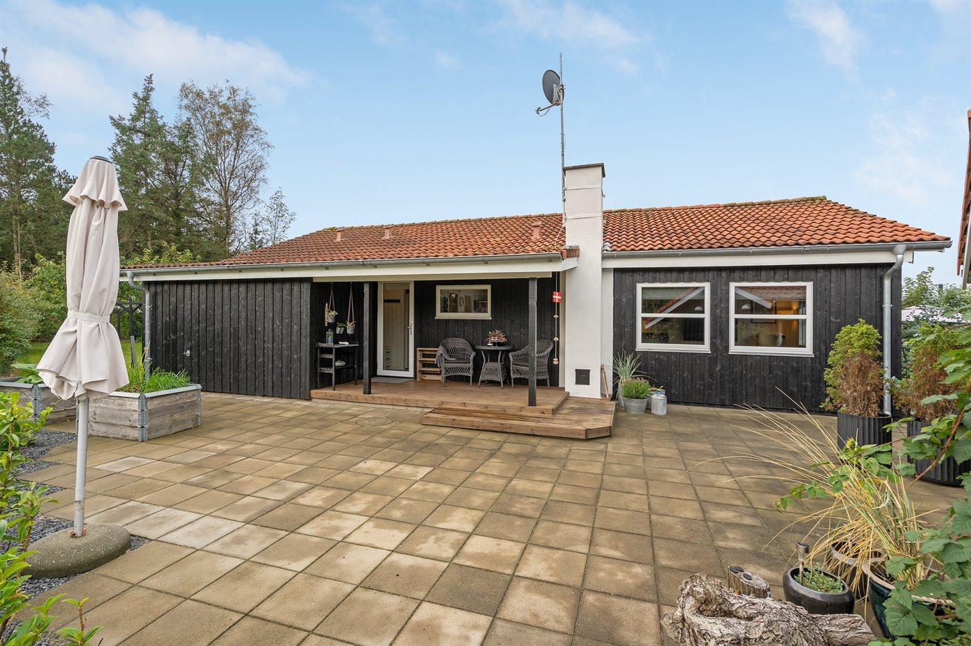 De vakantiewoning is gelegen op een 1380 m² groot aangelegde tuin. De grond is omheind. Afstand tot de zee 400 m. Dichtstbijzijnde winkel 2000 m. Bij de vakantiewoning hoort 105 m² terras. Daarnaast is er een 24 m² groot overdekt terras. Schommel. Zandbak. Speelhuisje. Trampoline. Glijbaan.Vuurplaats. Barbecue. Het huis heeft een stopcontact voor het opladen van een elektrische auto. Met 11 kW-laadvermogen. Parkeerplaats bij het huis.
