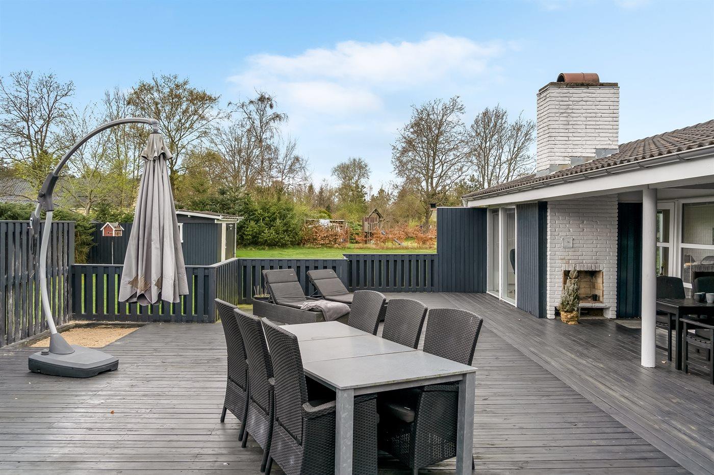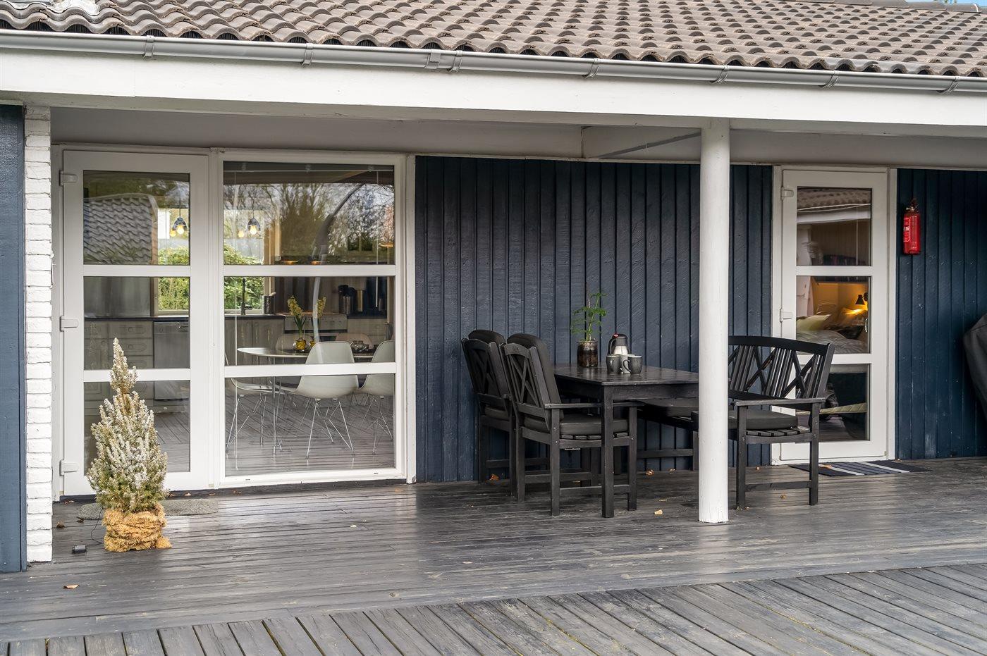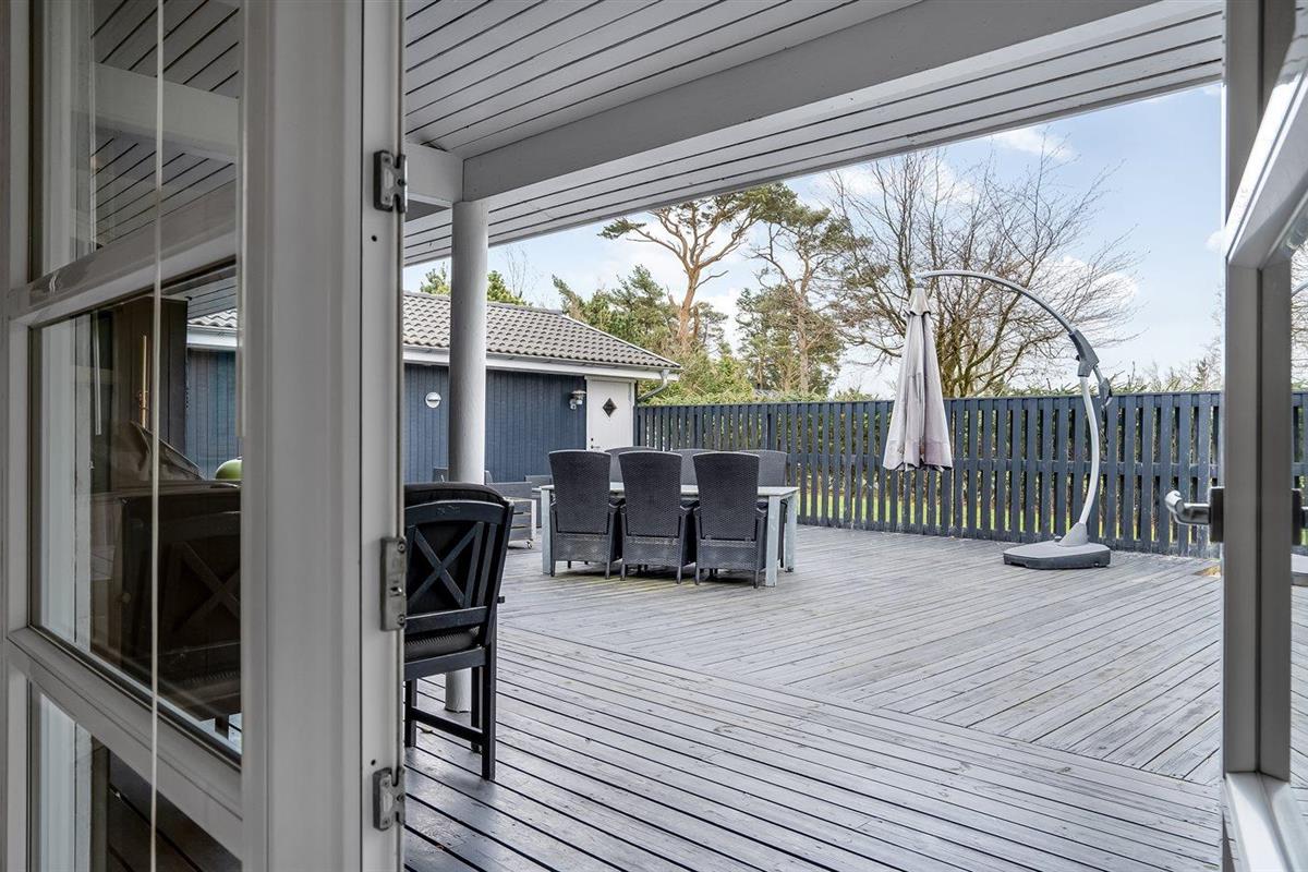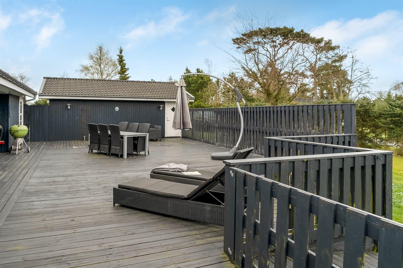 De vakantiewoning is gelegen op een 1255 m² groot natuural grond. Afstand tot de zee 700 m. Dichtstbijzijnde winkel 500 m. Bij de vakantiewoning hoort 100 m² terras. Daarnaast is er een 10 m² groot overdekt terras. Waarvan in totaal 110 m² beschut terras. Gereedschapsruimte. Zandbak.Vuurplaats. Shelter. Barbecue. Het huis heeft een stopcontact voor het opladen van een elektrische auto. Oplaadstekker type 2. Parkeerplaats bij het huis.