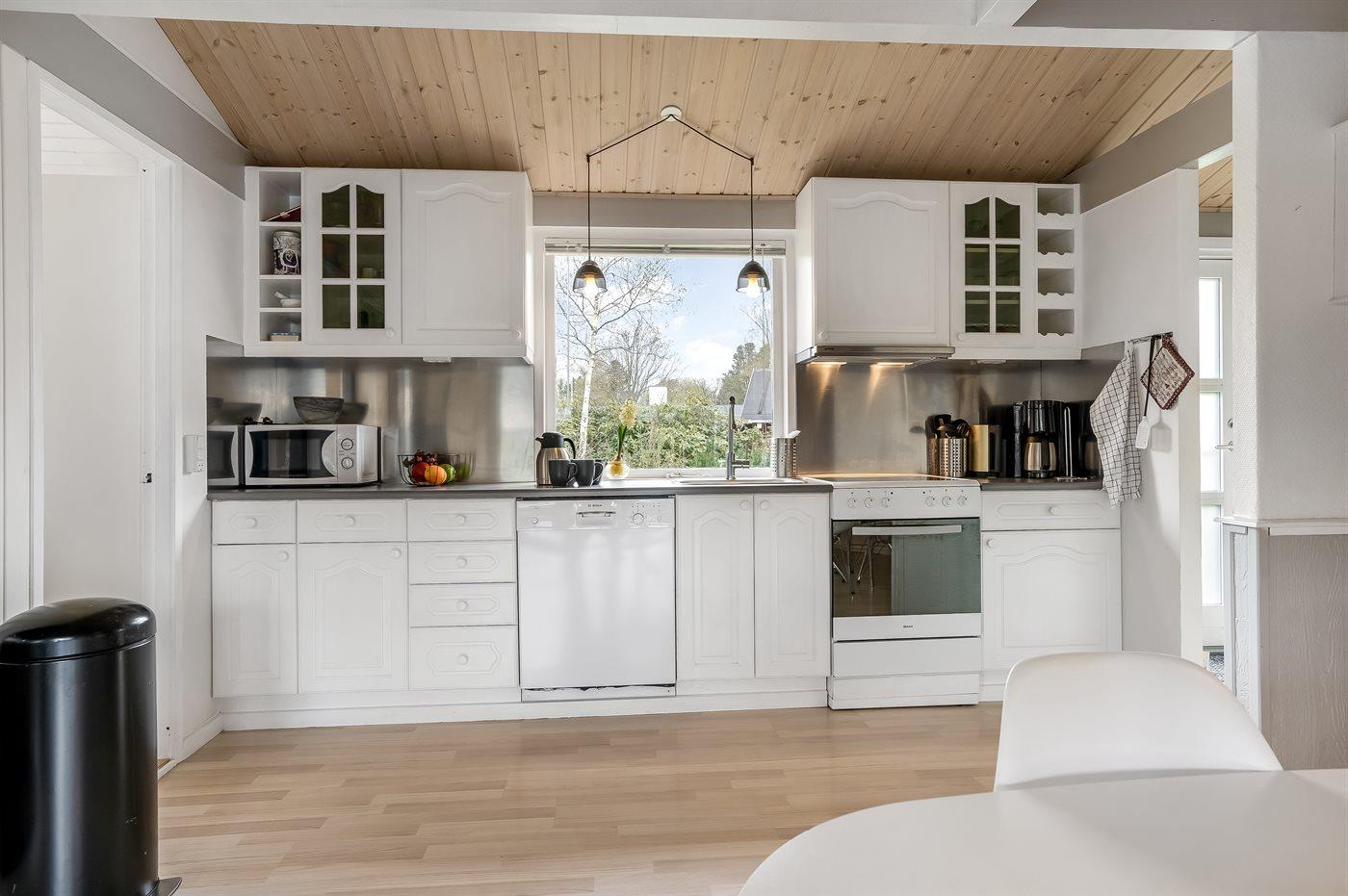 De keuken is uitgerust met koelkast Er zijn 4 keramische kookplaten, heteluchtoven, magnetron en vaatwasser.