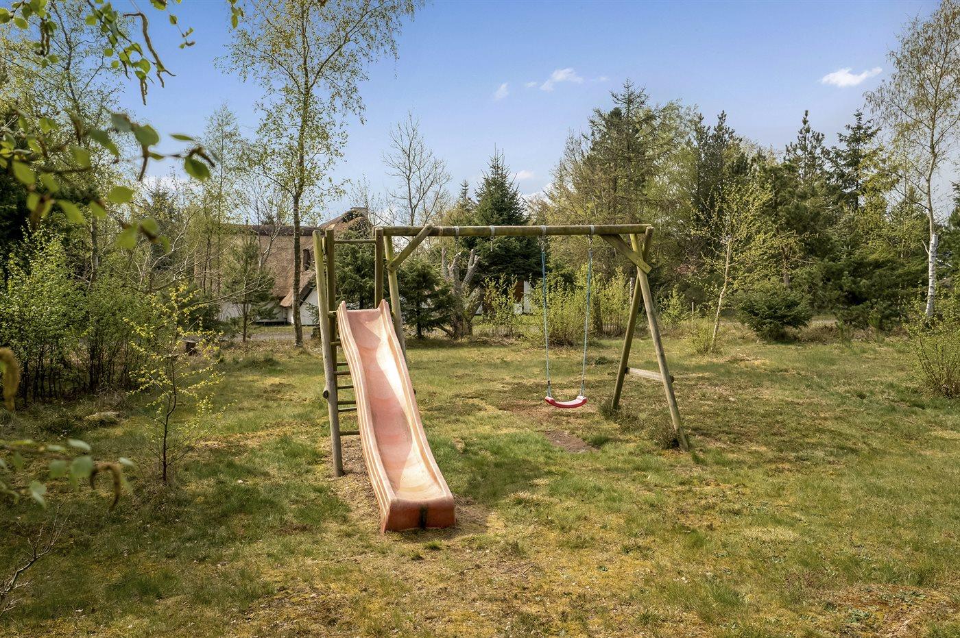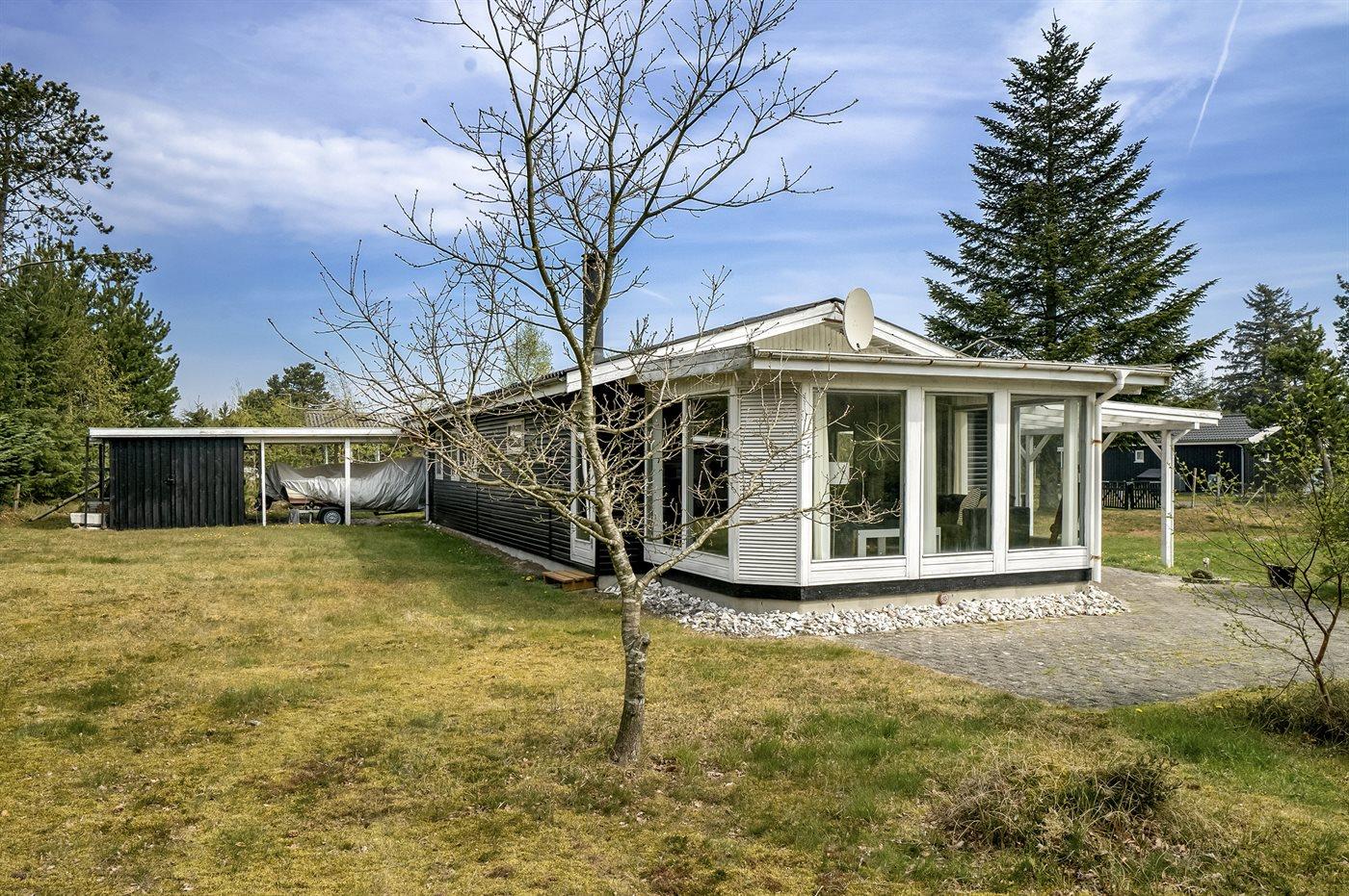 De vakantiewoning is gelegen op een 1145 m² groot natuural grond. De grond is omheind. Afstand tot de zee 150 m. Dichtstbijzijnde winkel 1000 m. Bij de vakantiewoning hoort 50 m² terras. Daarnaast is er een 24 m² groot overdekt terras. Gereedschapsruimte. Schommel. Barbecue. Carport ter beschikking. Parkeerplaats bij het huis.