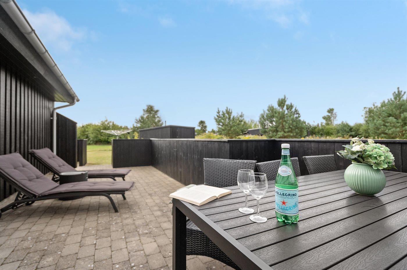 De vakantiewoning is gelegen op een 1289 m² groot aangelegde tuin. Afstand tot de zee 1000 m. Dichtstbijzijnde winkel 2500 m. Bij de vakantiewoning hoort 80 m² terras. Gereedschapsruimte. Er zijn twee barbecues beschikbaar (een met gas en een met kolen). Parkeerplaats bij het huis.
