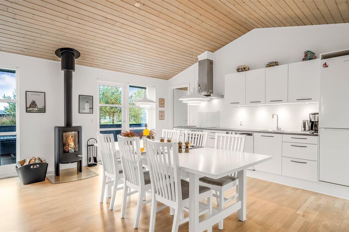 De keuken is uitgerust met koelkast Er is 4 inductiekookplaten, heteluchtoven, magnetron en vaatwasser.