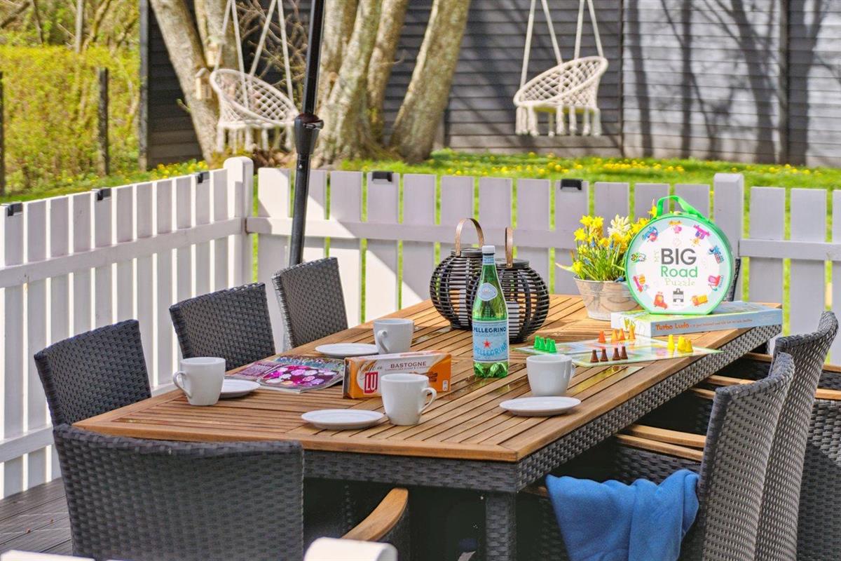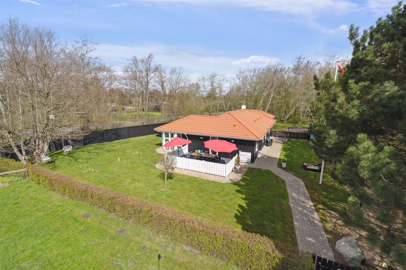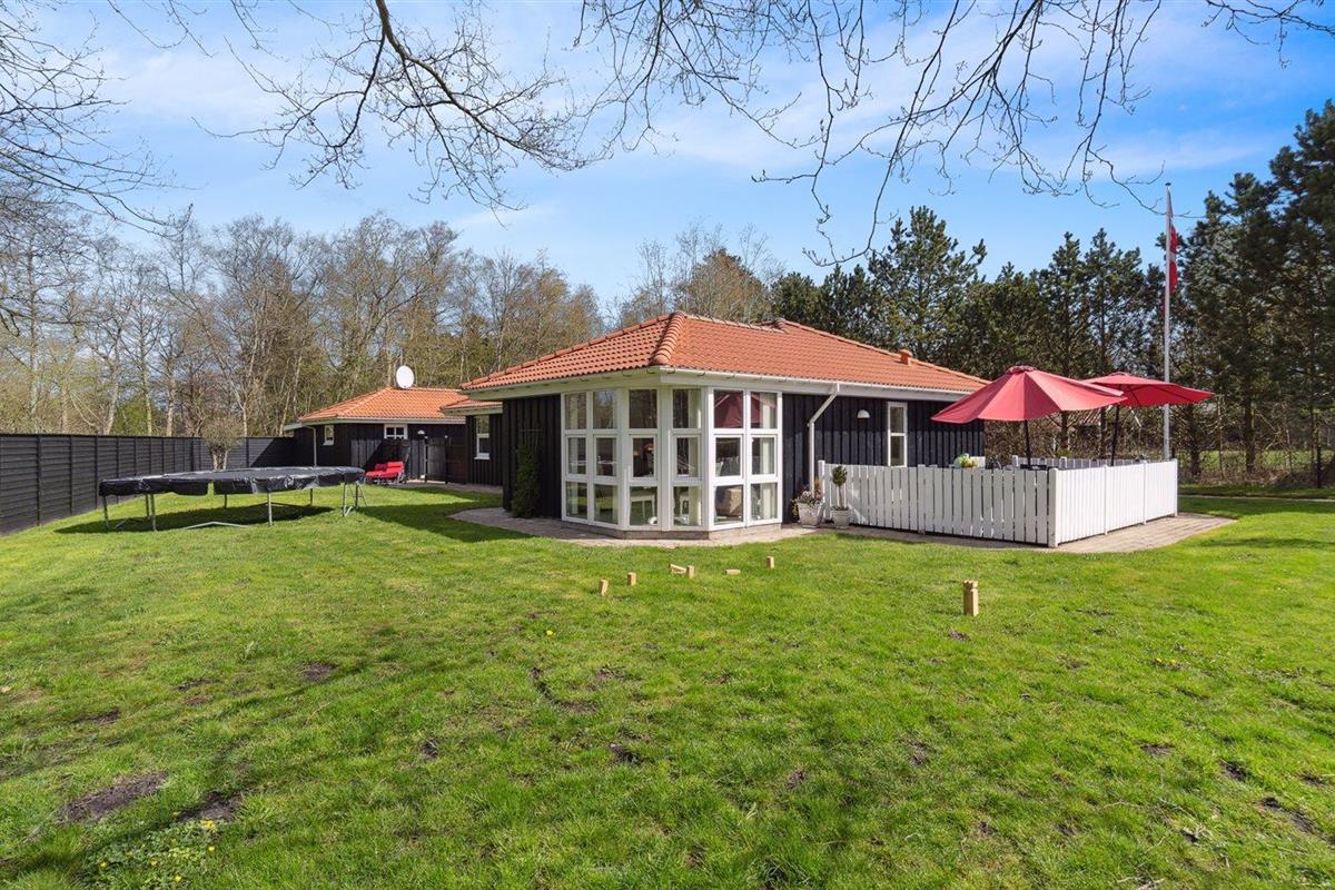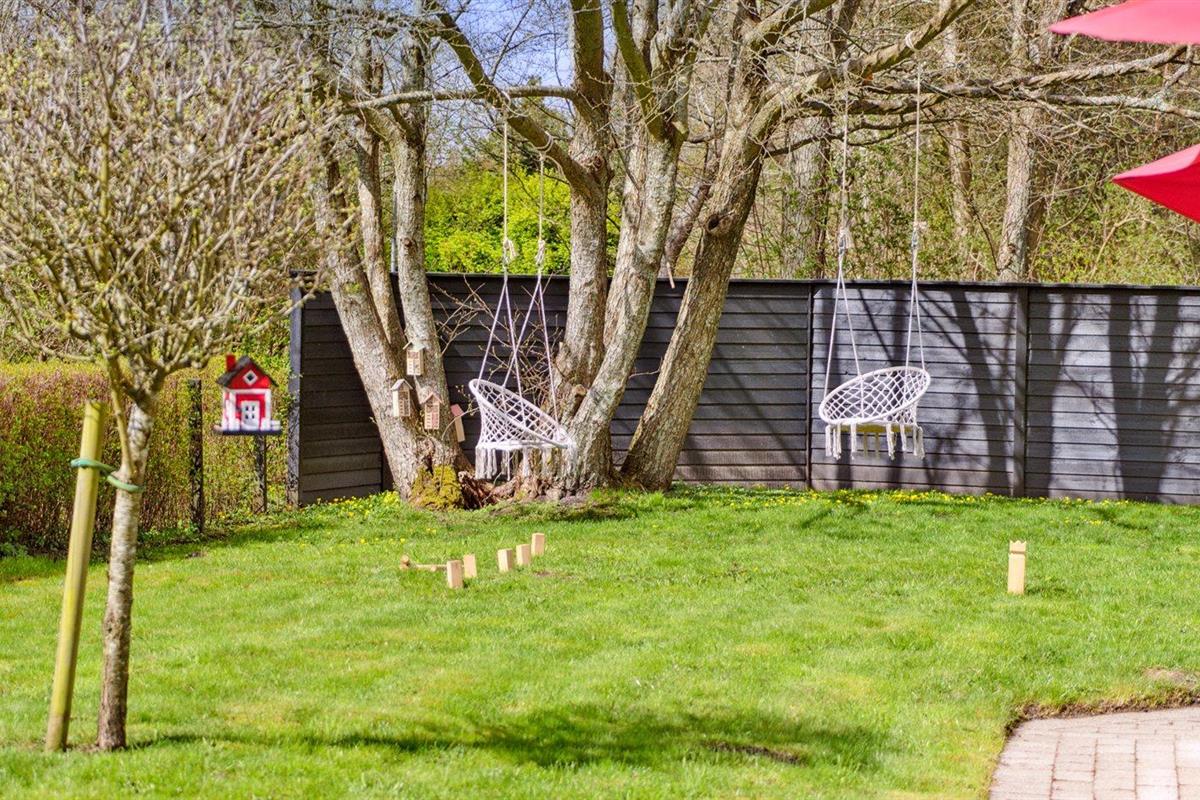 De vakantiewoning is gelegen op een 1100 m² groot aangelegde tuin. De grond is omheind. Afstand tot de zee 500 m. Dichtstbijzijnde winkel 200 m. Bij de vakantiewoning hoort 70 m² terras. Waarvan in totaal 24 m² beschut terras. Schommel. Zandbak. Speeltoren. Glijbaan. Barbecue. Het huis heeft een stopcontact voor het opladen van een elektrische auto. Parkeerplaats bij het huis.