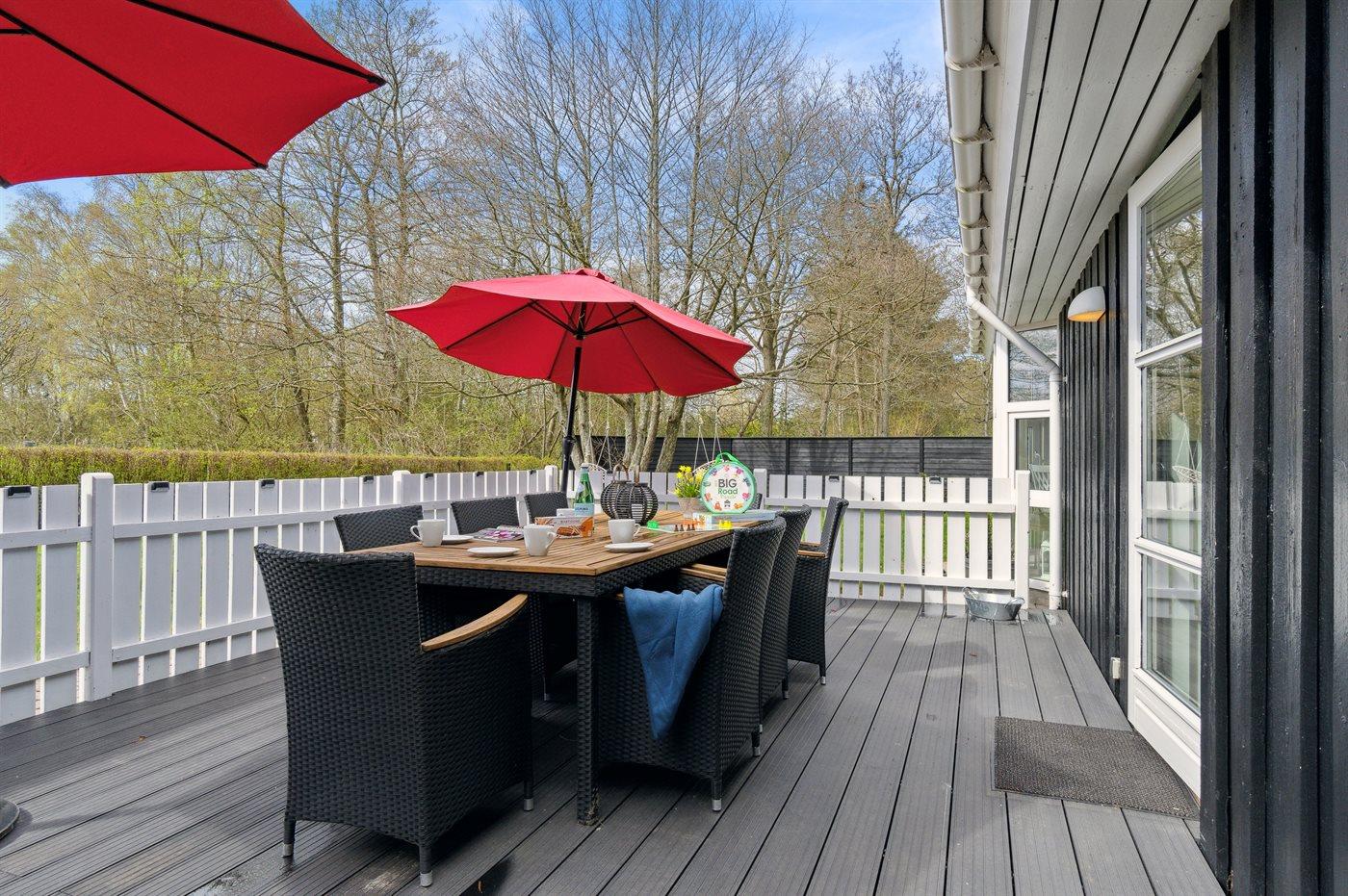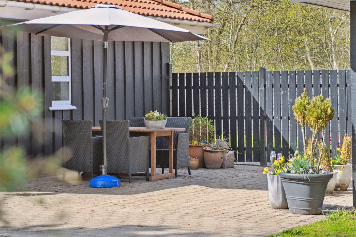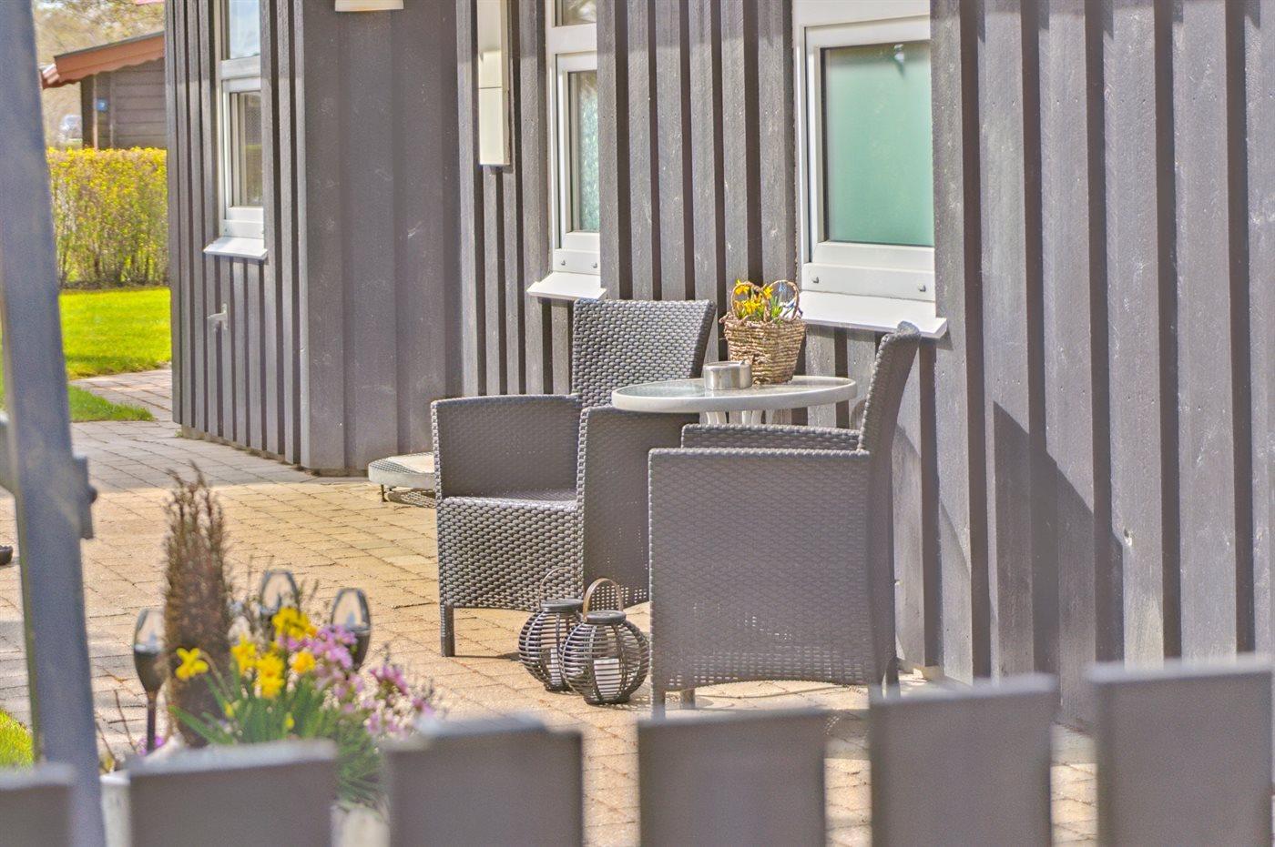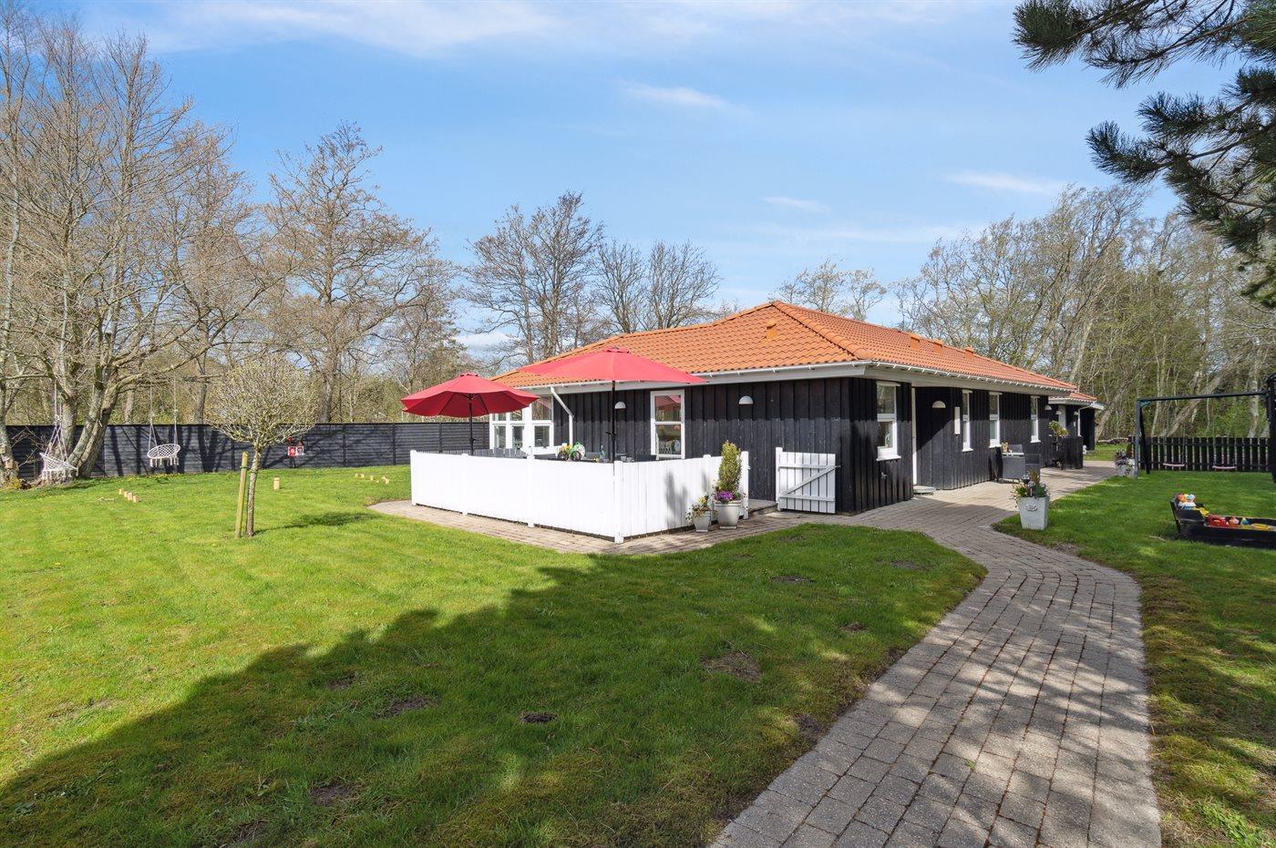 De vakantiewoning is gelegen op een 1100 m² groot aangelegde tuin. De grond is omheind. Afstand tot de zee 500 m. Dichtstbijzijnde winkel 200 m. Bij de vakantiewoning hoort 70 m² terras. Waarvan in totaal 24 m² beschut terras. Schommel. Zandbak. Speeltoren. Glijbaan. Barbecue. Het huis heeft een stopcontact voor het opladen van een elektrische auto. Parkeerplaats bij het huis.