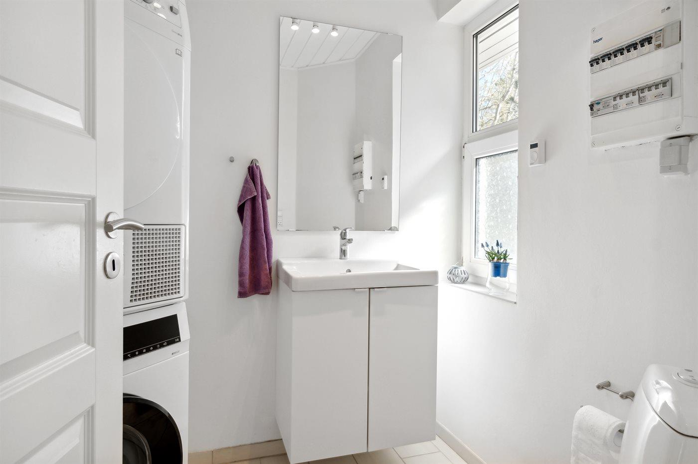 Er is 1 badkamer met douchehok en 2 toiletten, waarvan 1 gastentoilet. Er is vloerverwarming in 1 badkamer. Er is vloerverwarming in het gastentoilet.